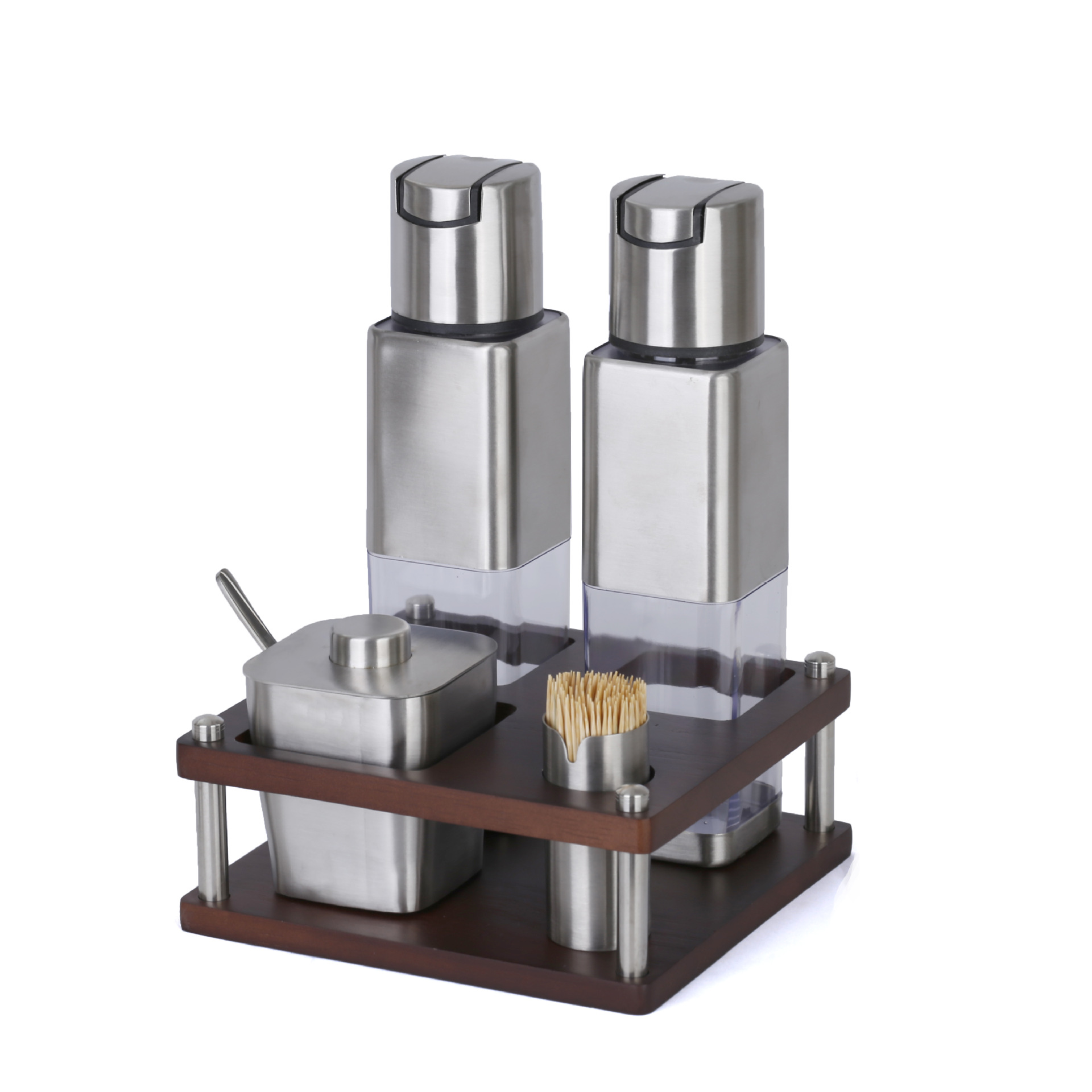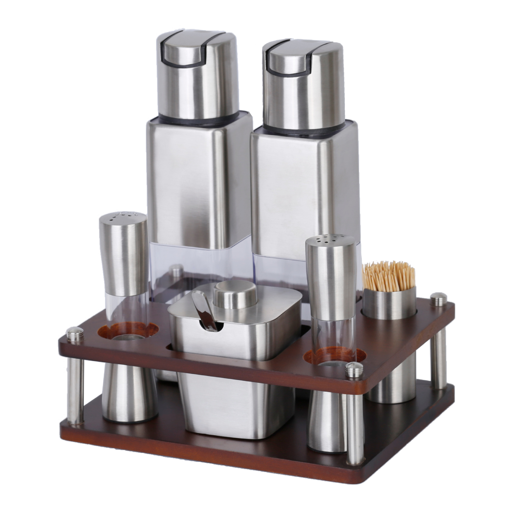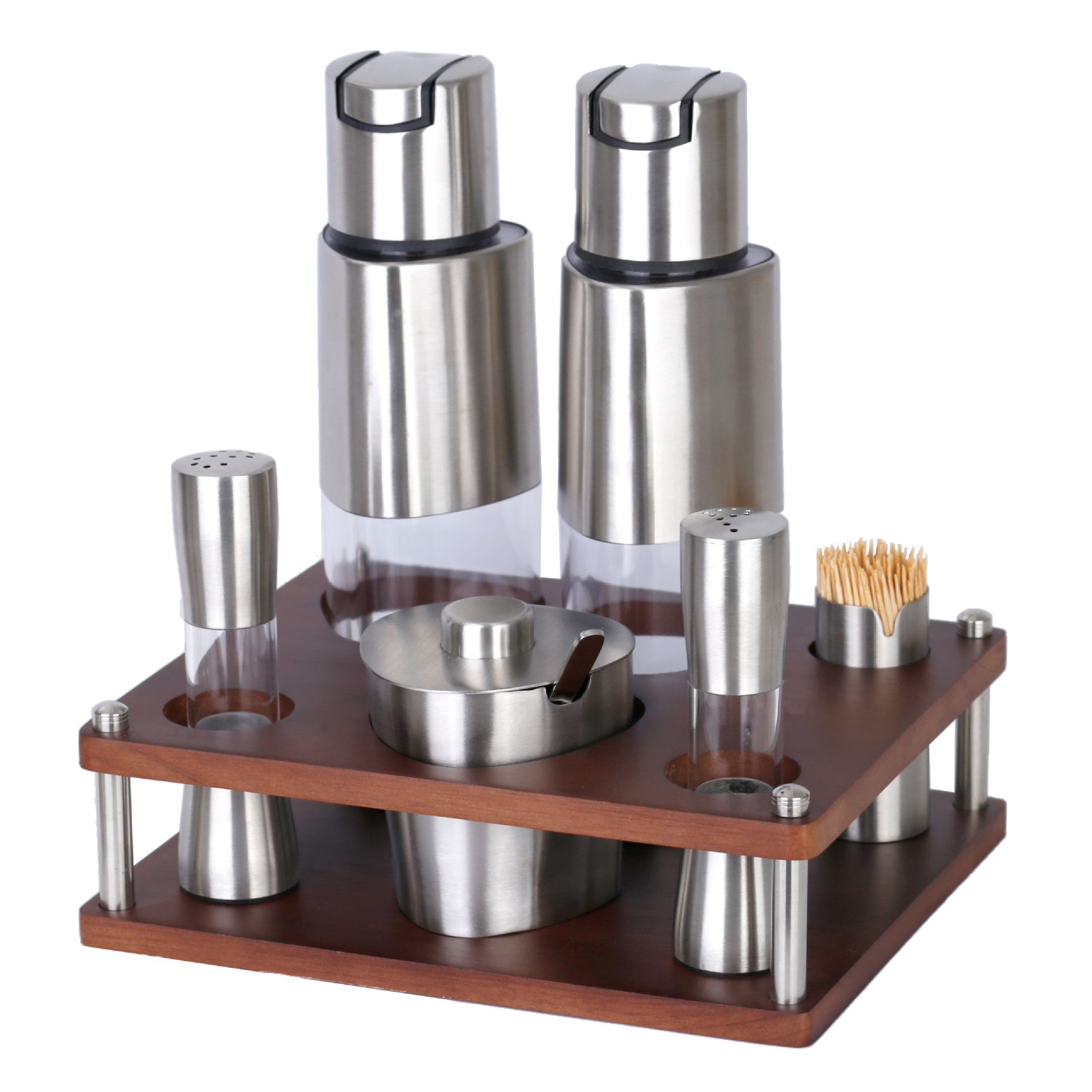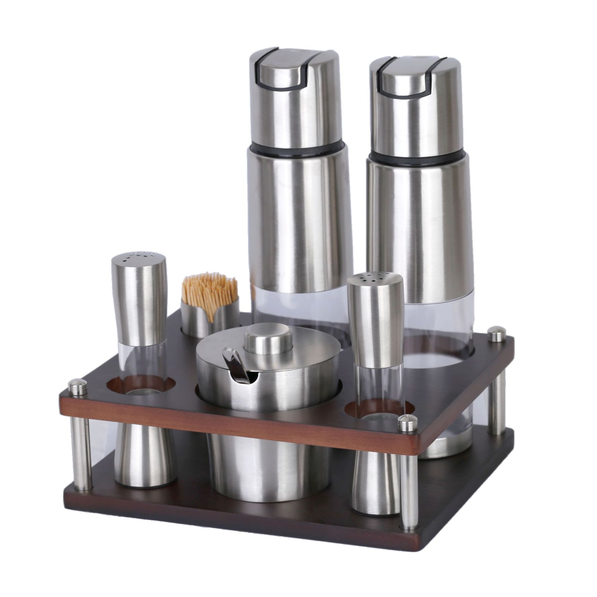 不锈钢调味瓶套装橡胶木收纳调料盒商用油壶盐瓶辣椒罐调料瓶组合