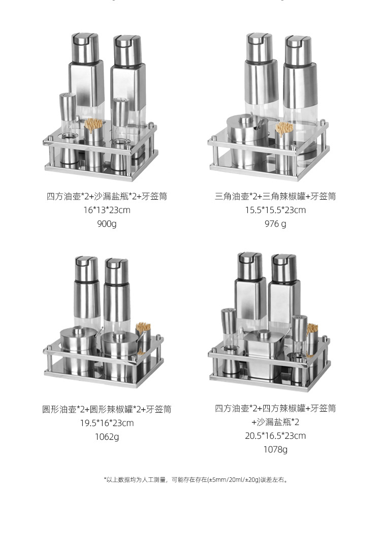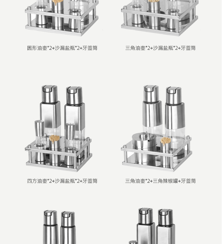不锈钢调料盒套装胡椒粉瓶盐瓶酱油醋瓶油壶辣椒罐商用调味品组合