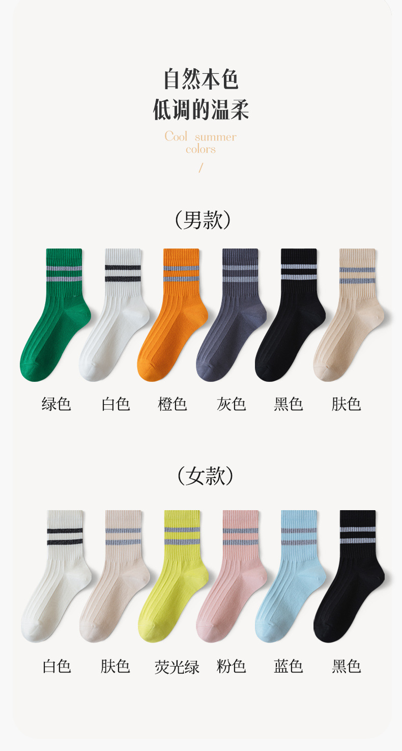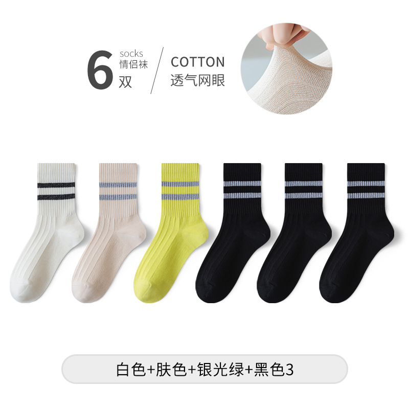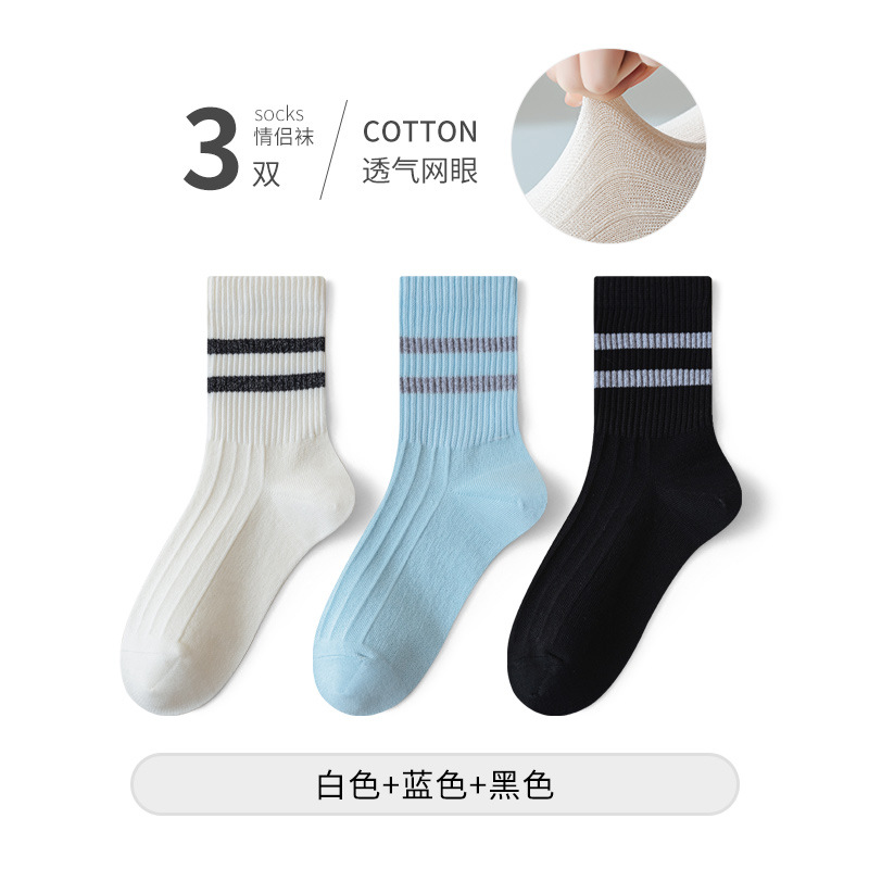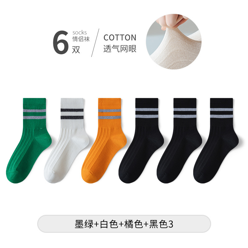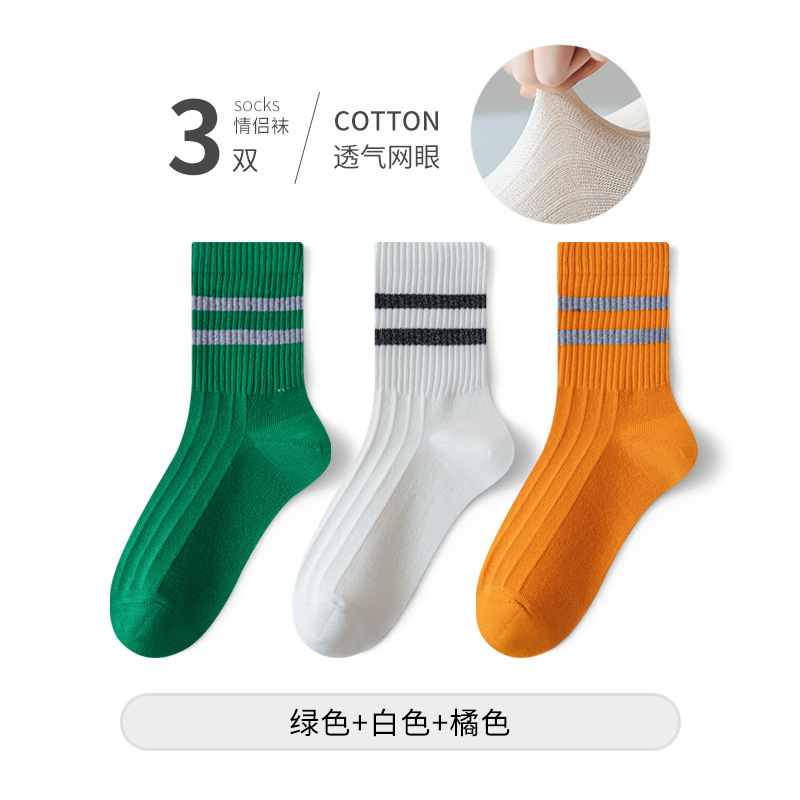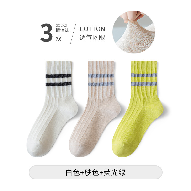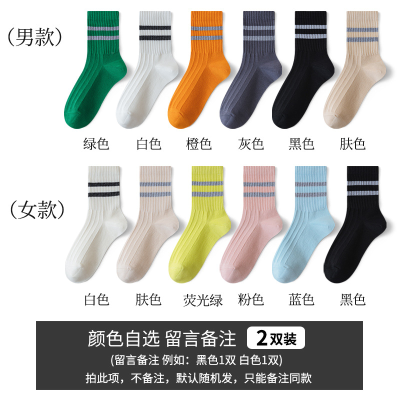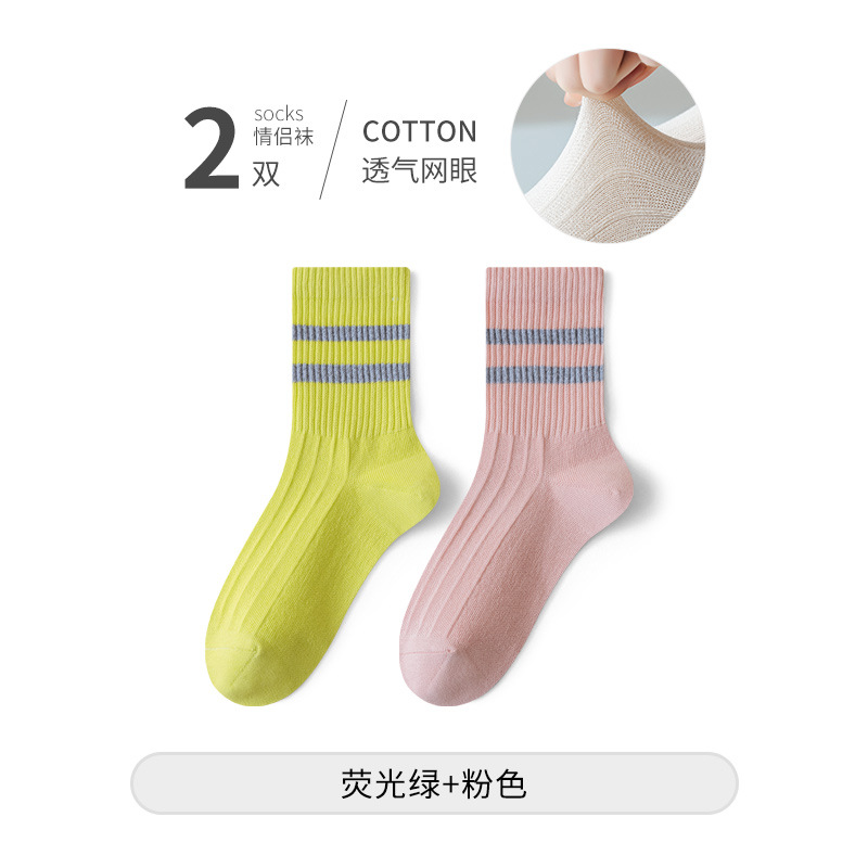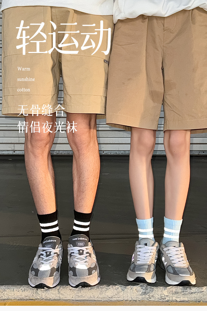 反光荧光夜光男女袜子长筒学院风袜运动中筒纯色黑白色5A纯棉袜