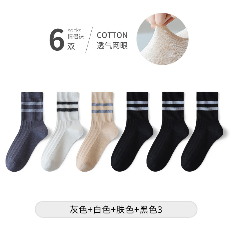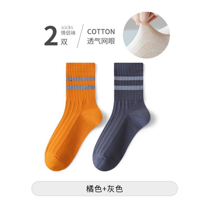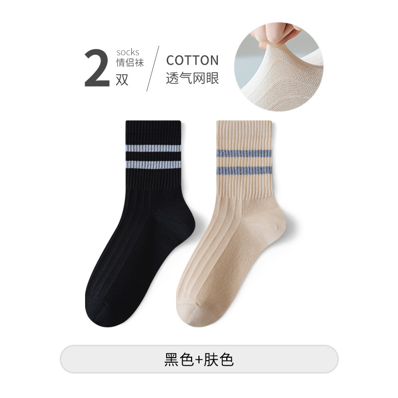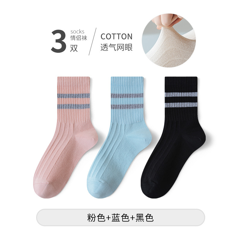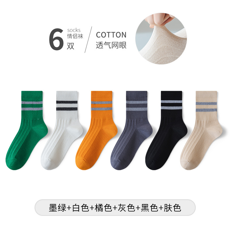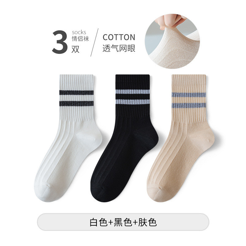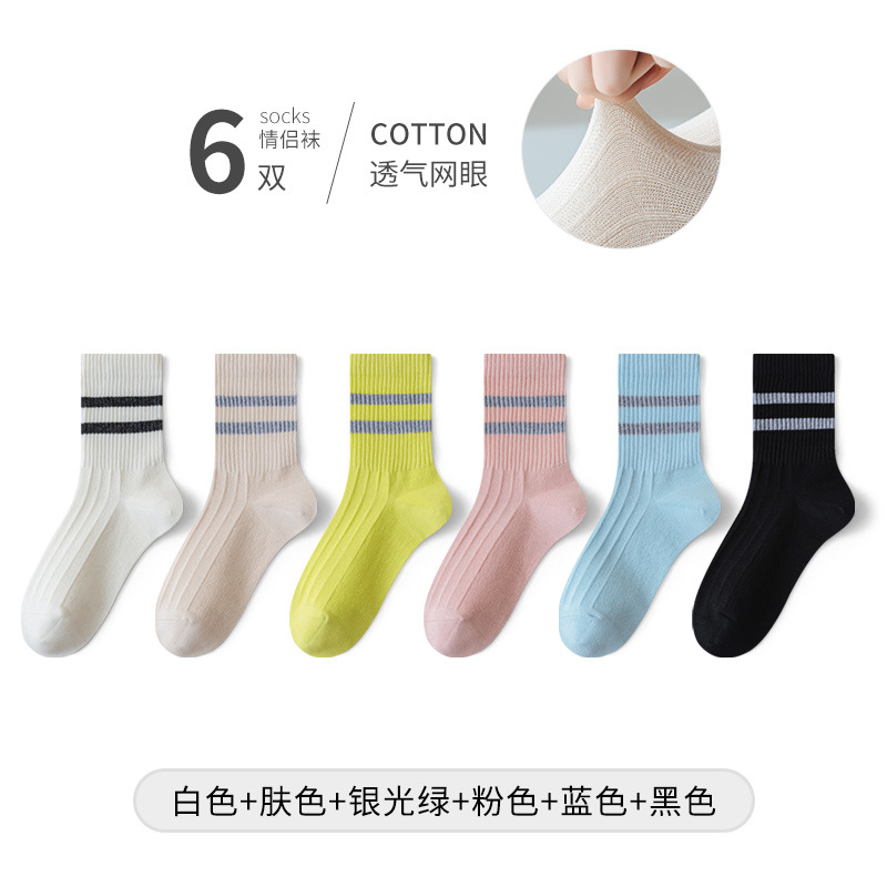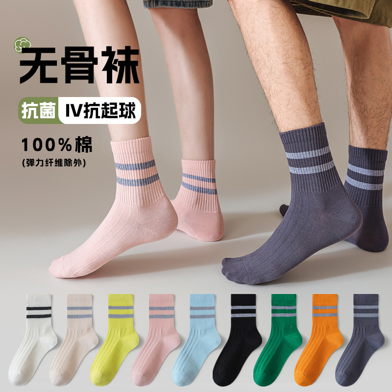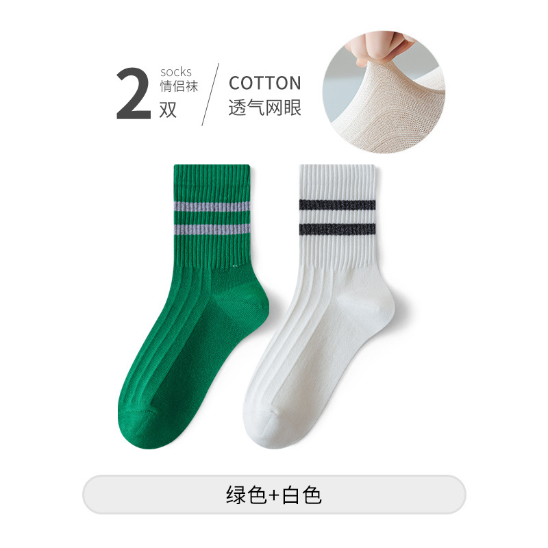 反光荧光夜光男女袜子长筒学院风袜运动中筒纯色黑白色5A纯棉袜
