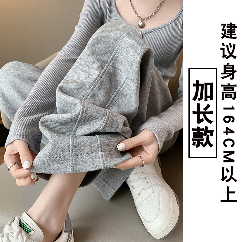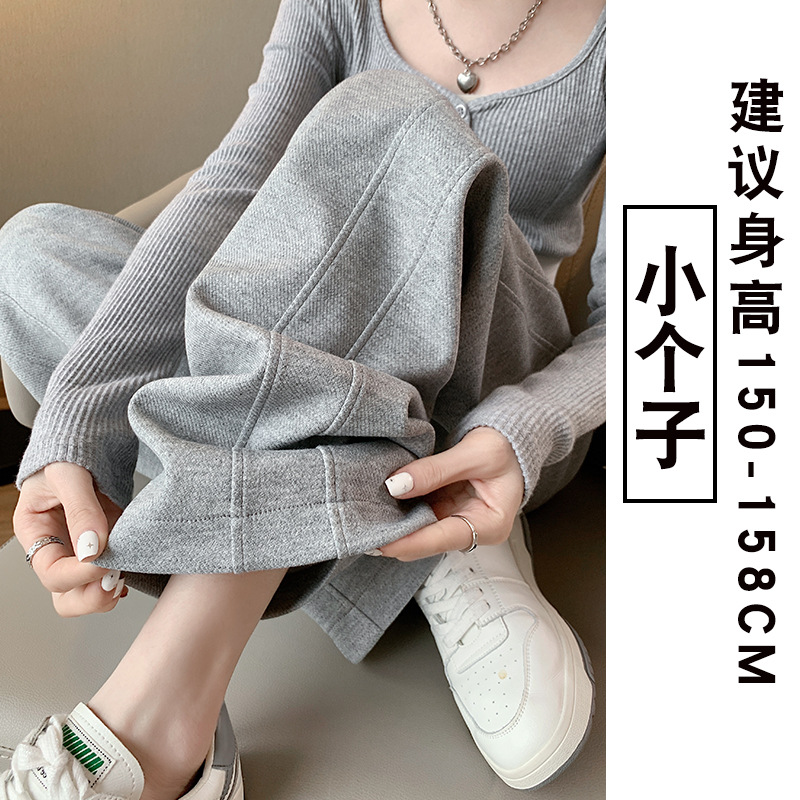 灰色运动裤女春夏2024新款高腰垂感秋季直筒香蕉裤休闲加绒阔腿裤