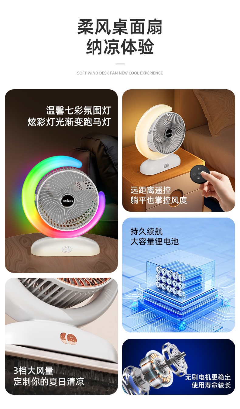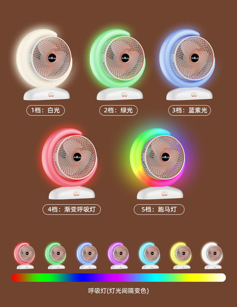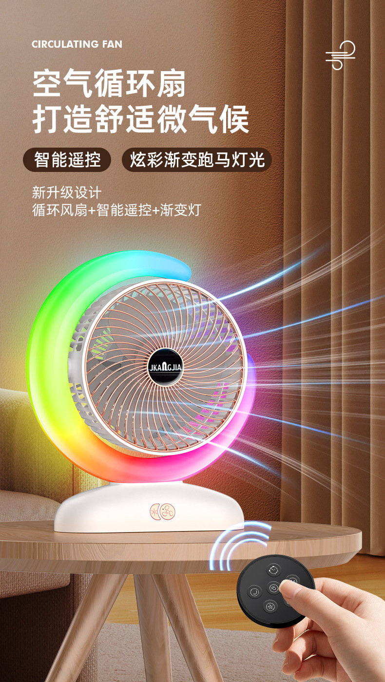 跨境新品USB跑马灯风扇迷你usb充电风扇遥控定时桌面台式循环风扇