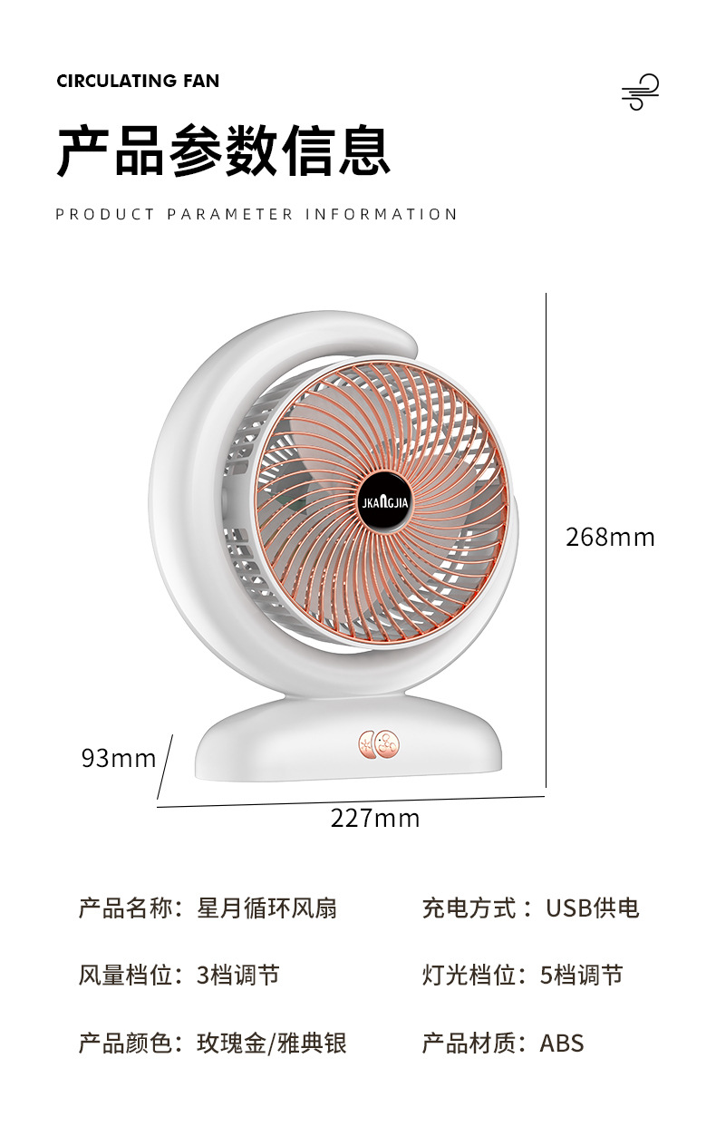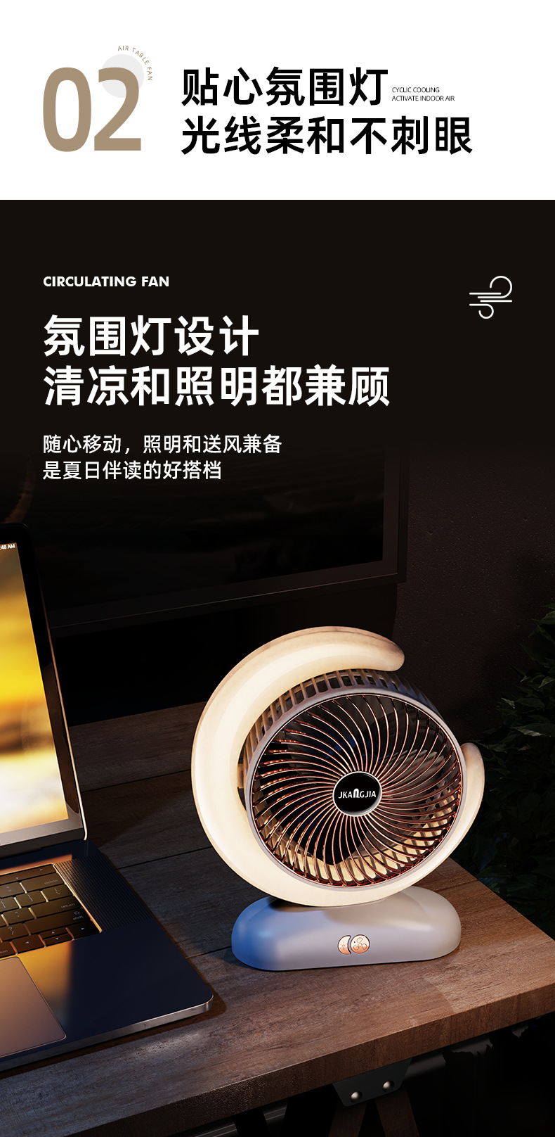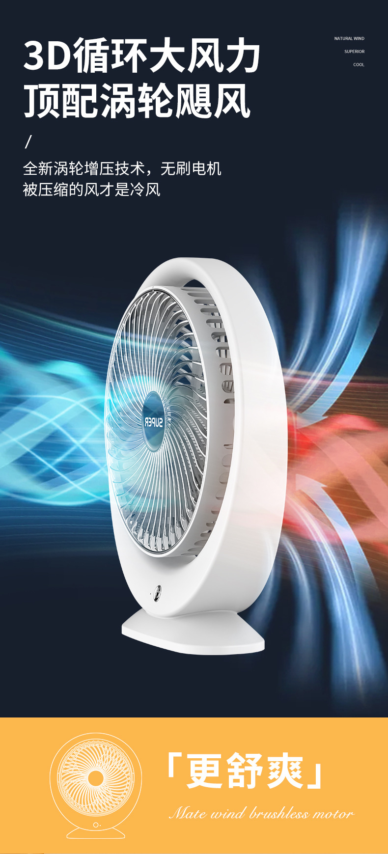 跨境新品USB跑马灯风扇迷你usb充电风扇遥控定时桌面台式循环风扇