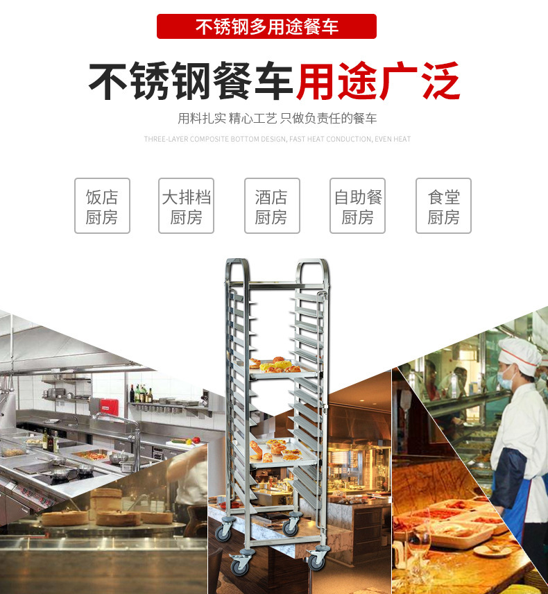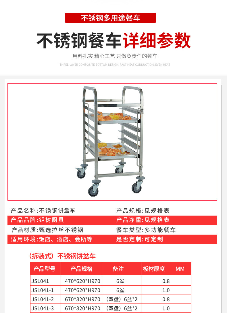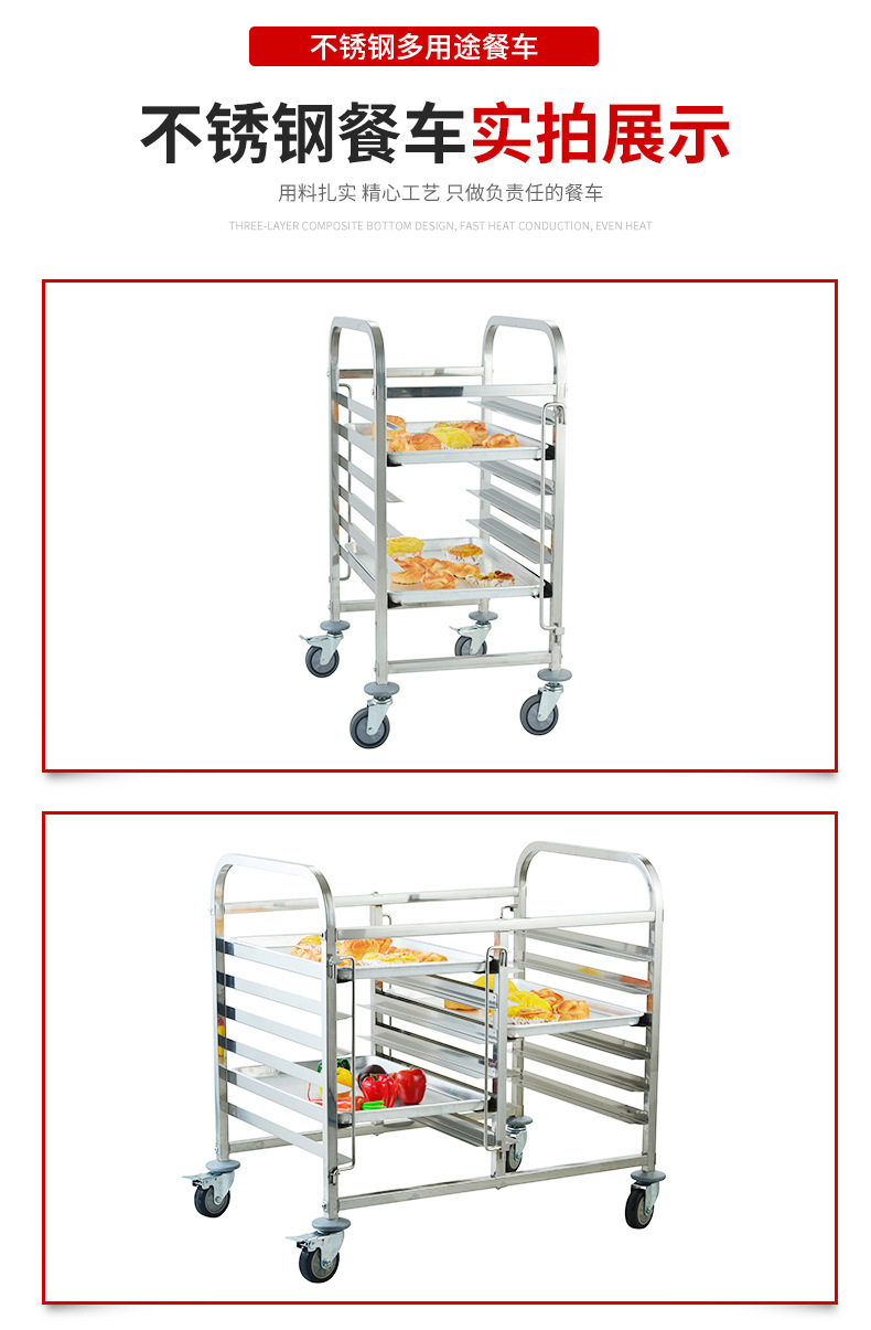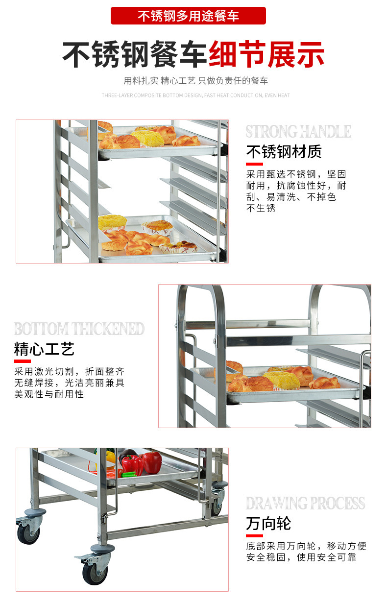 不锈钢单列饼盆车加高多层烘焙烤盘手推车面包烤盘架拆装式推车