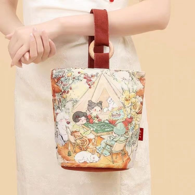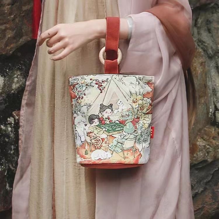 中国风2024可爱龙年新年手提遛弯水桶包包手提单肩腋下包通勤包女