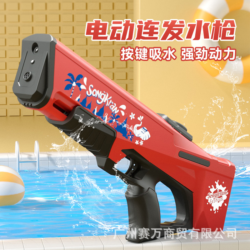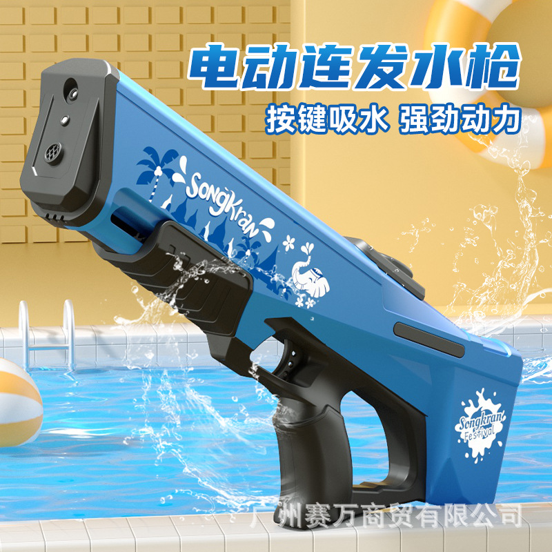 2024跨境新款大号电动连发呲水枪全自动吸水沙滩戏水地摊儿童玩具