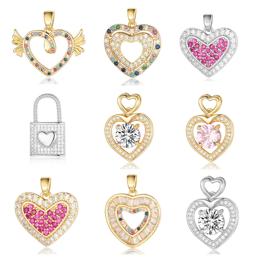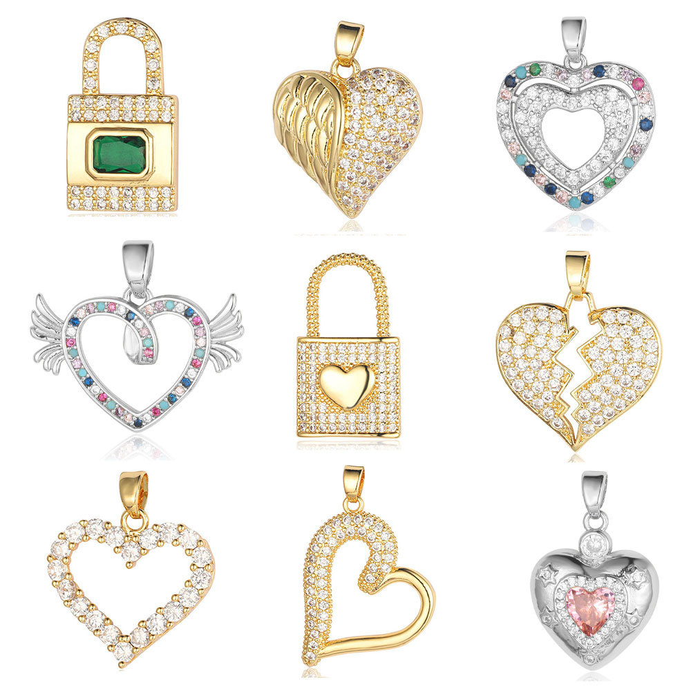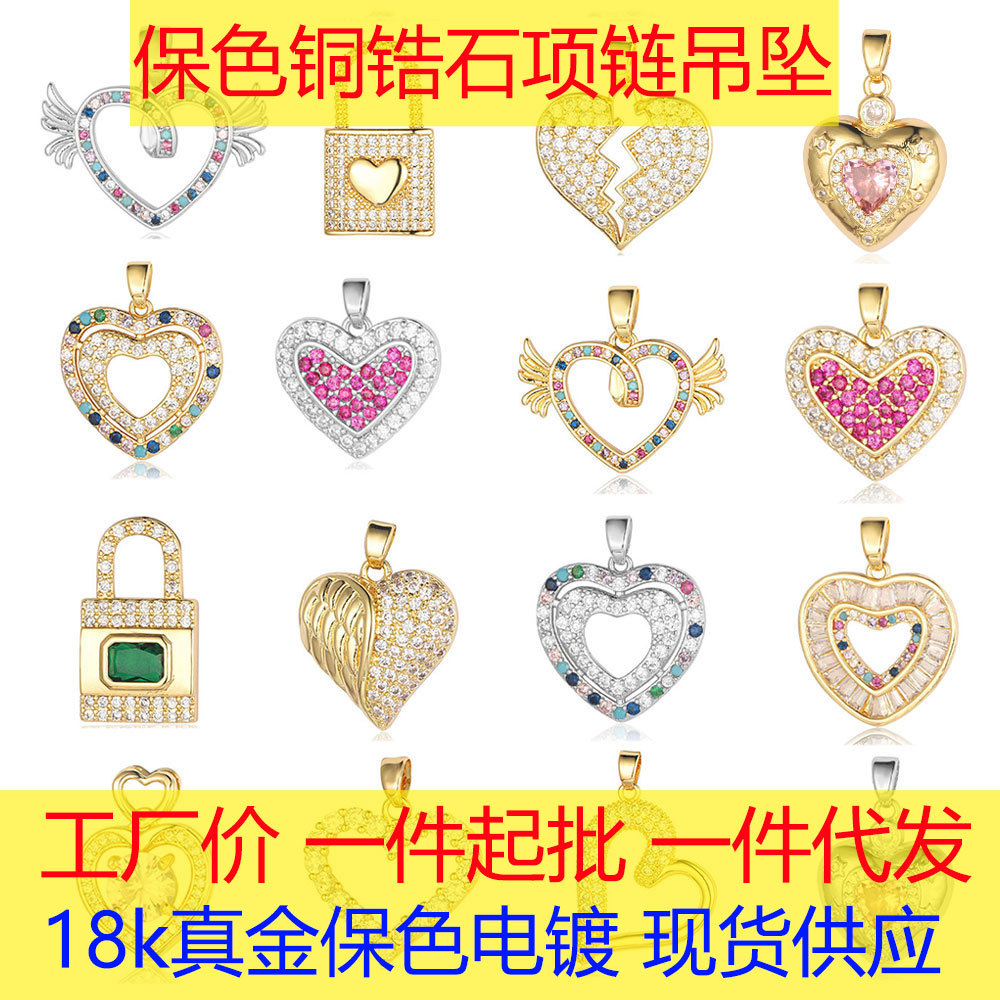 爱心锁彩锆铜微镶项链瓜子扣吊坠歪桃心镶钻饰品挂坠挂件