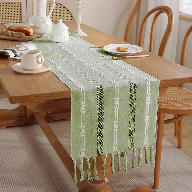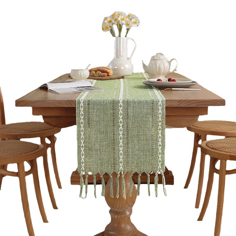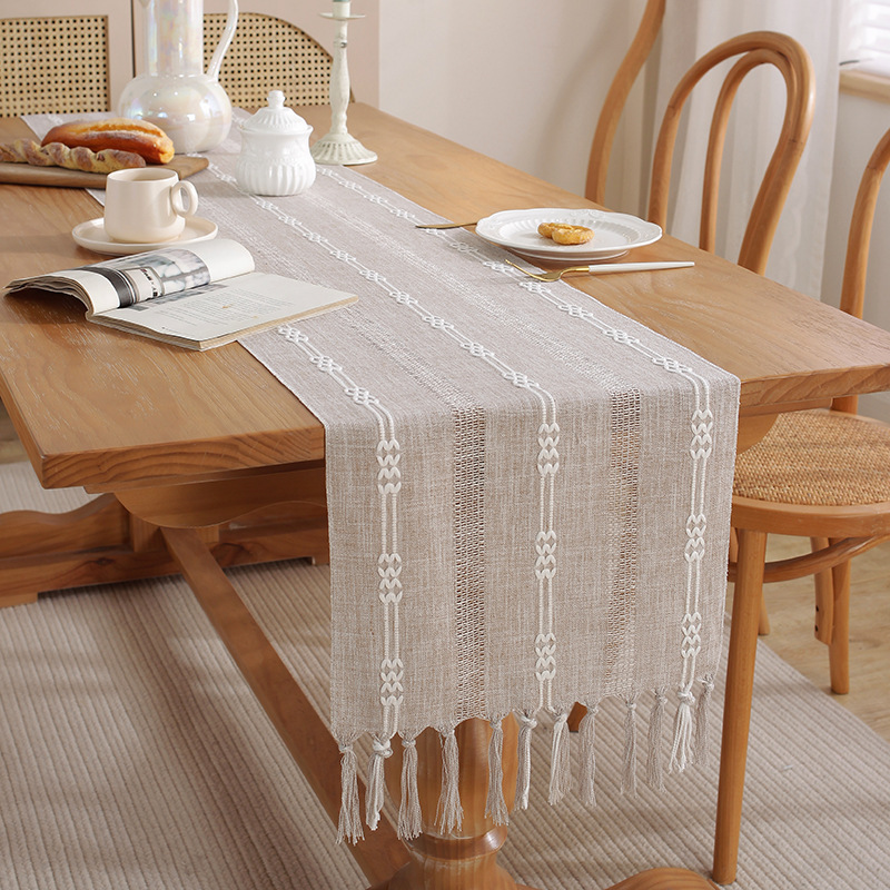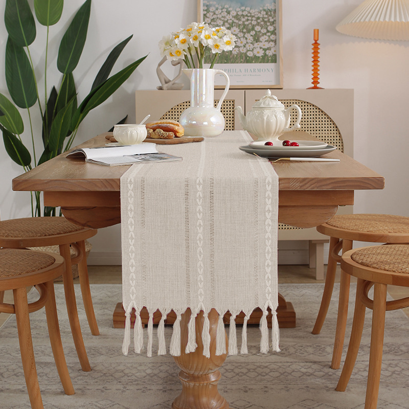仿棉麻手工编织镂空流苏桌旗家用美式乡村圣诞餐桌布桌旗