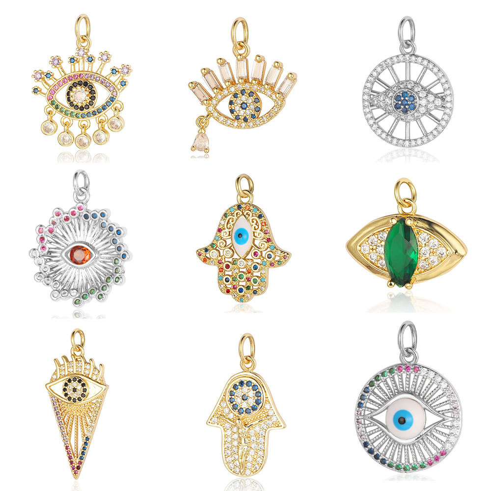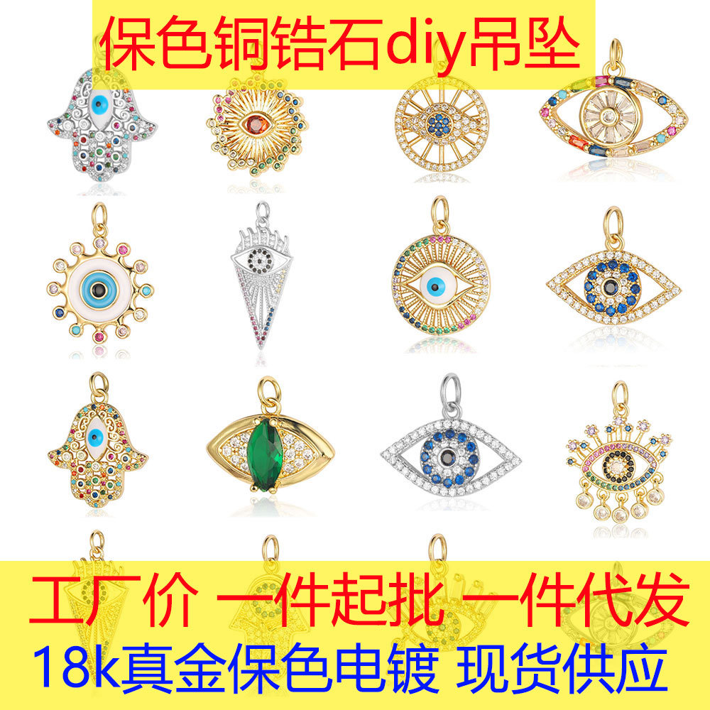邪恶之眼铜锆石diy饰品配件法蒂玛手掌眼睛眼泪彩锆项链吊坠