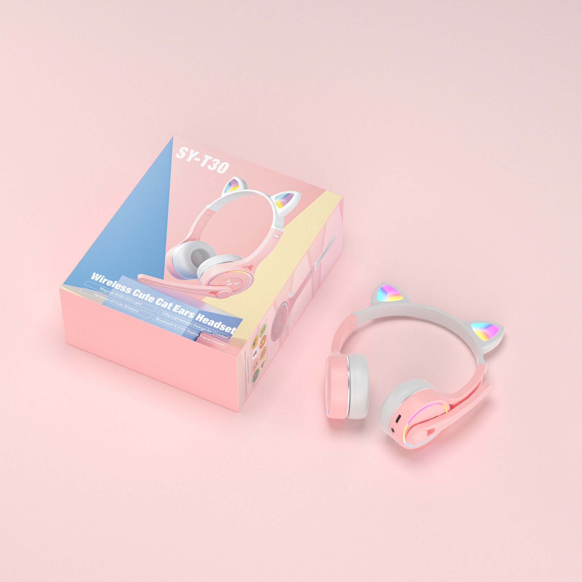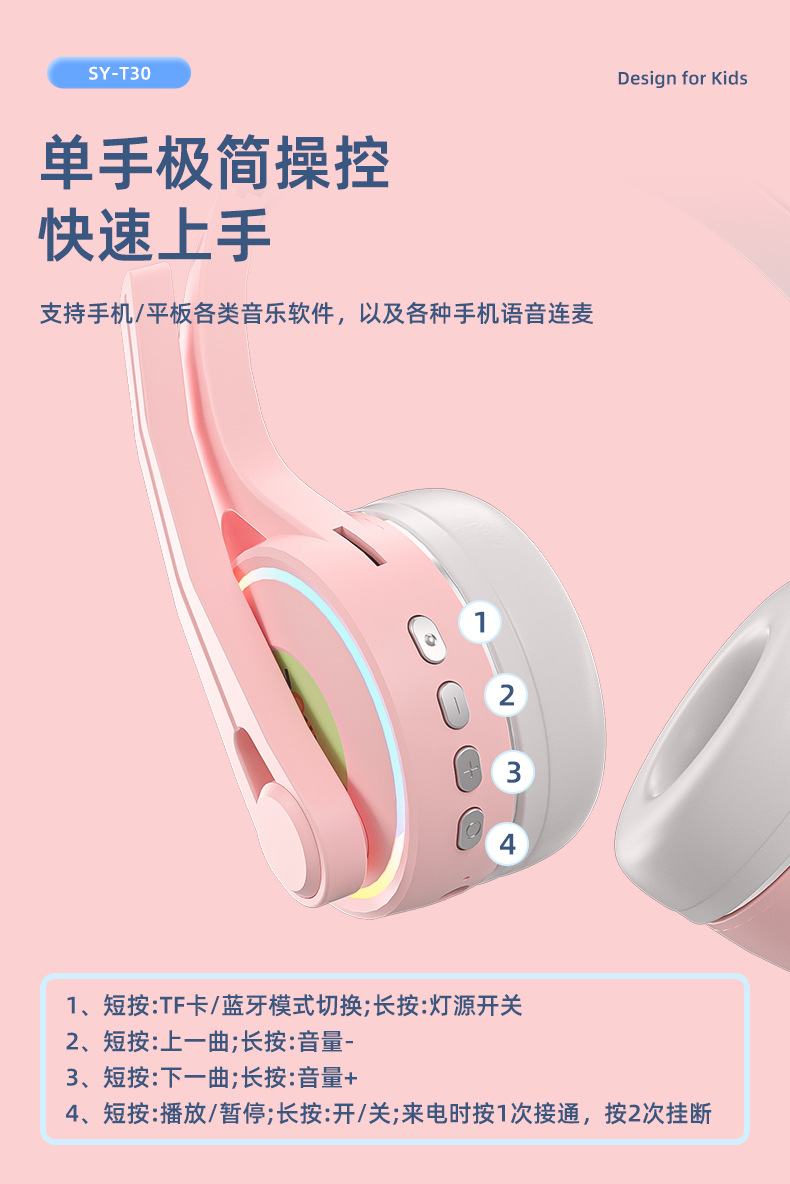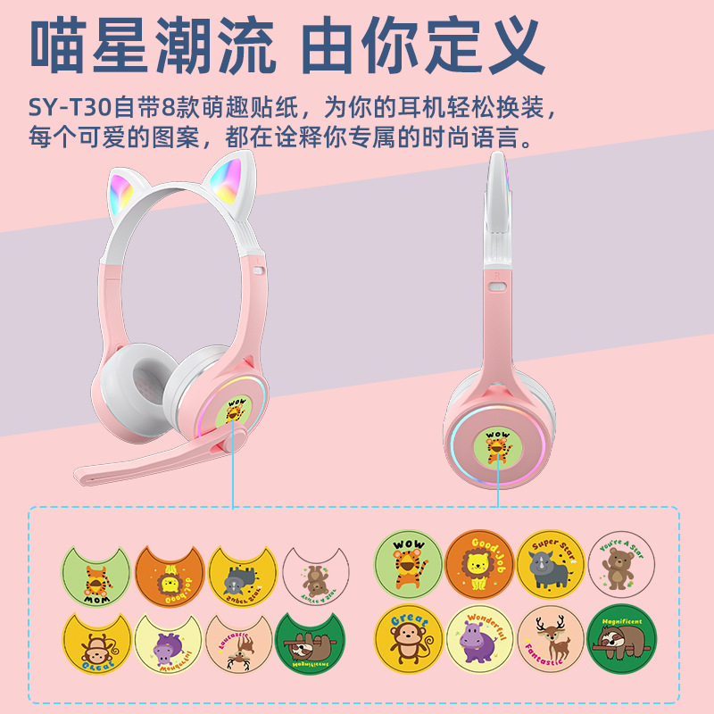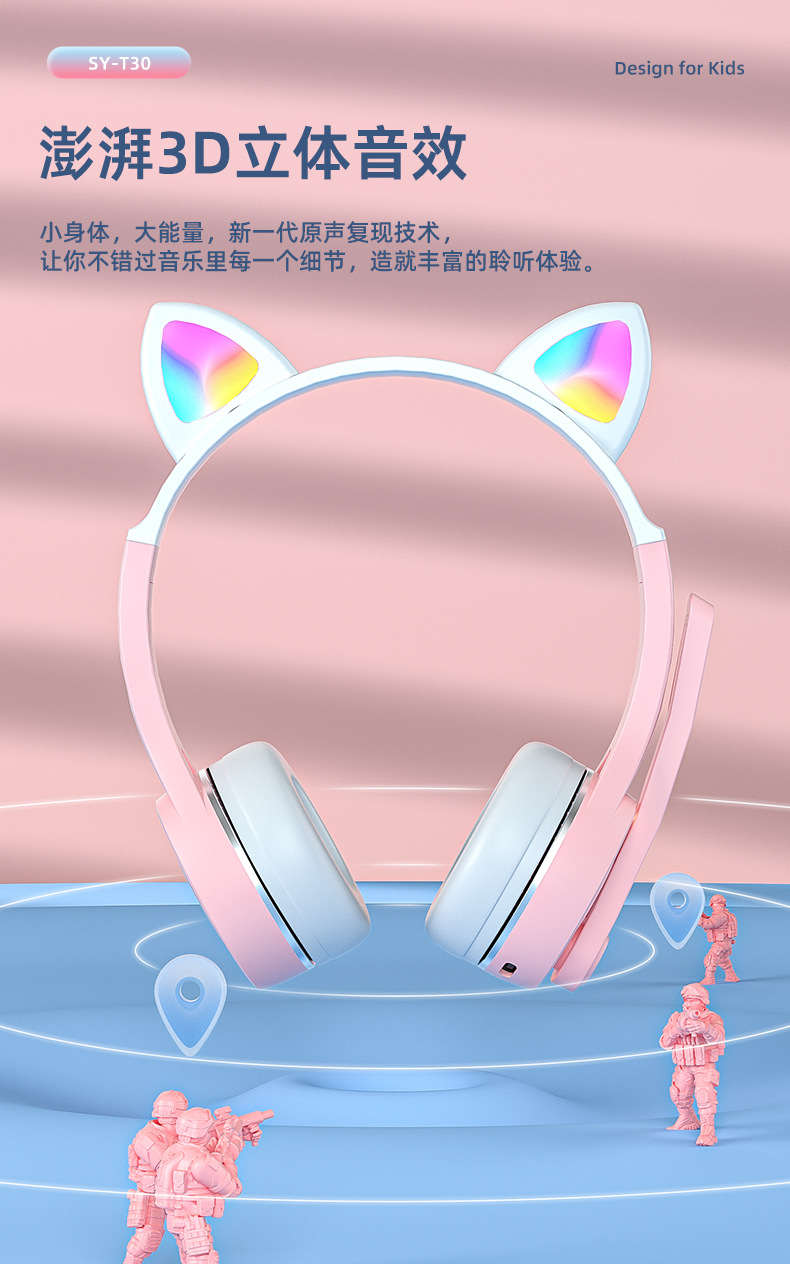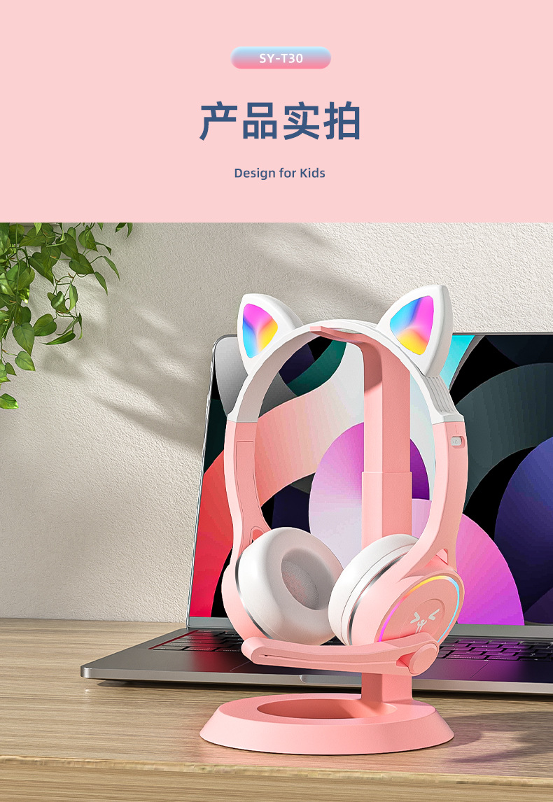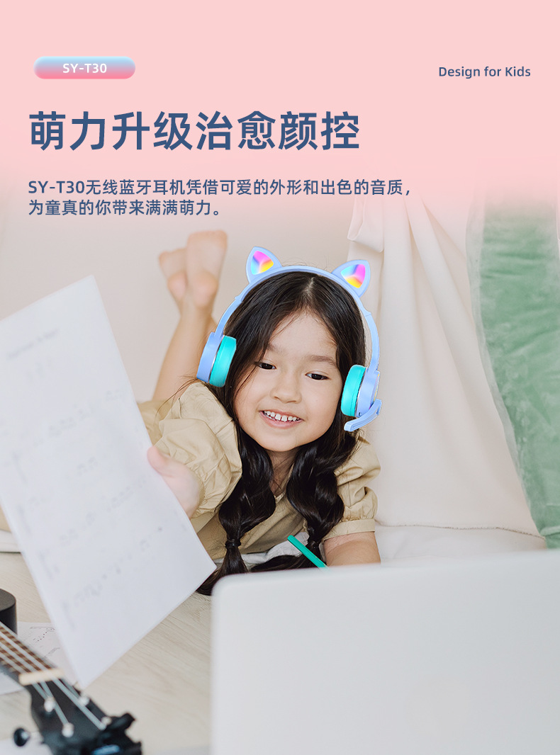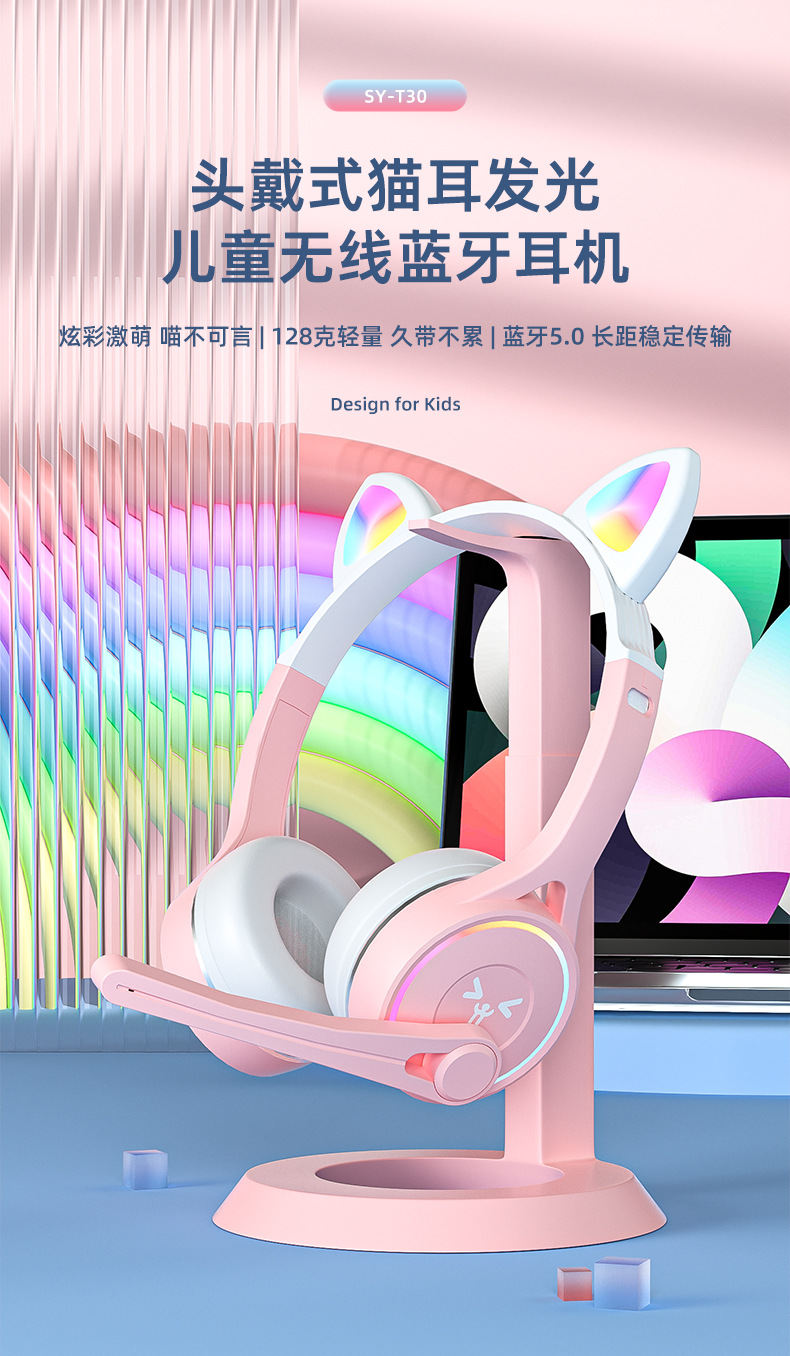 SY-T30 爆款可爱猫耳儿童蓝牙耳机头戴式卡通手机K歌无线耳机耳麦