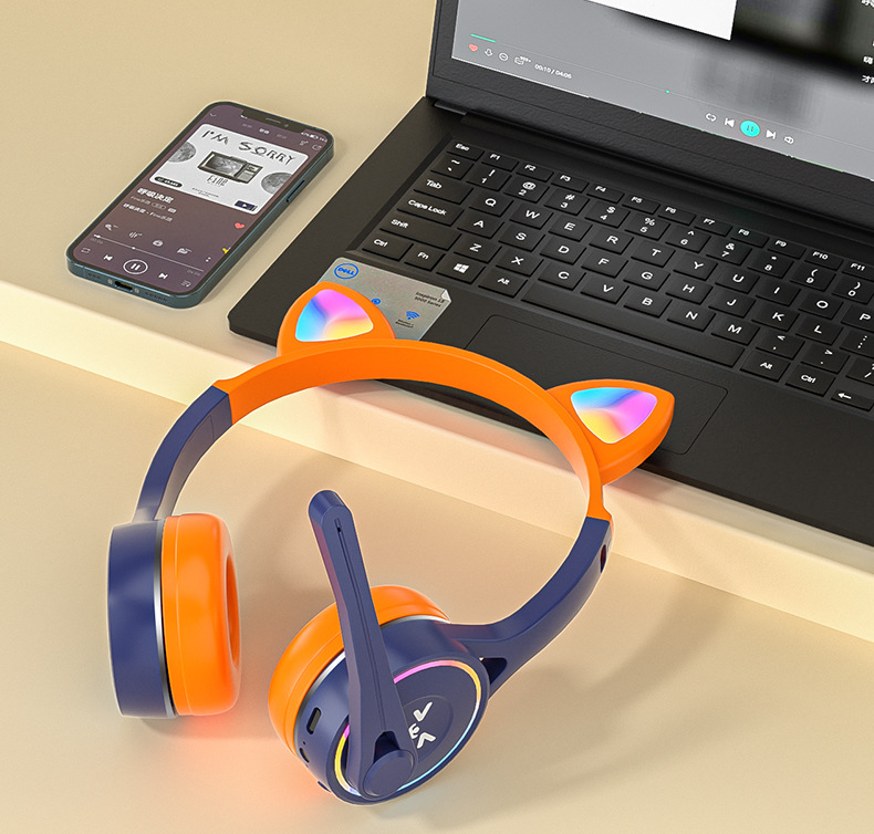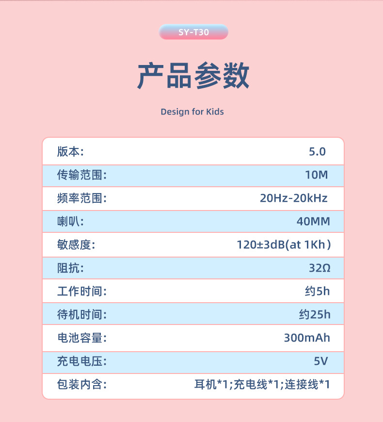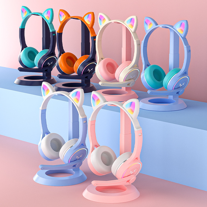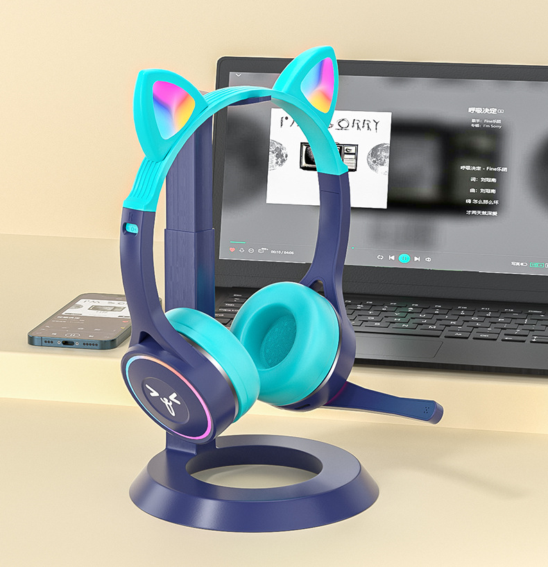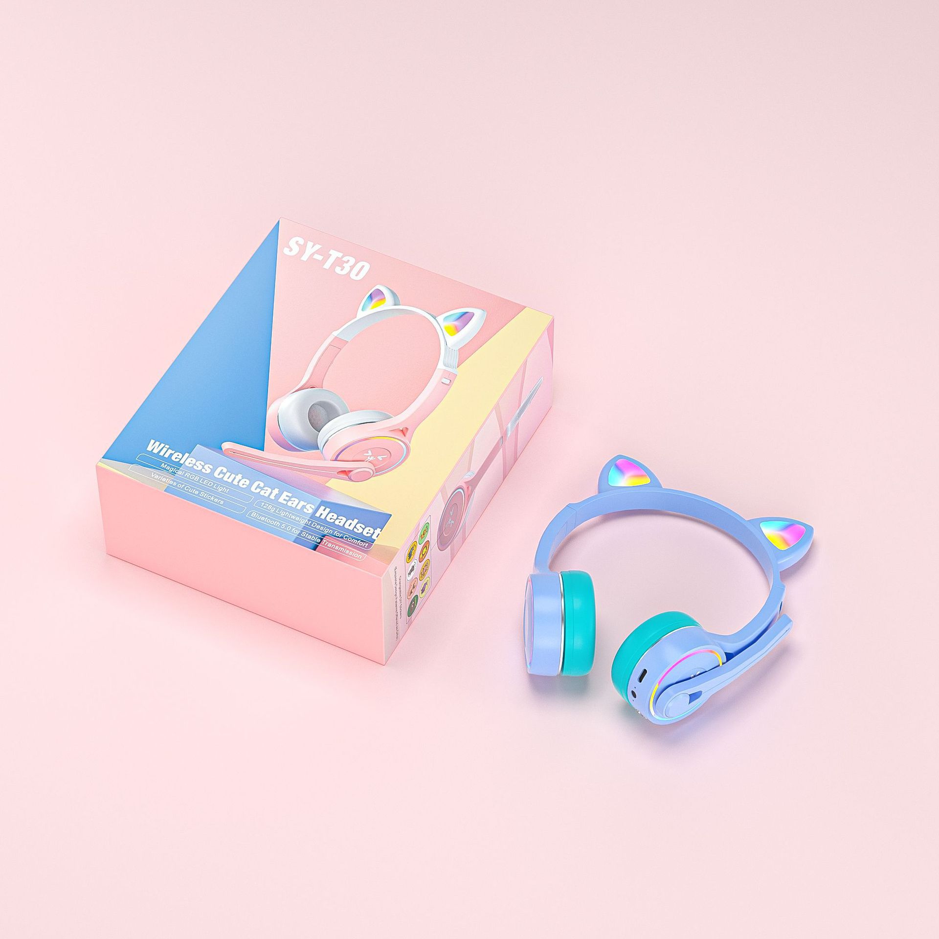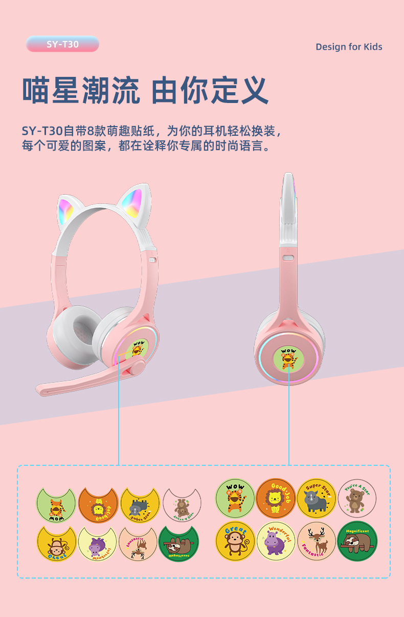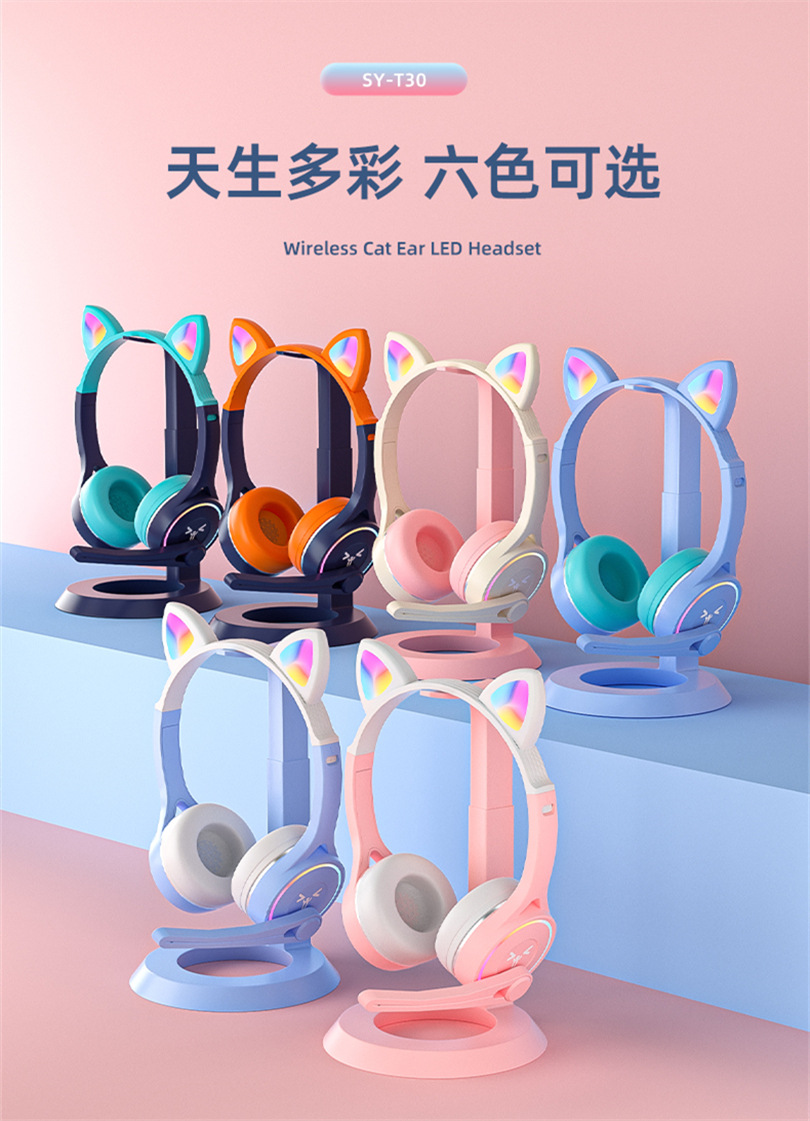 SY-T30 爆款可爱猫耳儿童蓝牙耳机头戴式卡通手机K歌无线耳机耳麦