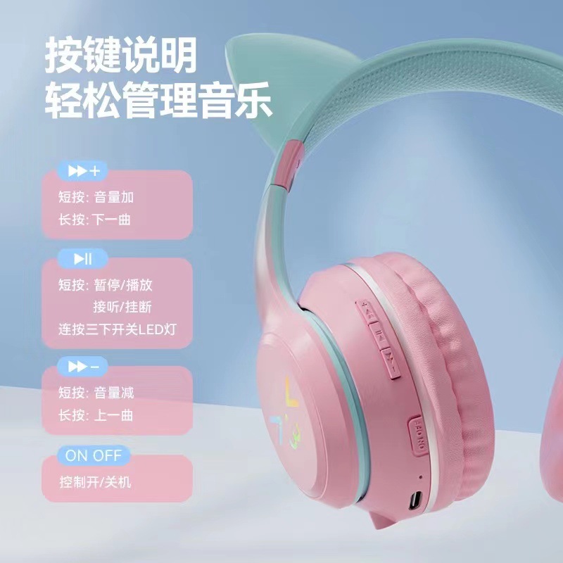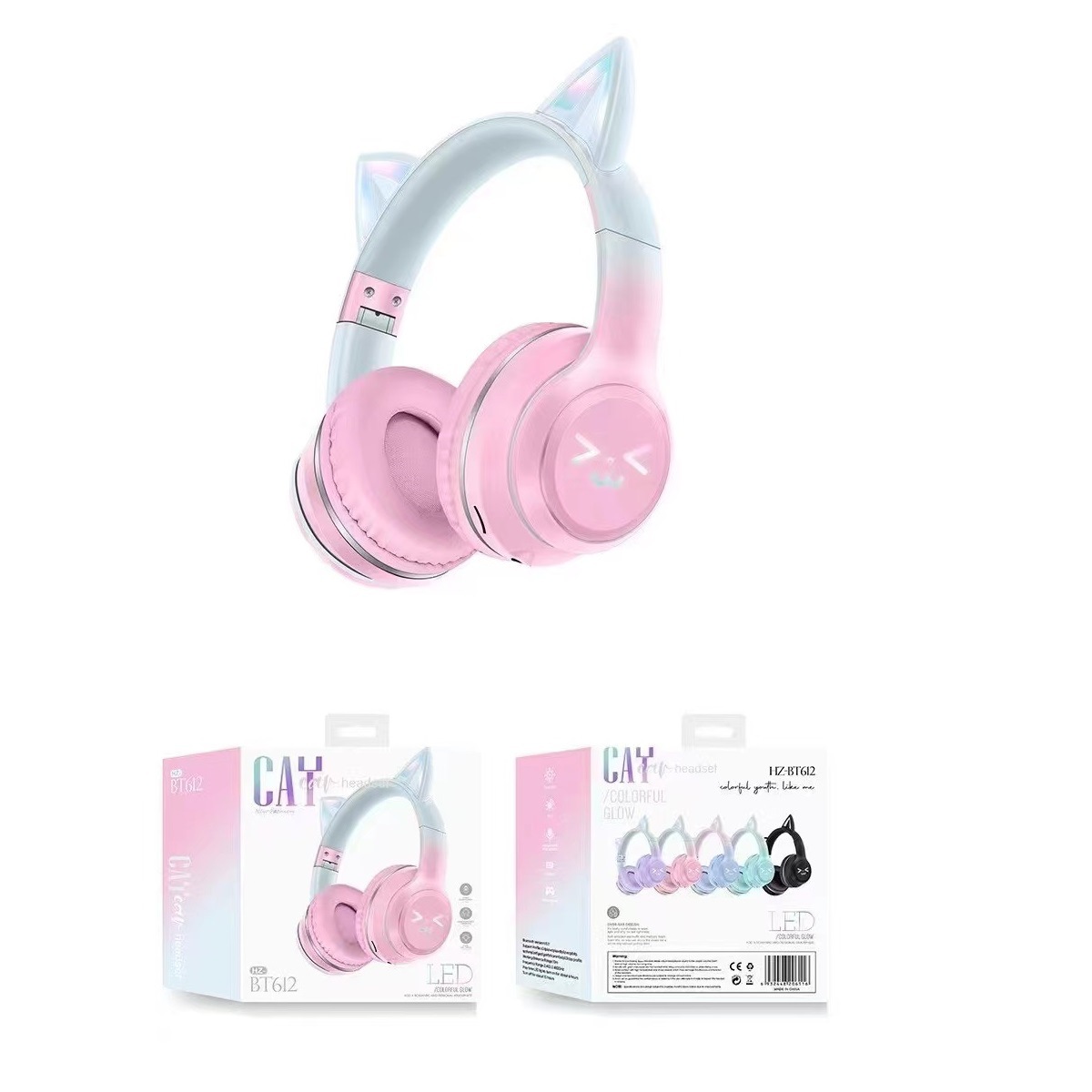 BT612 跨境猫耳发光头戴蓝牙耳机渐变色游戏电竞无线耳机蓝牙耳机