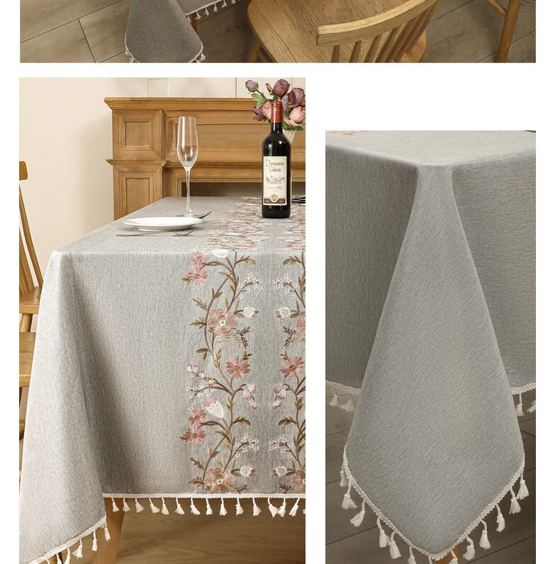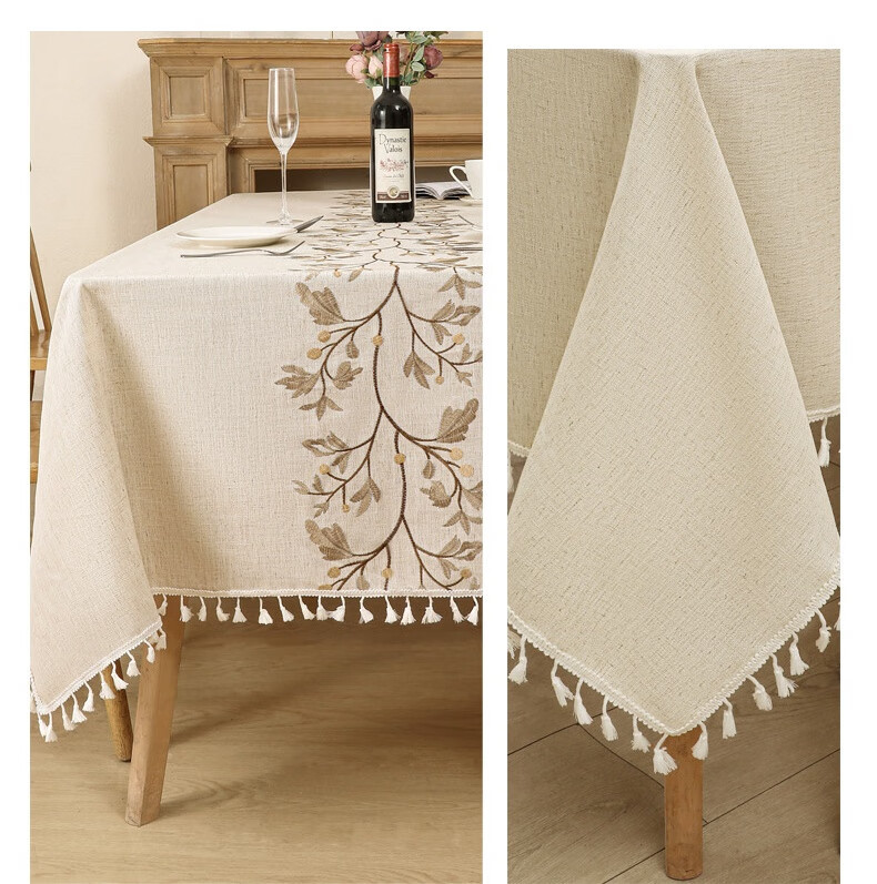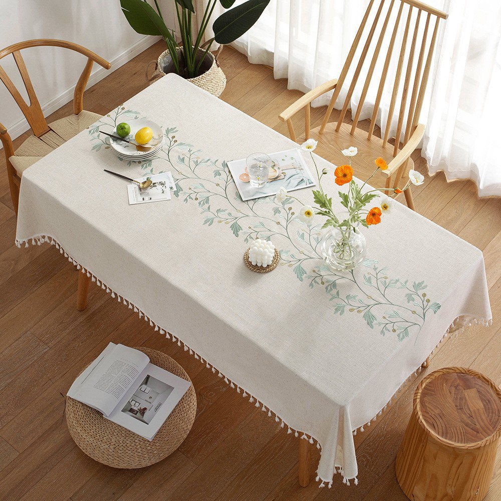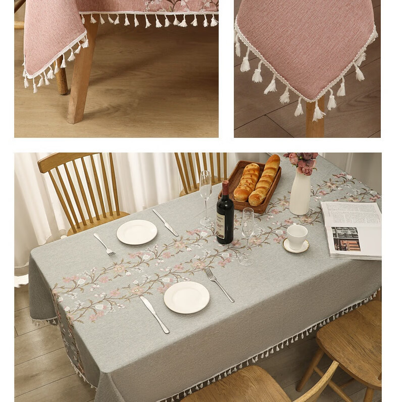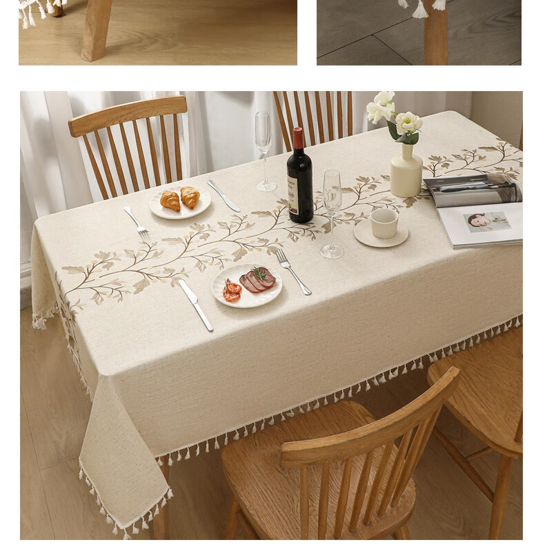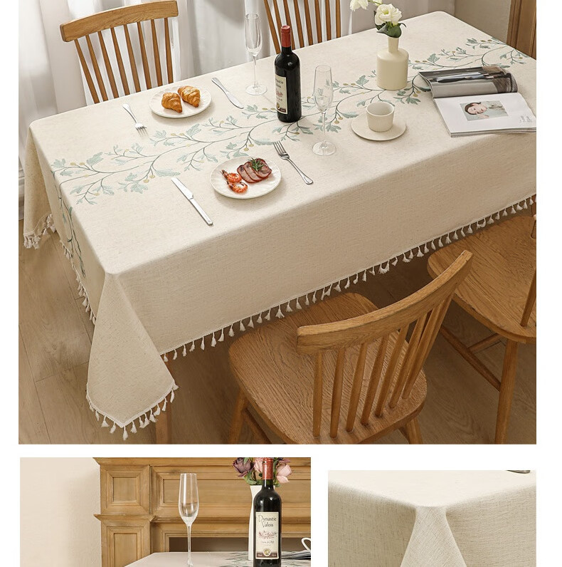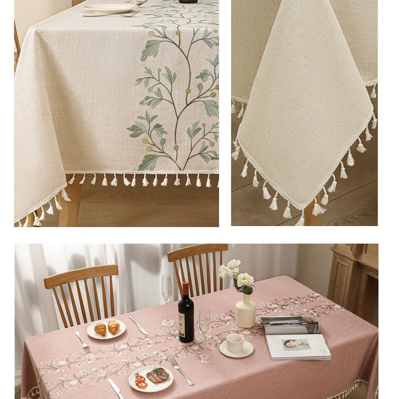新款北欧ins 风餐桌布茶几桌布艺棉麻长方形简约台布桌旗绣花桌布