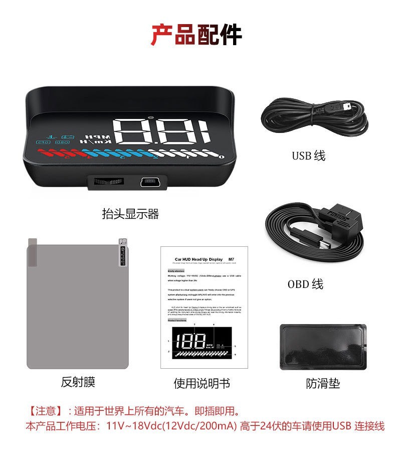 M7车载HUD抬头显示器汽车OBD通用 车速仪表 水温高清悬浮投影仪