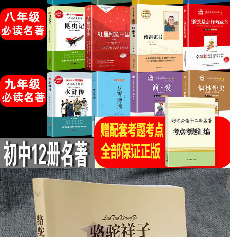 骆驼祥子朝花夕拾12本红星照耀中国艾青诗选简爱初中名着