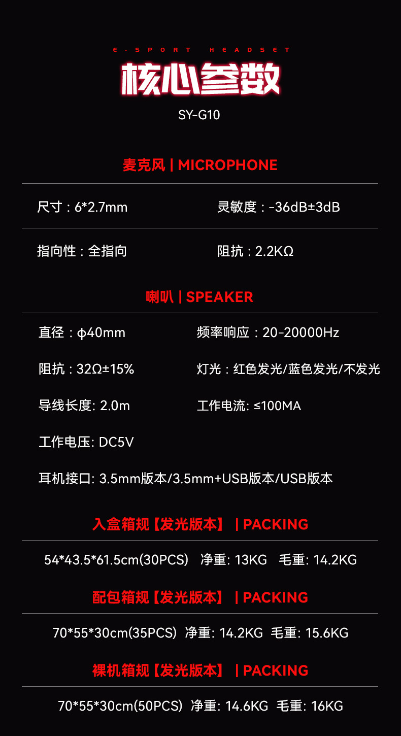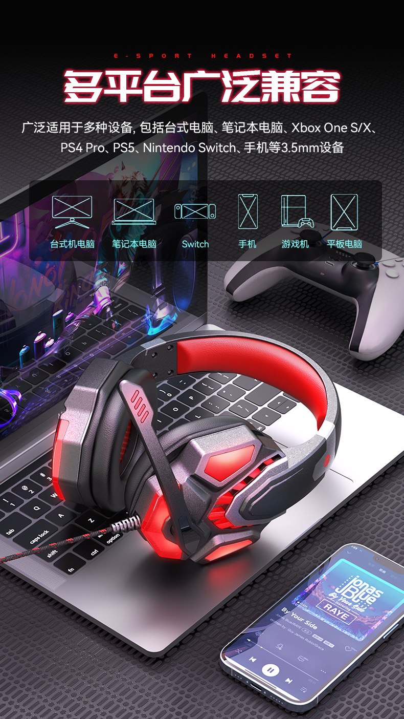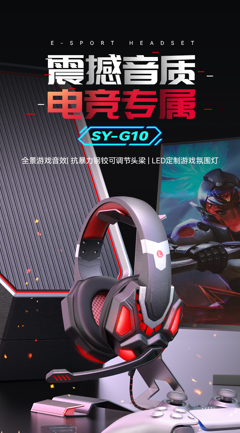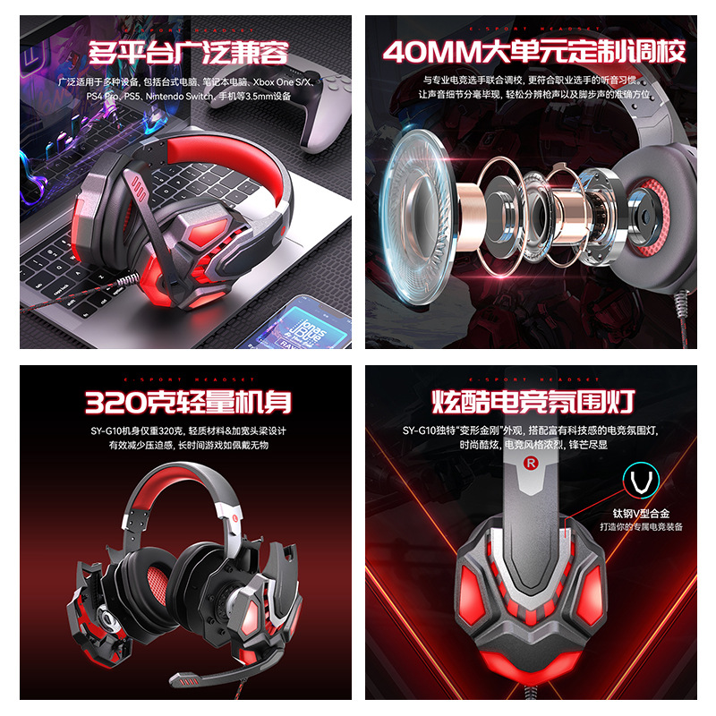 SY-G10 跨境有线电脑游戏电脑耳机吃鸡PS5头戴式电竞耳机耳麦批发