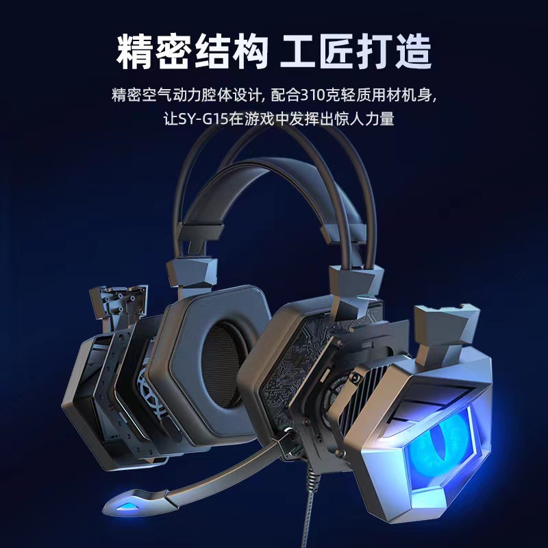SY-G15头戴式游戏耳机 电竞耳机头戴式 发光重低音线控电脑耳机