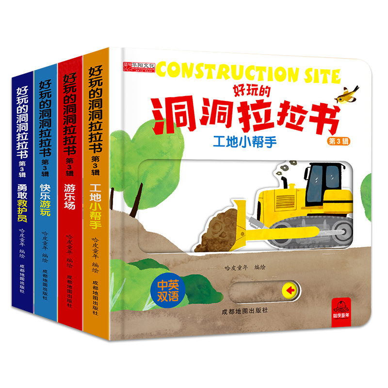 好玩的洞洞拉拉书0-3岁宝宝早教益智游戏书机关立体翻翻书4册