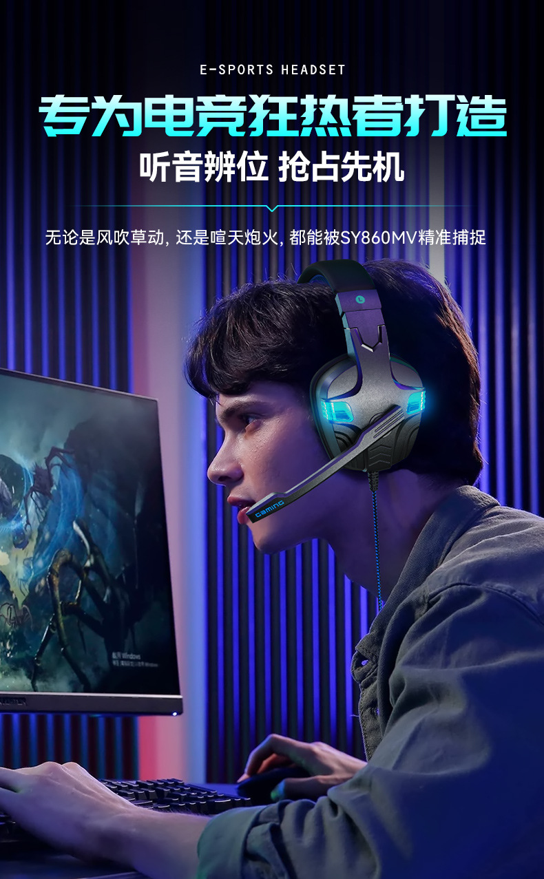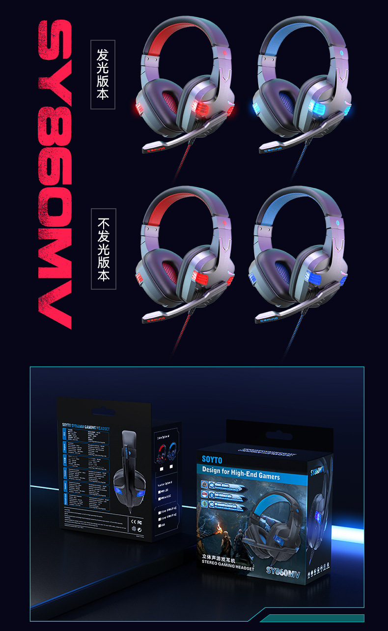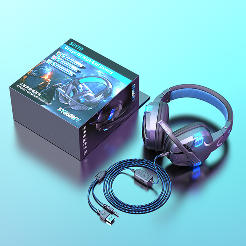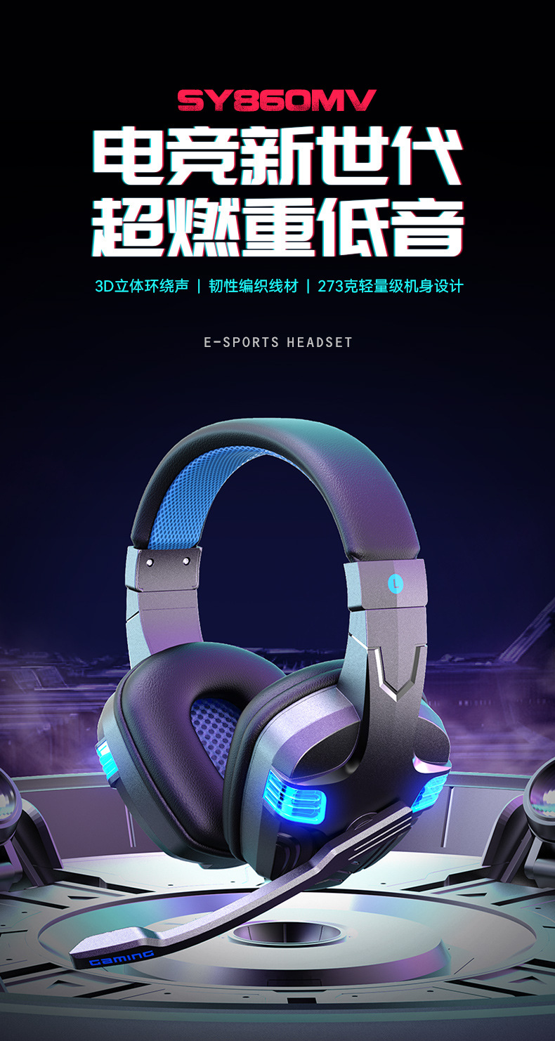 SY-860MV 跨境热卖PS5有线耳麦游戏电脑耳机头戴电竞发光游戏耳机