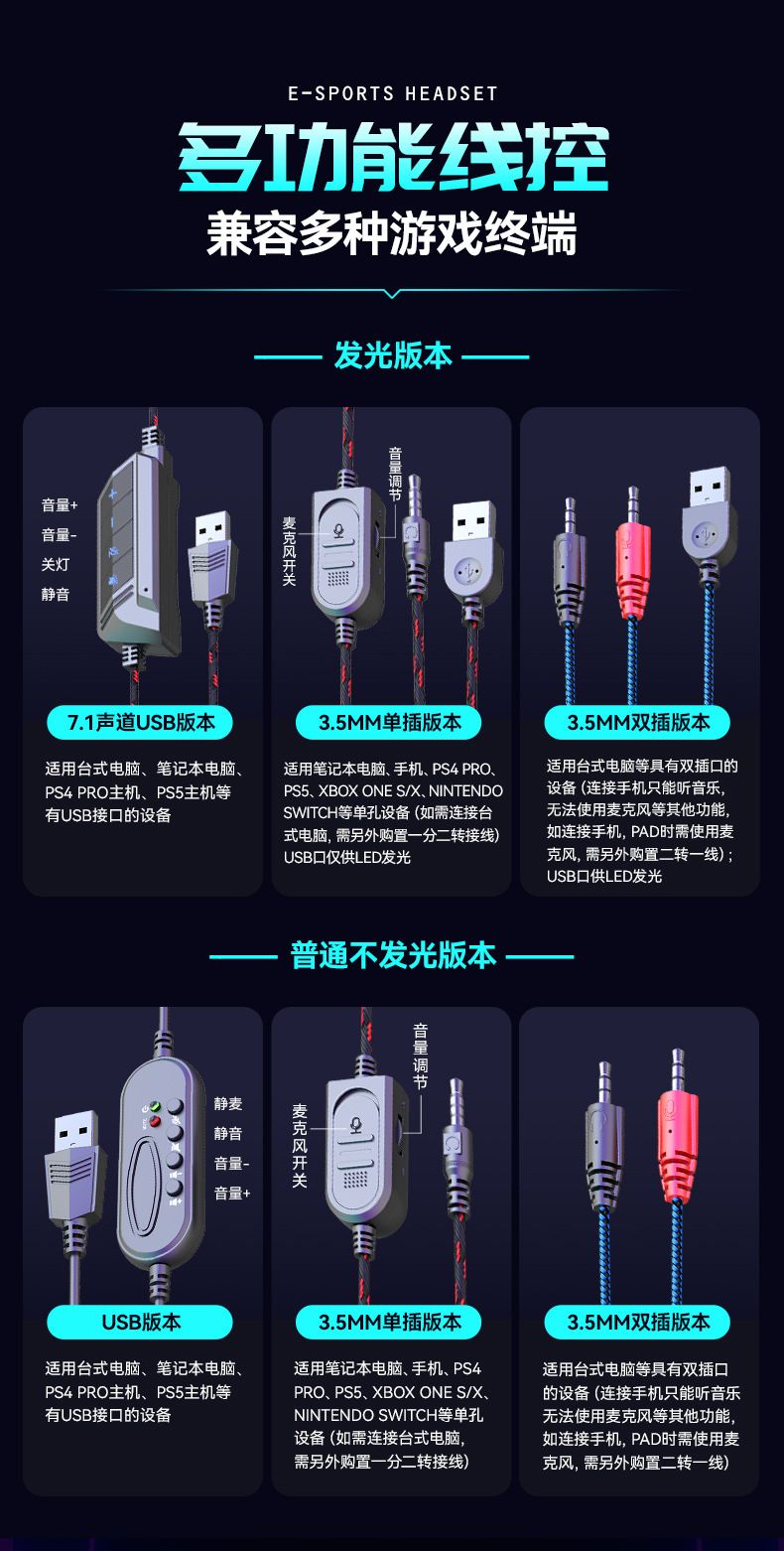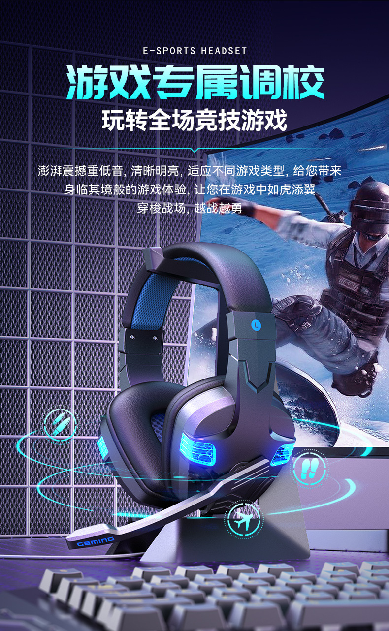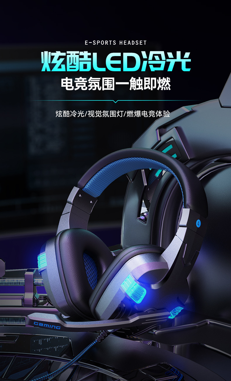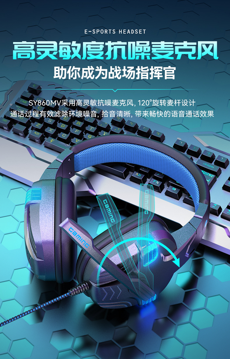 SY-860MV 跨境热卖PS5有线耳麦游戏电脑耳机头戴电竞发光游戏耳机
