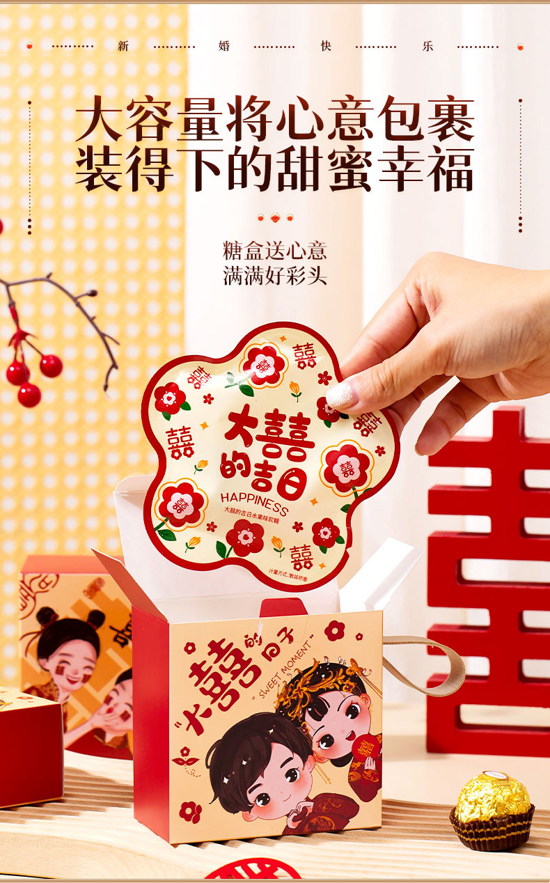 2024新款喜糖盒子结婚伴手礼盒礼袋空盒订婚糖果手提袋婚礼包装盒