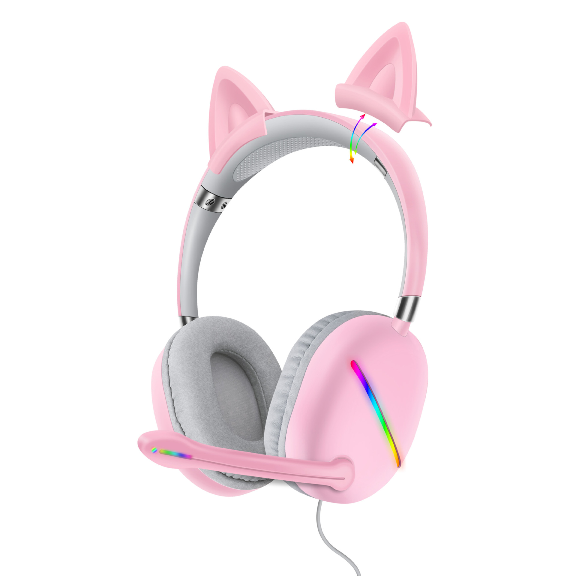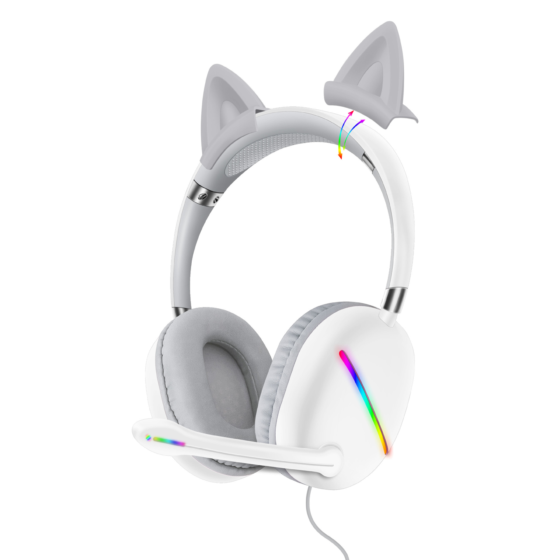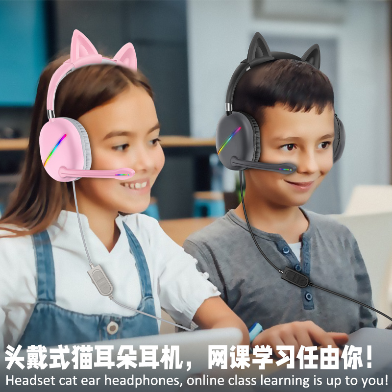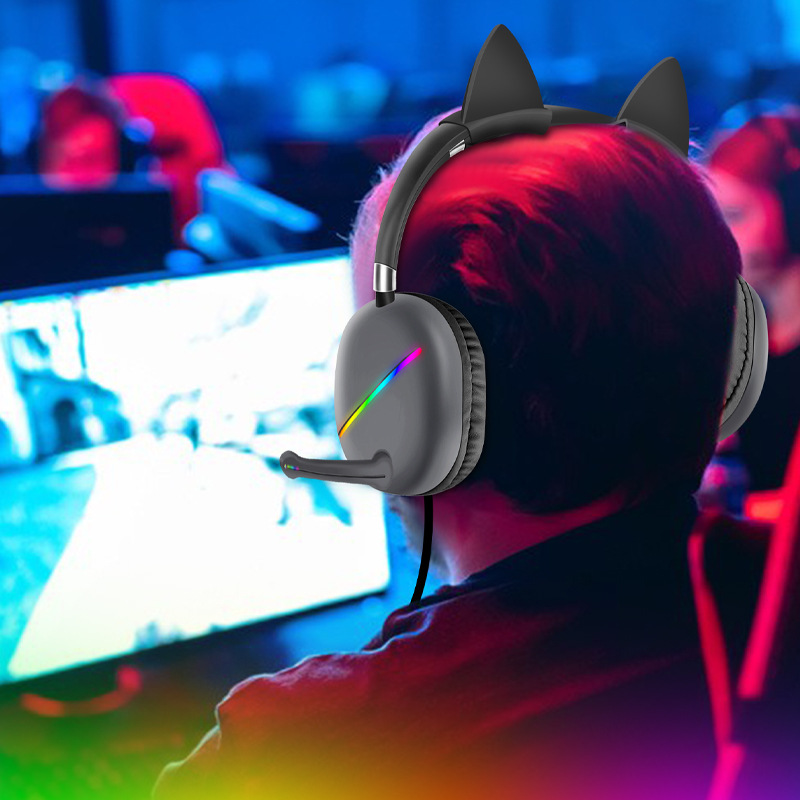 跨境热卖AKZ-D52RGB电竞耳麦耳机头戴式可拆卸猫耳朵有线耳机