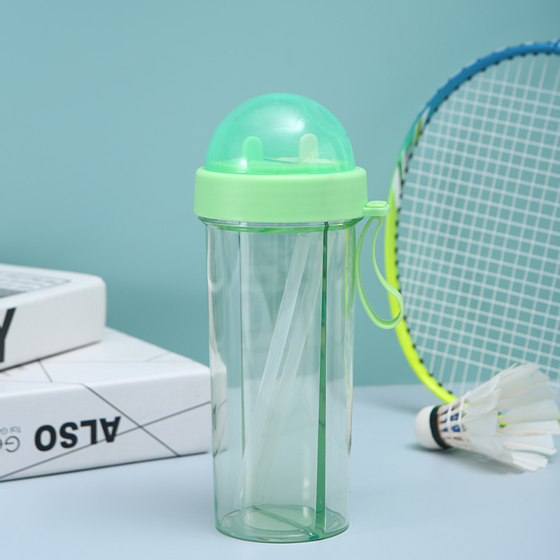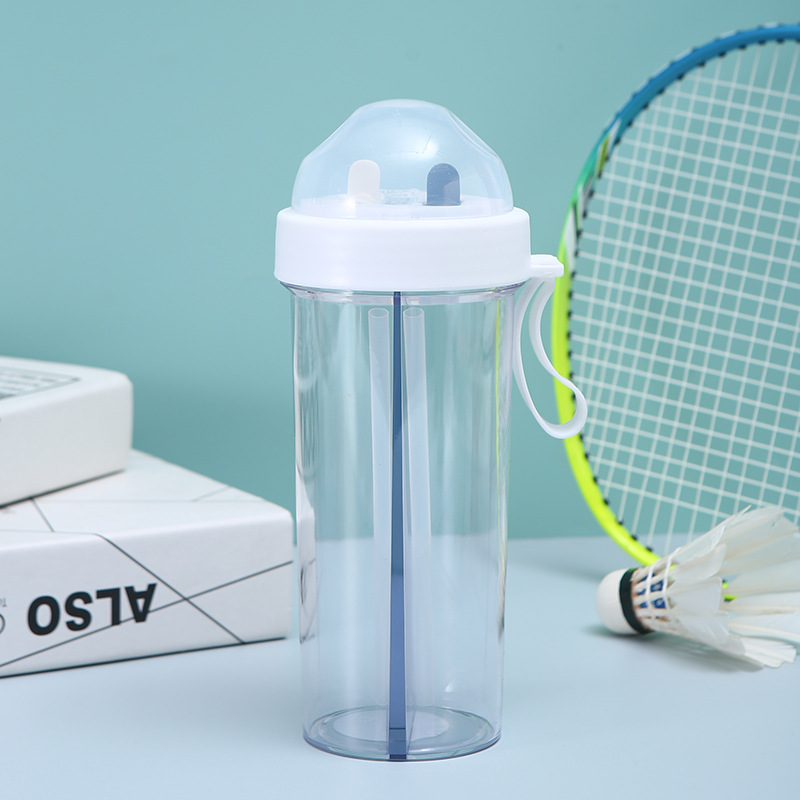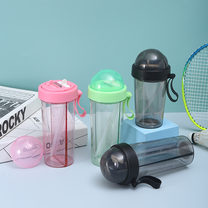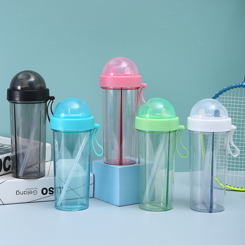 出口批发纯色简约吸管杯双饮大容量塑料杯提绳便携礼品杯现货批发