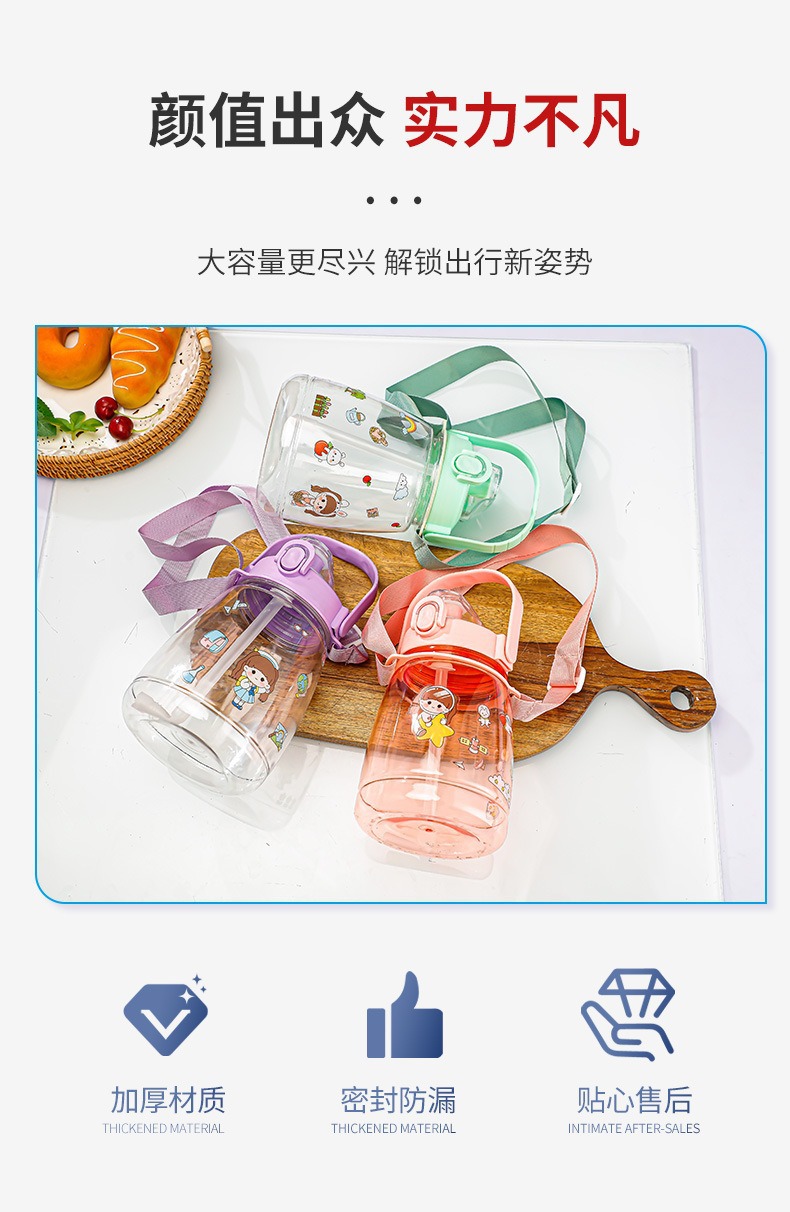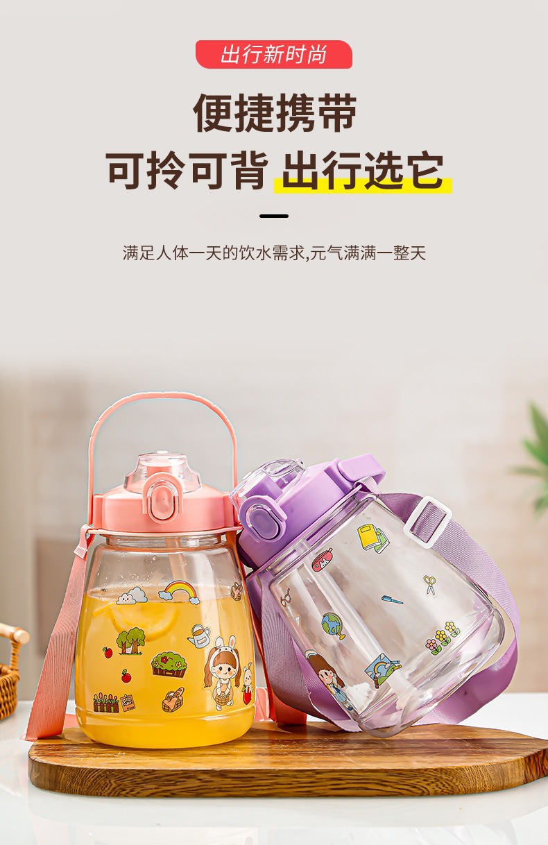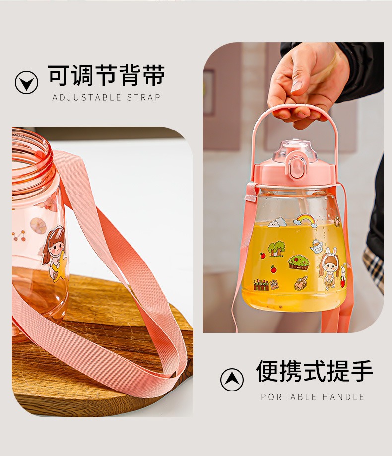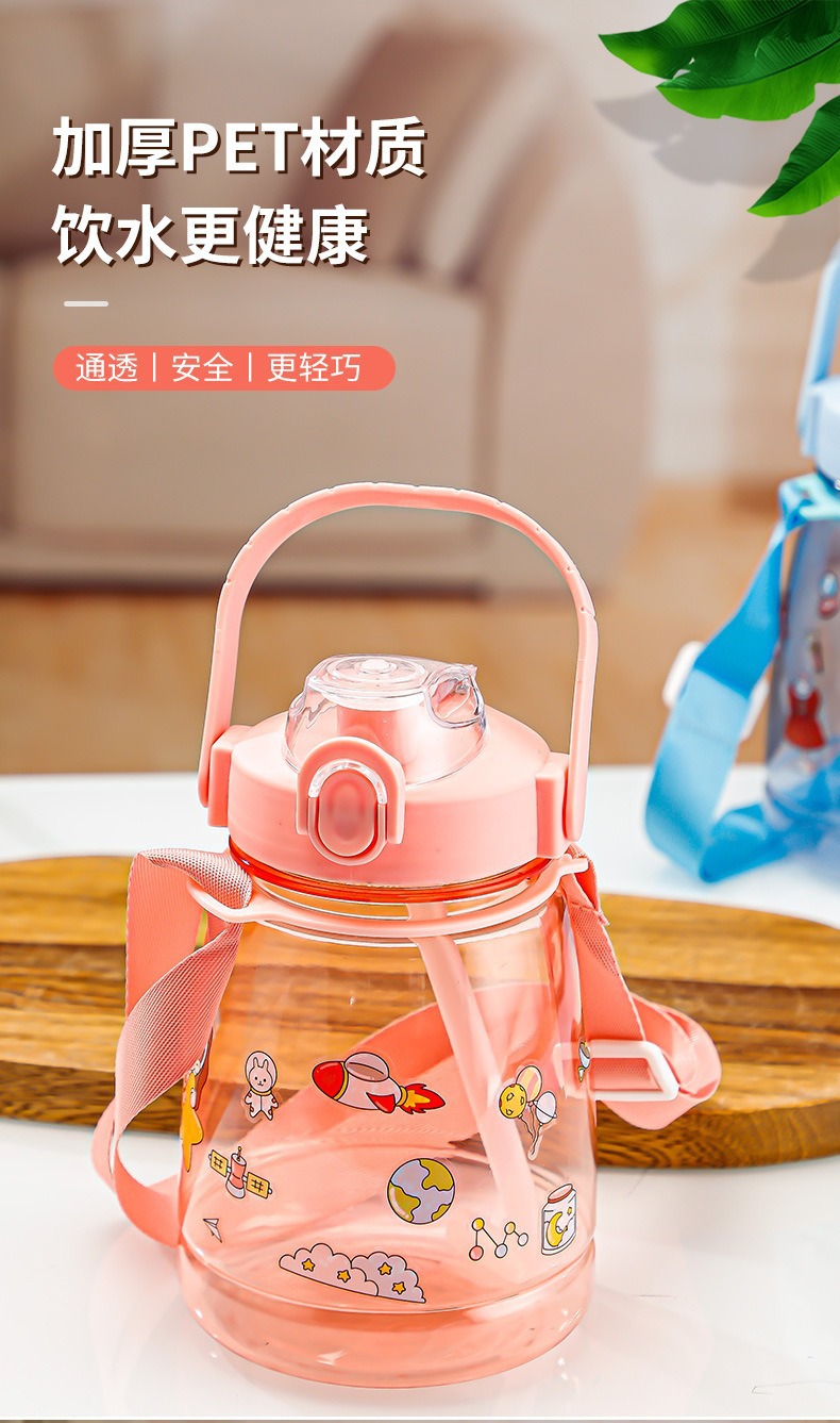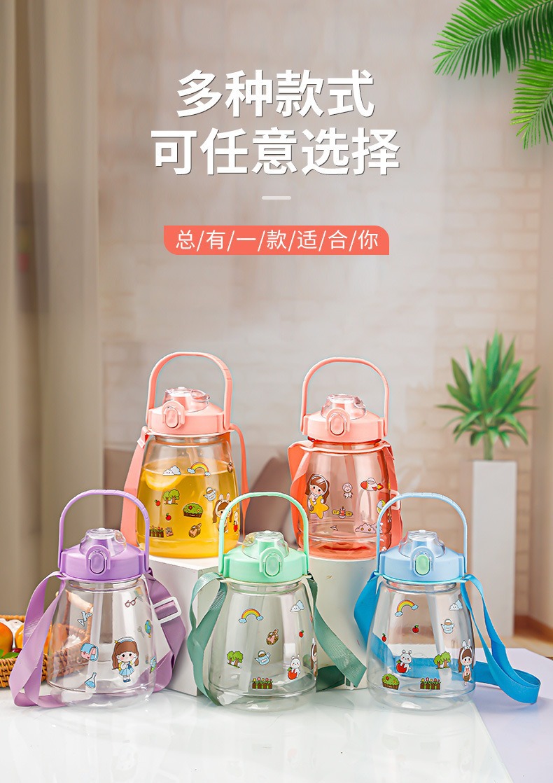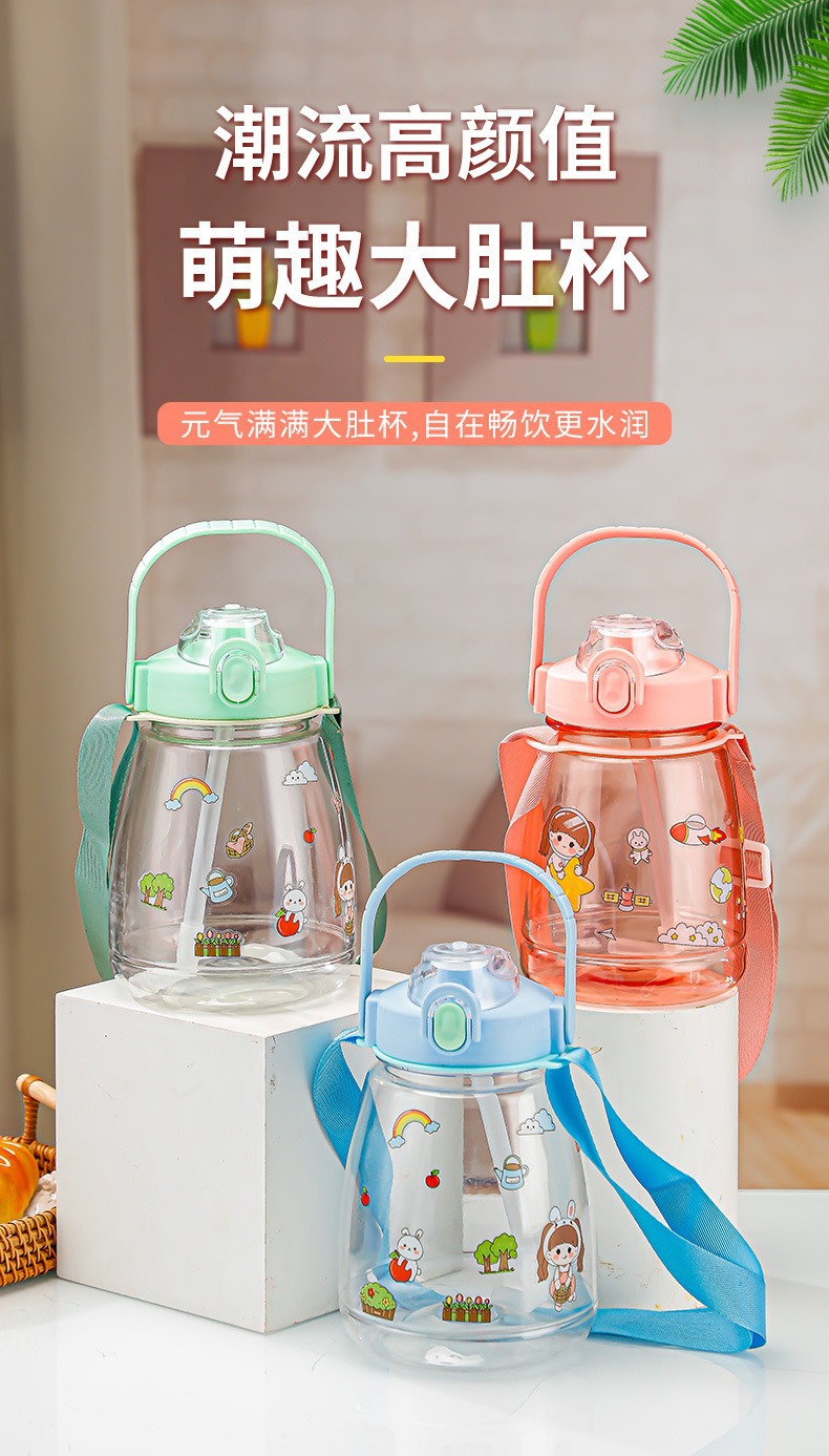 1500ml大肚杯水杯便携户外运动水壶儿童塑料吸管杯可爱卡通杯