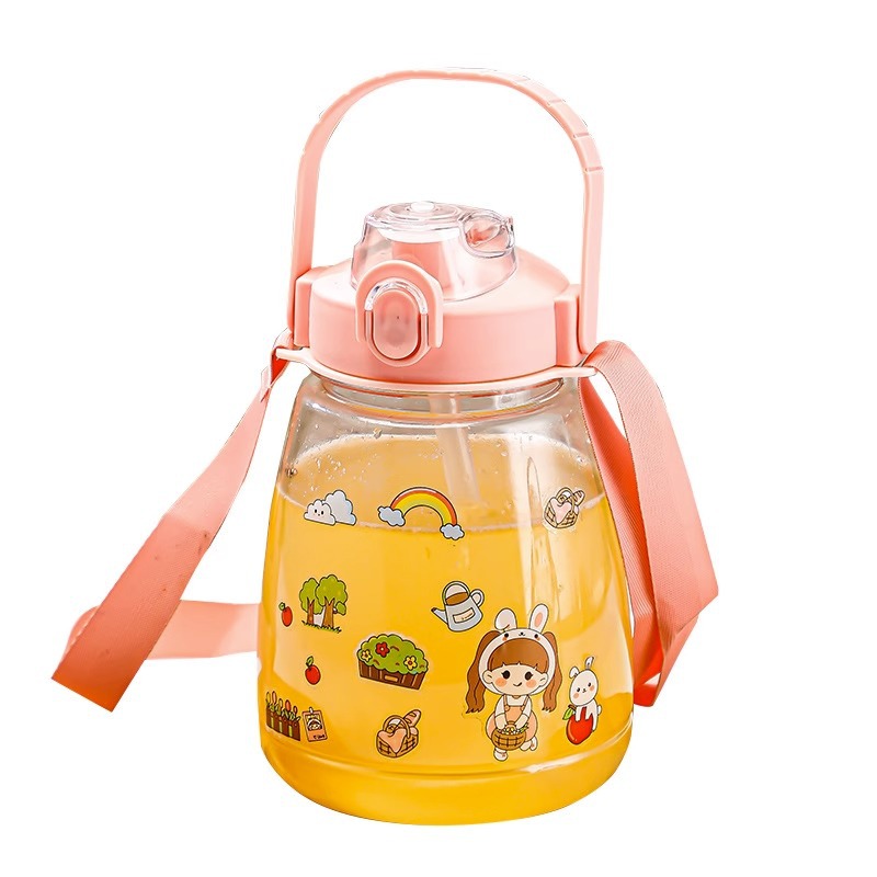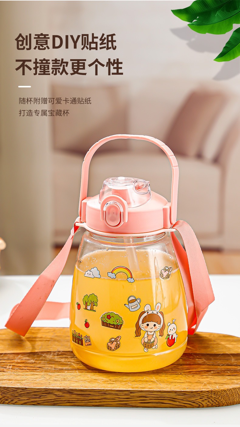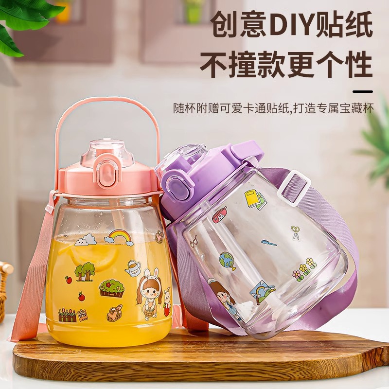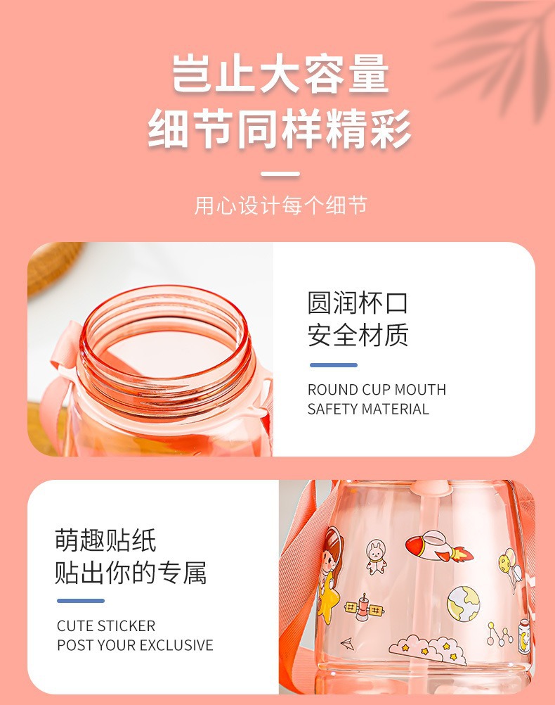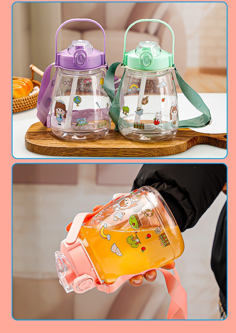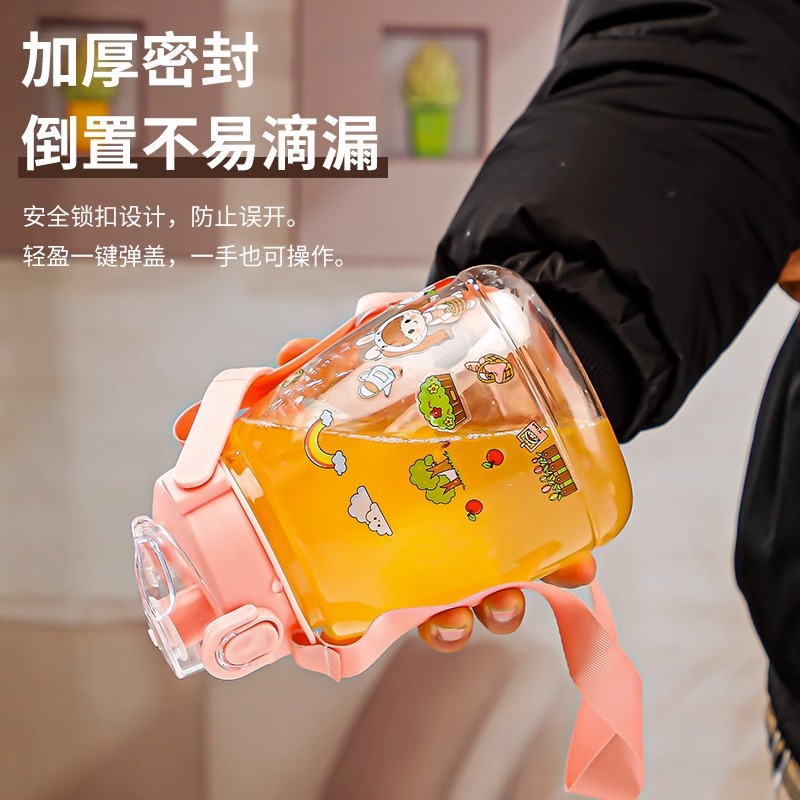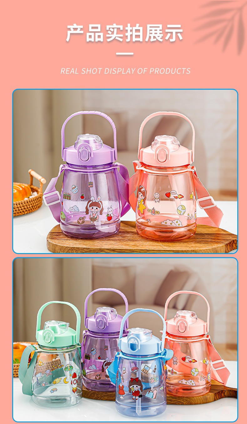 1500ml大肚杯水杯便携户外运动水壶儿童塑料吸管杯可爱卡通杯