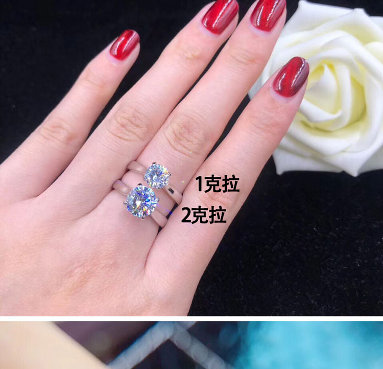 进口莫桑石钻戒2克拉银情侣对戒男结婚求婚生日礼物戒指送女友