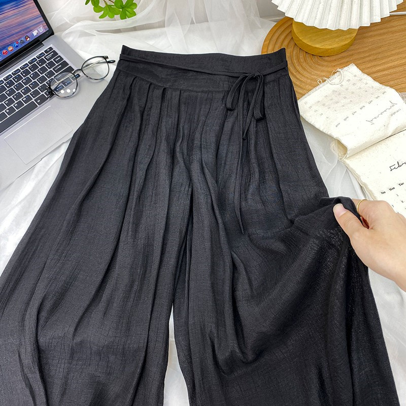 复古冰丝麻棉百褶飘飘阔腿长裙裤女春夏掐腰垂感百搭大摆休闲裤子