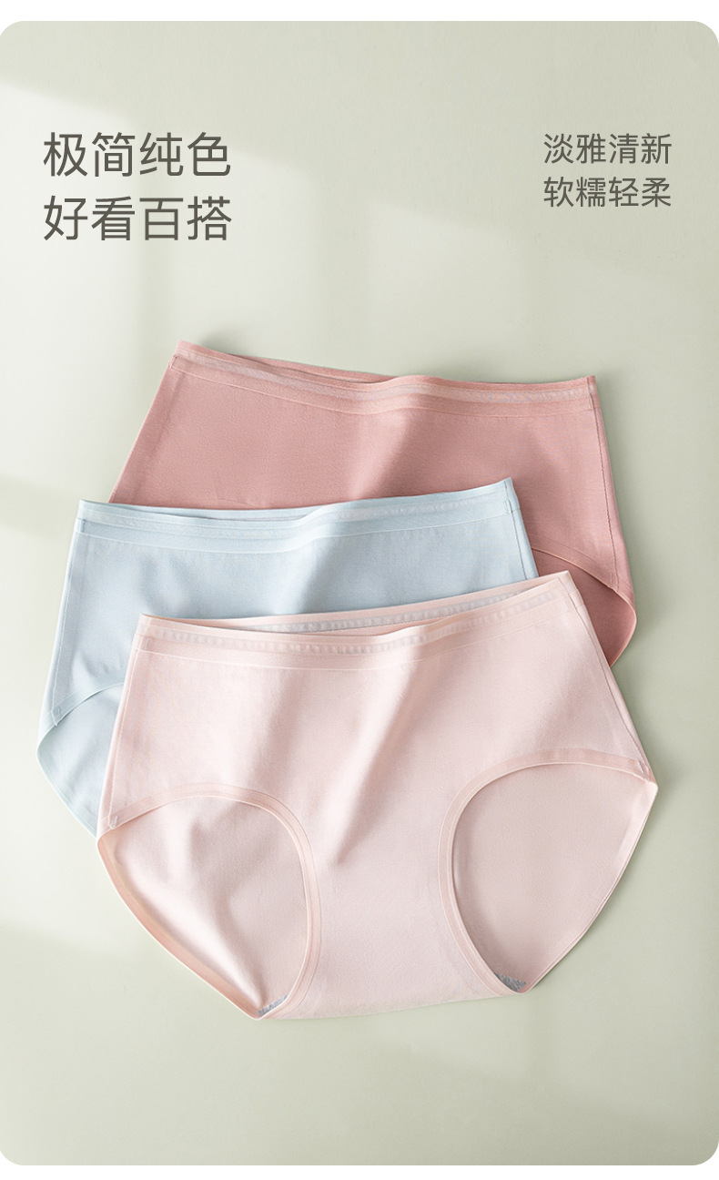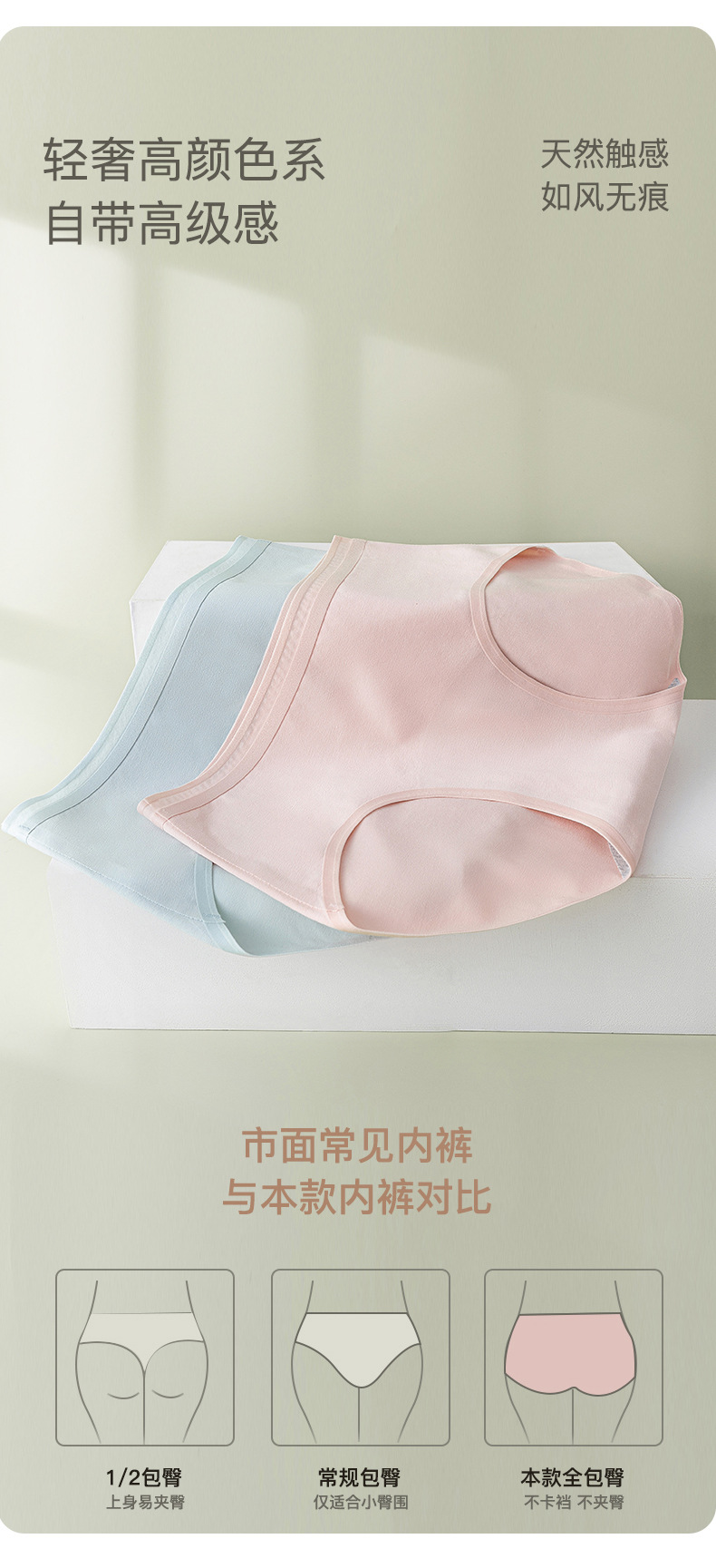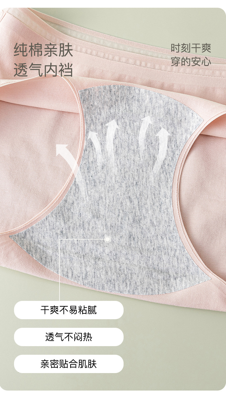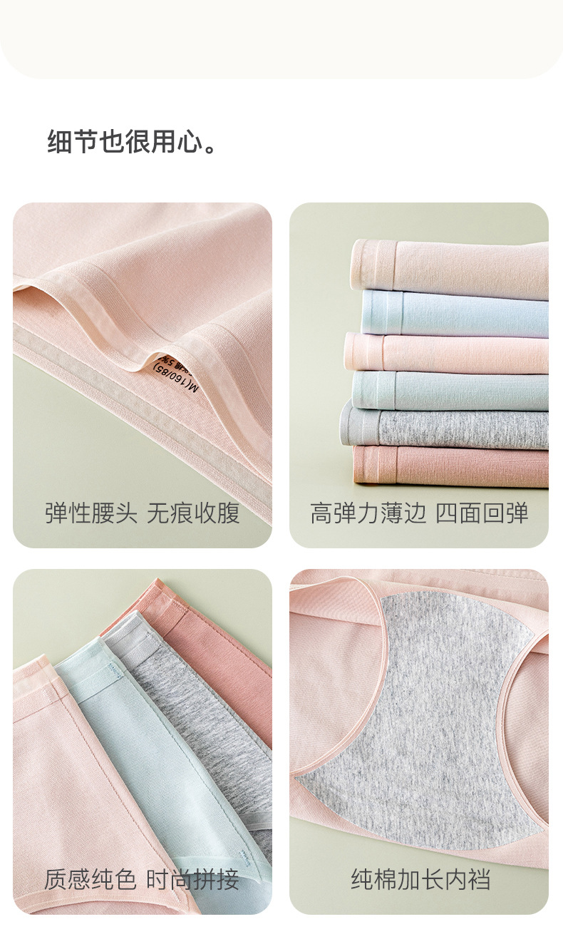 新款纯棉加长裆加高加宽中腰亲肤透气女士内裤无痕清新少女三角裤