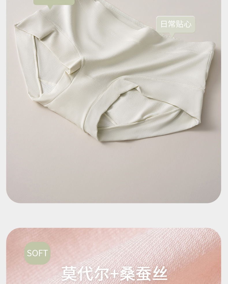 夏季裸感亲肤纯色舒适透气桑蚕丝50支莫代尔女士内裤三角裤