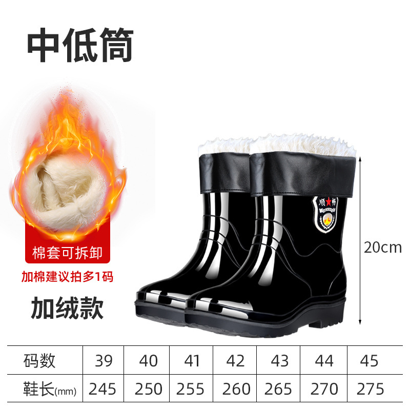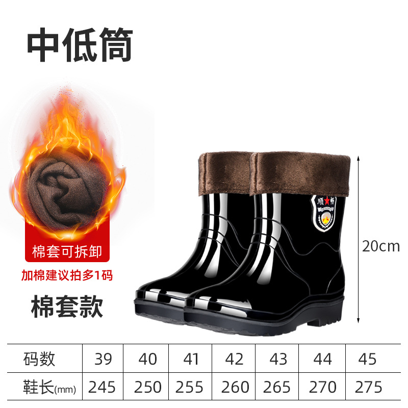 棉雨鞋冬天加绒加厚保暖水鞋防滑 冬季胶鞋长筒男士冬款防水雨靴