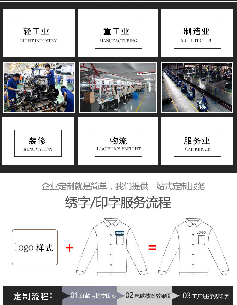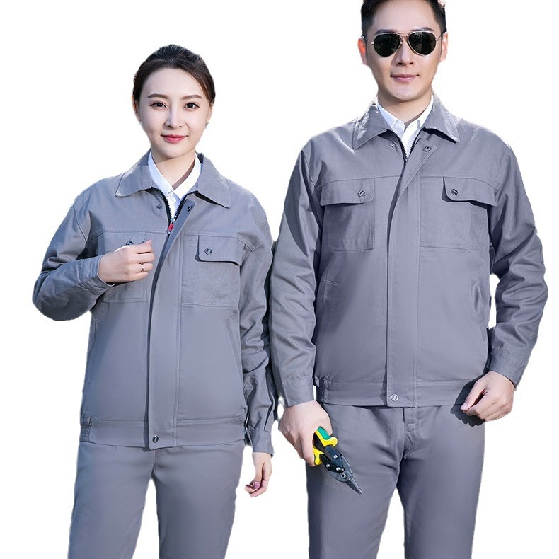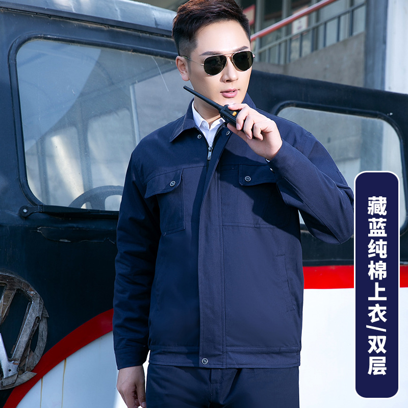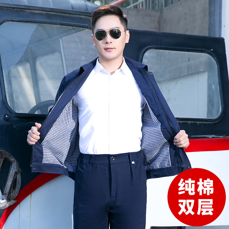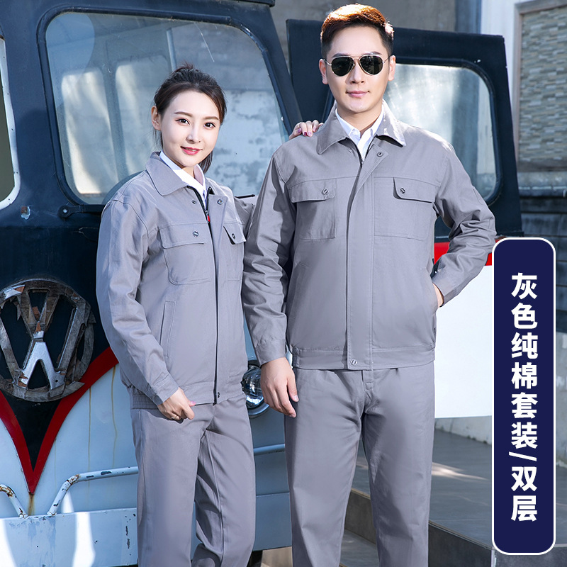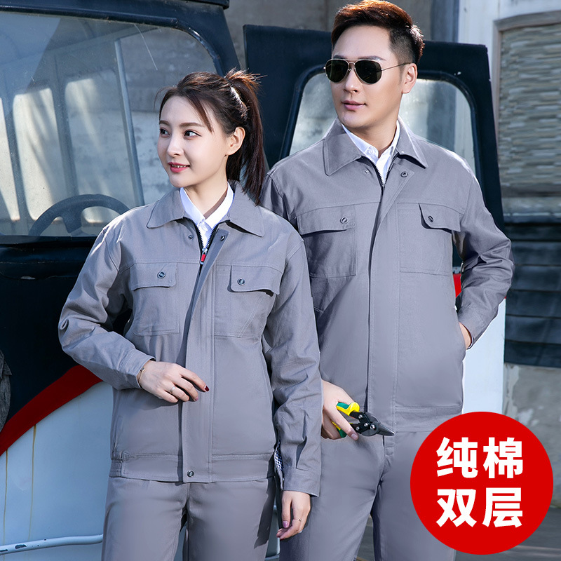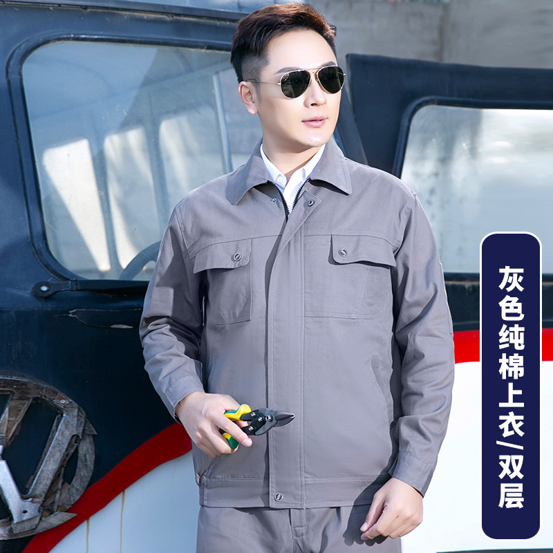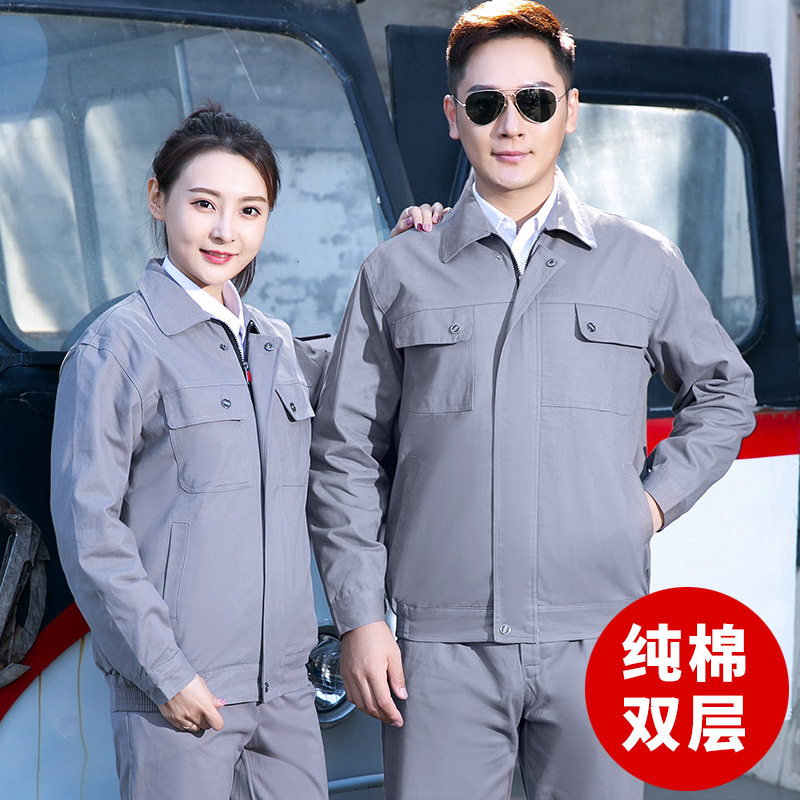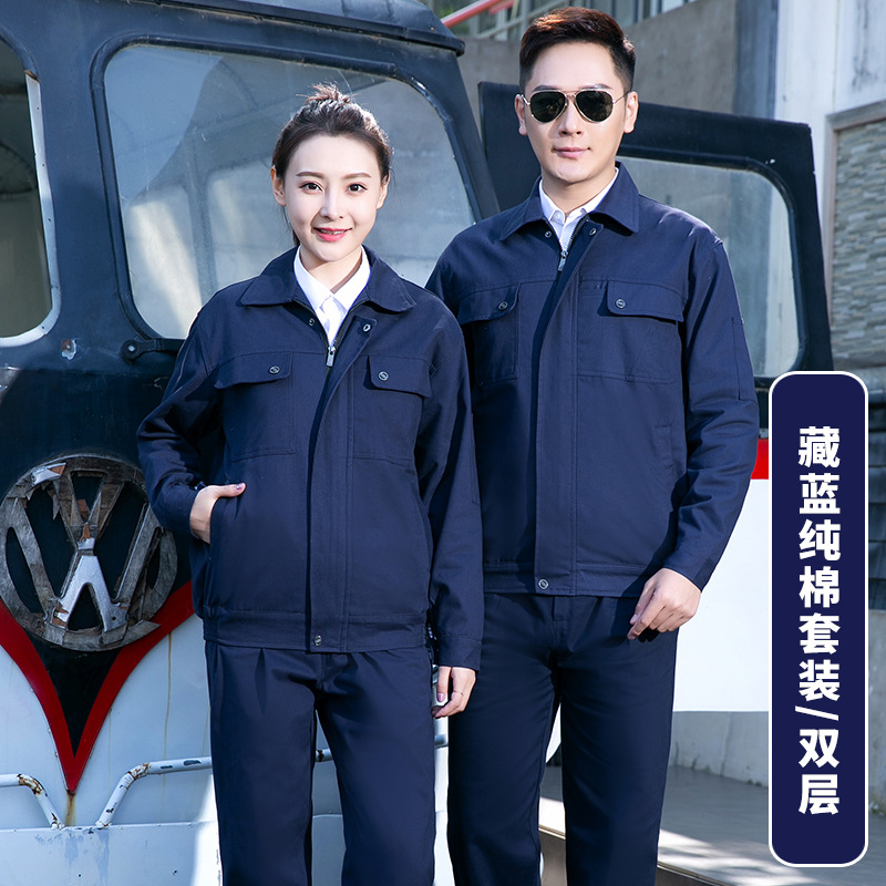 纯棉工作服长袖套装加厚双层工厂车间电焊劳保服印绣耐磨工服
