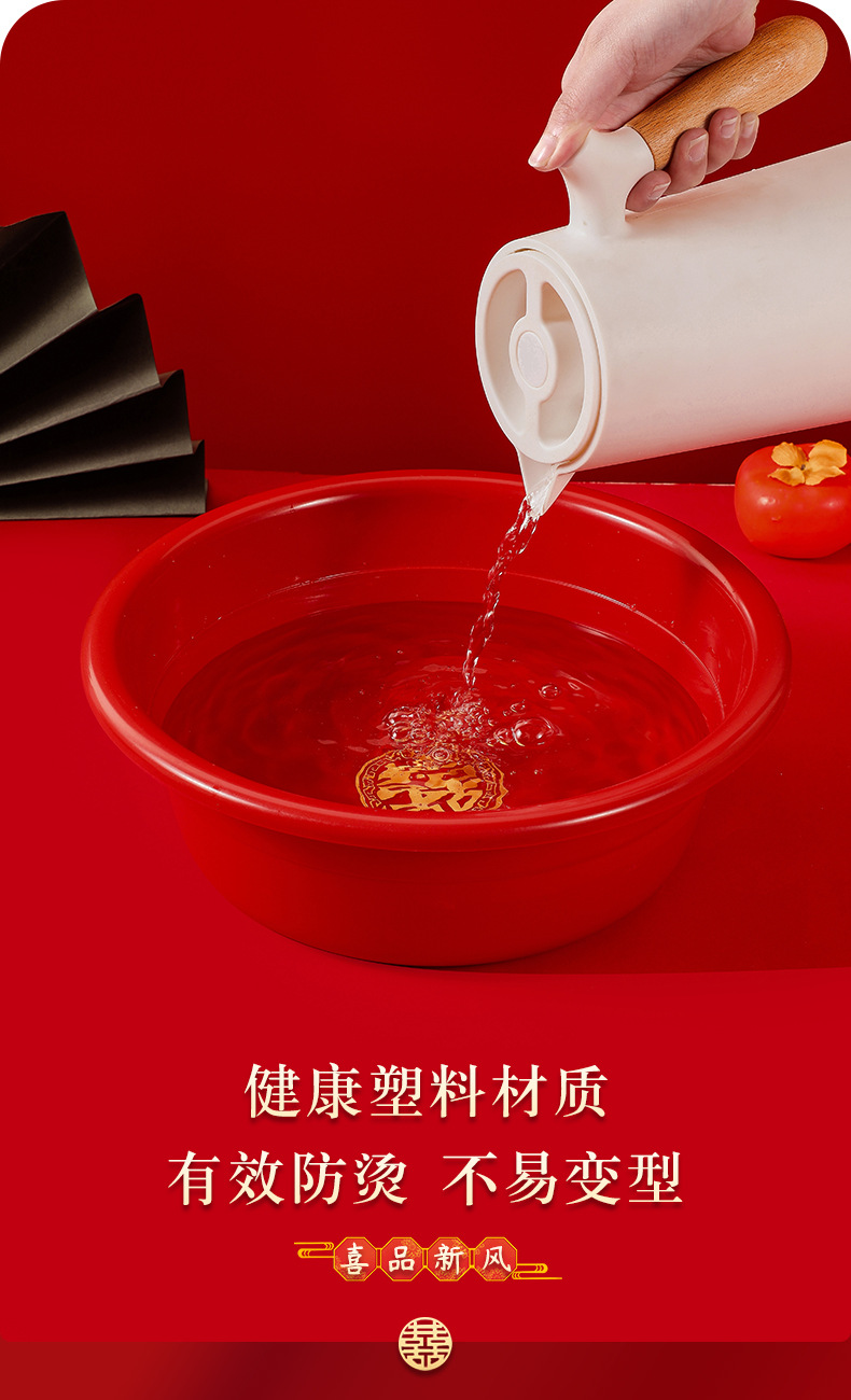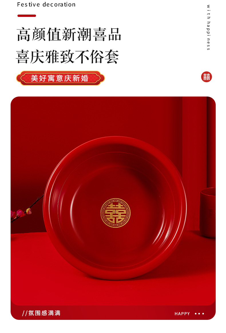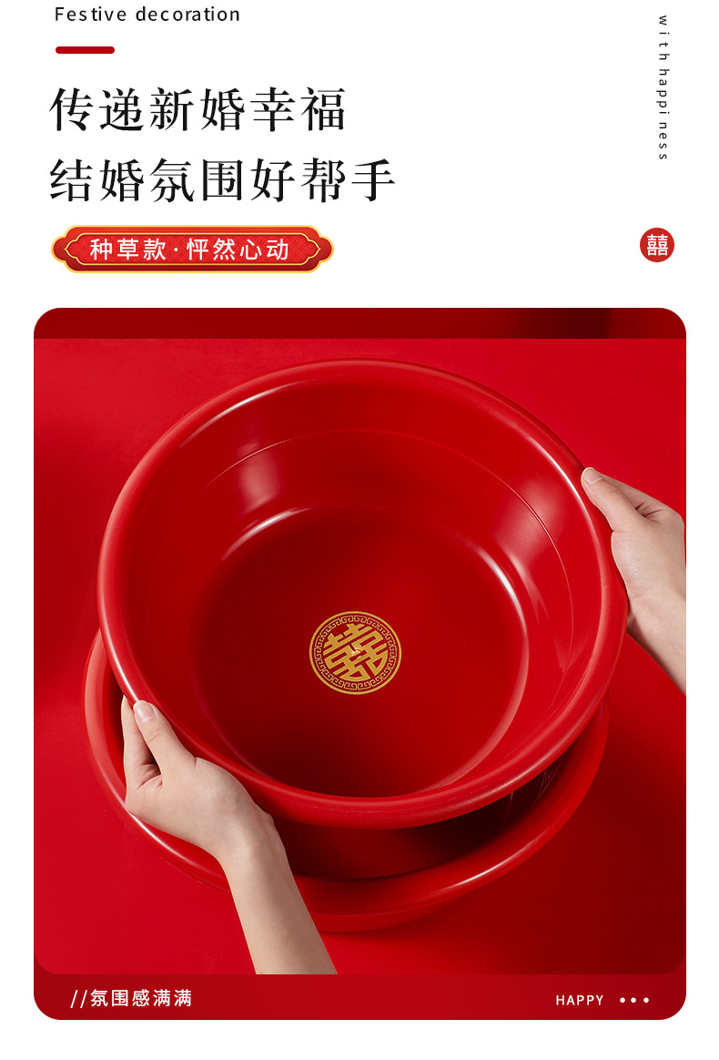喜盆陪嫁红色脸盆结婚用品大全出嫁婚礼婚庆新娘嫁妆塑料洗脸盆子