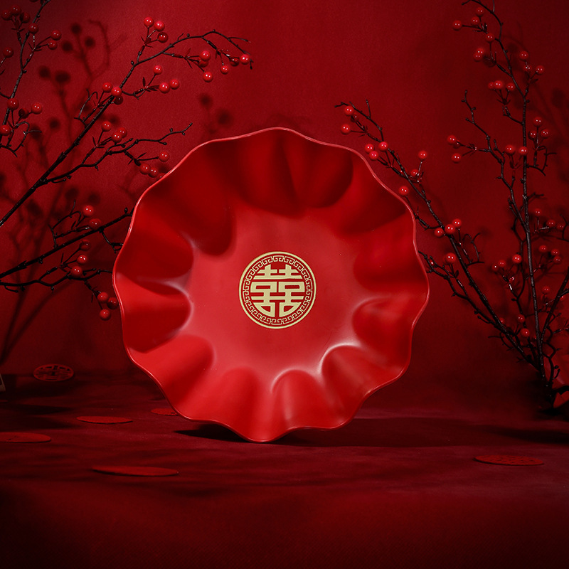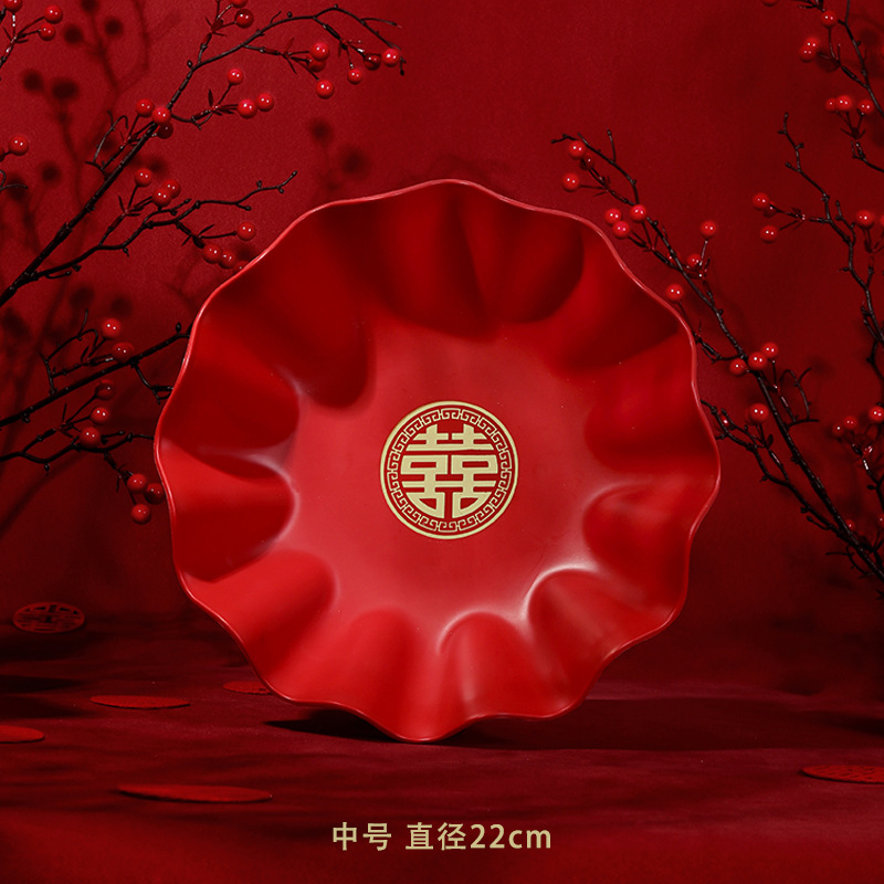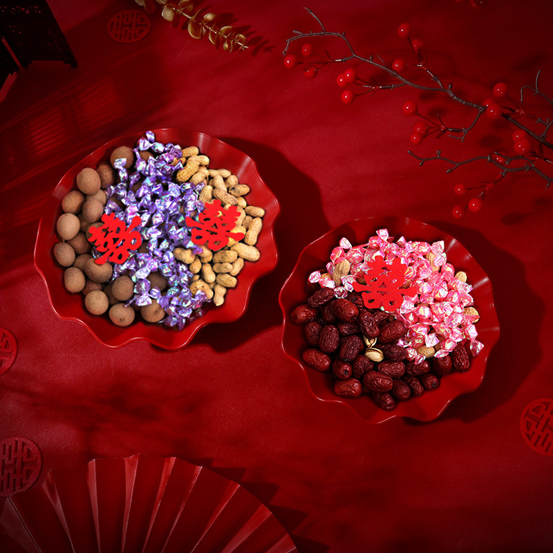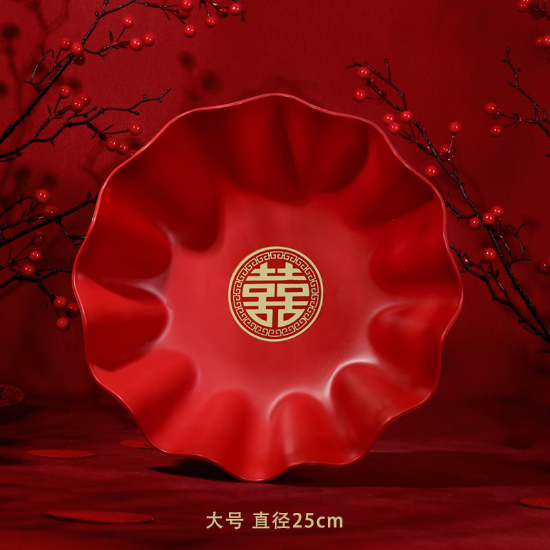 批发结婚用品客厅水果盘婚宴瓜子干果盘新婚塑料花边果盘大中小号