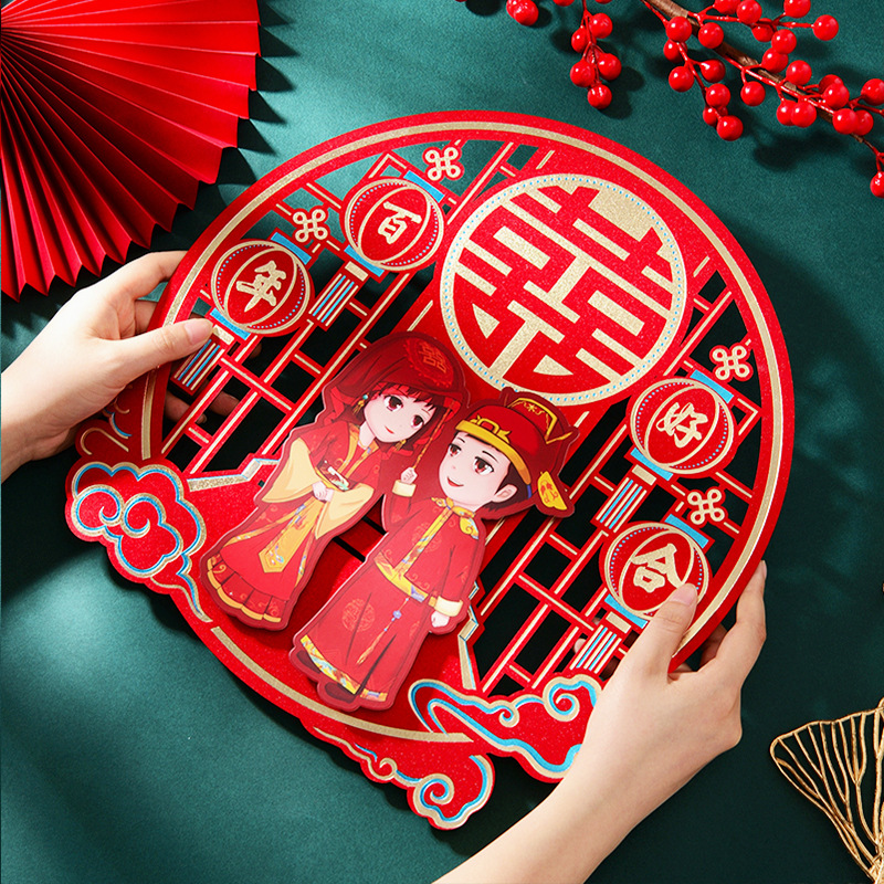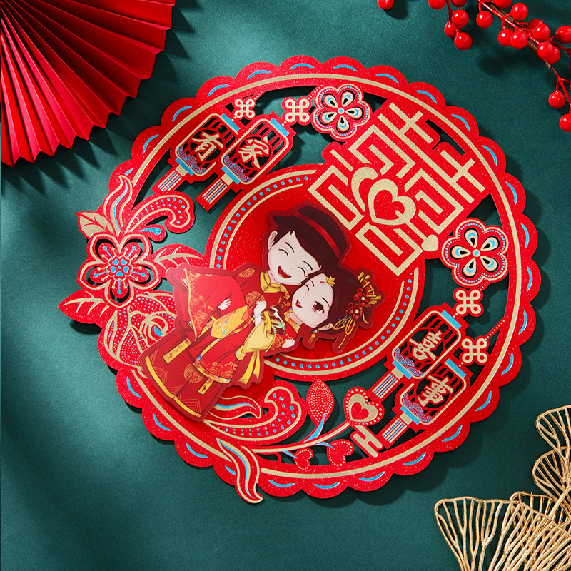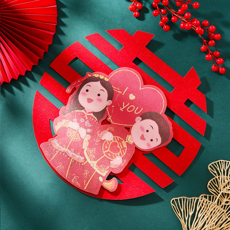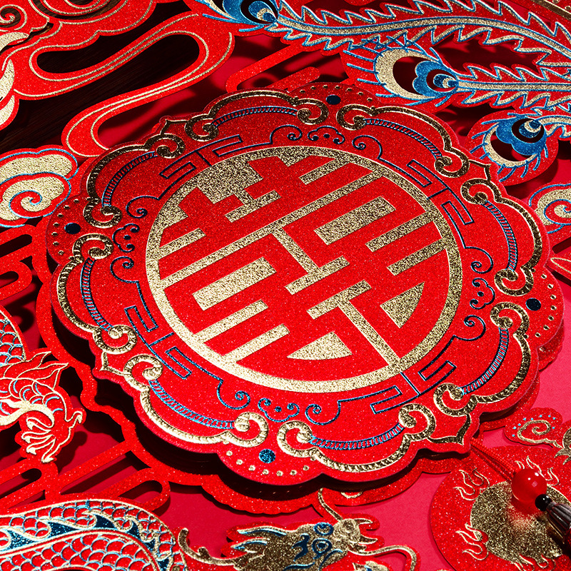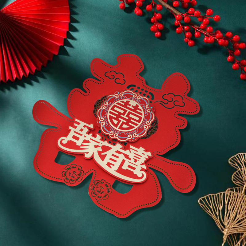 结婚用品烫金喜字贴窗户婚房布置大门剪纸婚庆卧室房间囍字大号