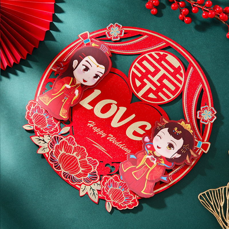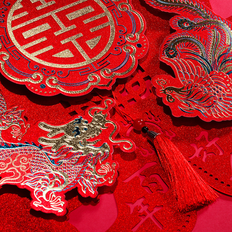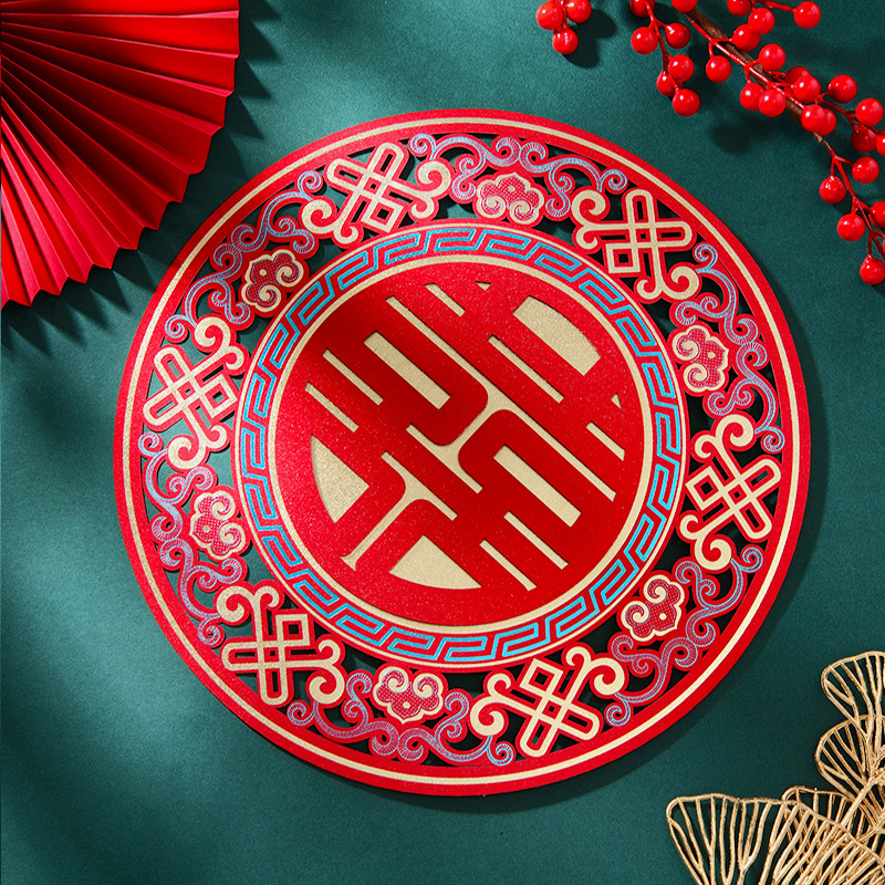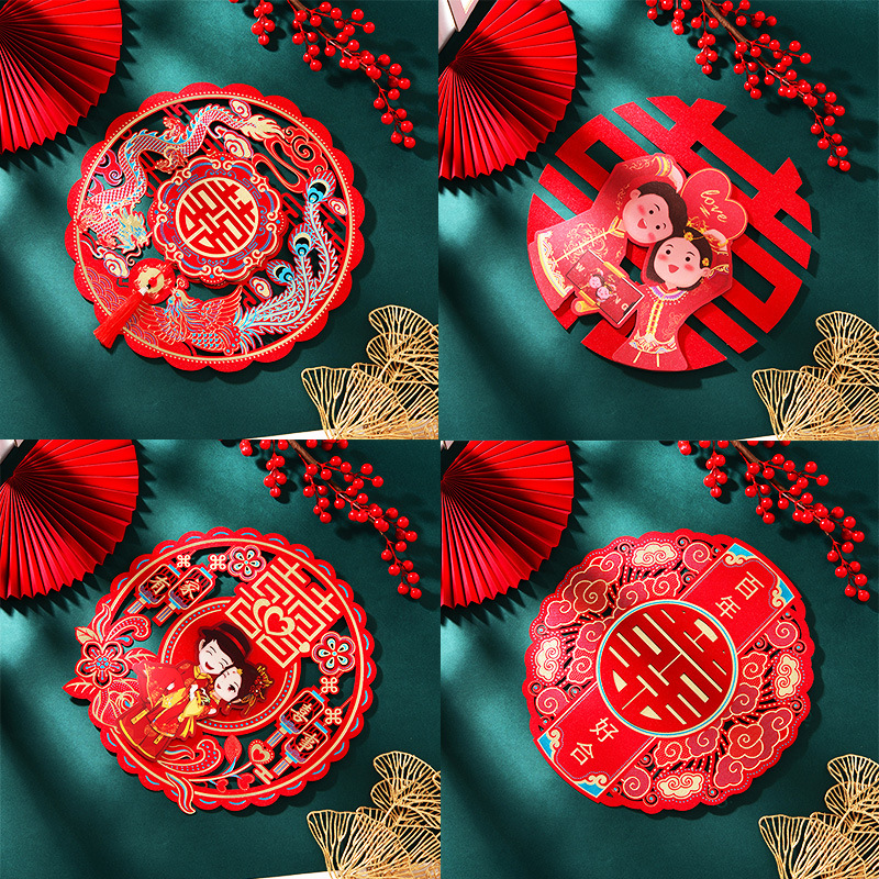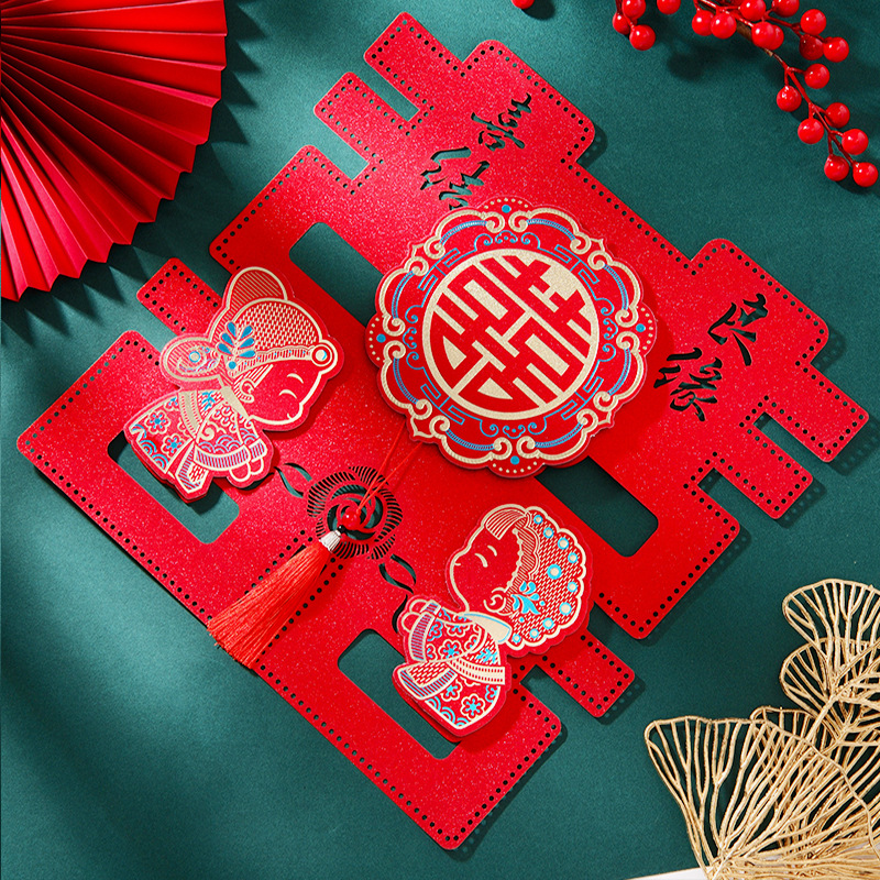 结婚用品烫金喜字贴窗户婚房布置大门剪纸婚庆卧室房间囍字大号