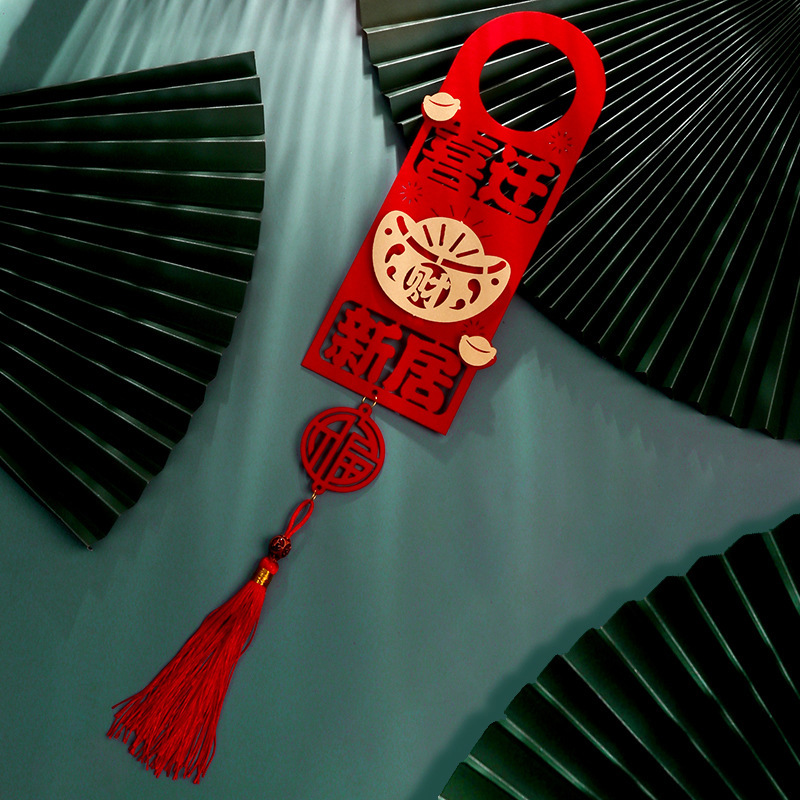 批发乔迁用品新款门把手挂件流苏乔迁新居布置立体植绒无纺布挂饰