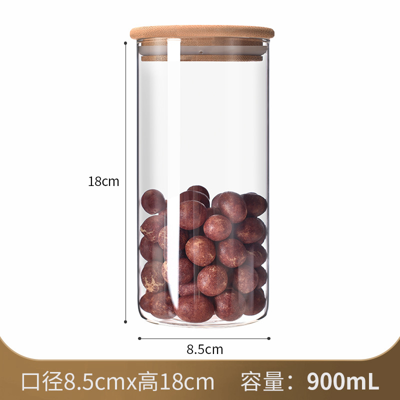 厂家直供高硼硅玻璃密封罐厨房密封储物罐茶叶罐木盖玻璃收纳罐
