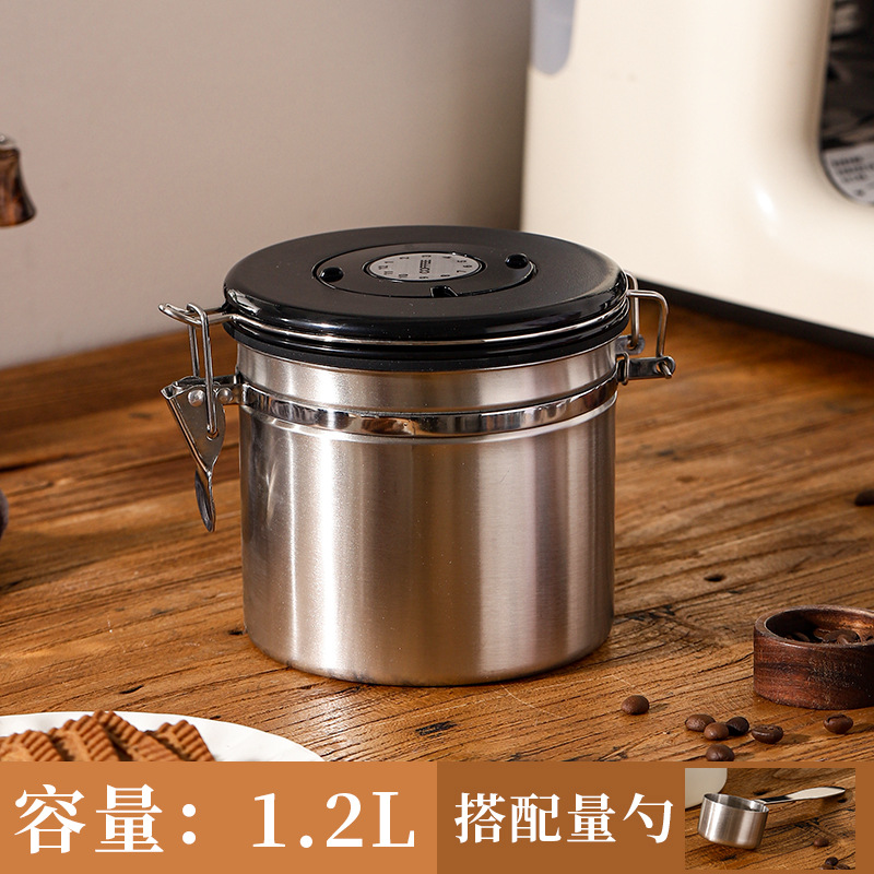 严选304不锈钢咖啡密封罐带单向排气阀茶叶奶粉干果奶茶店储存罐