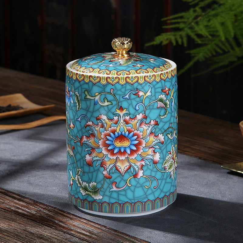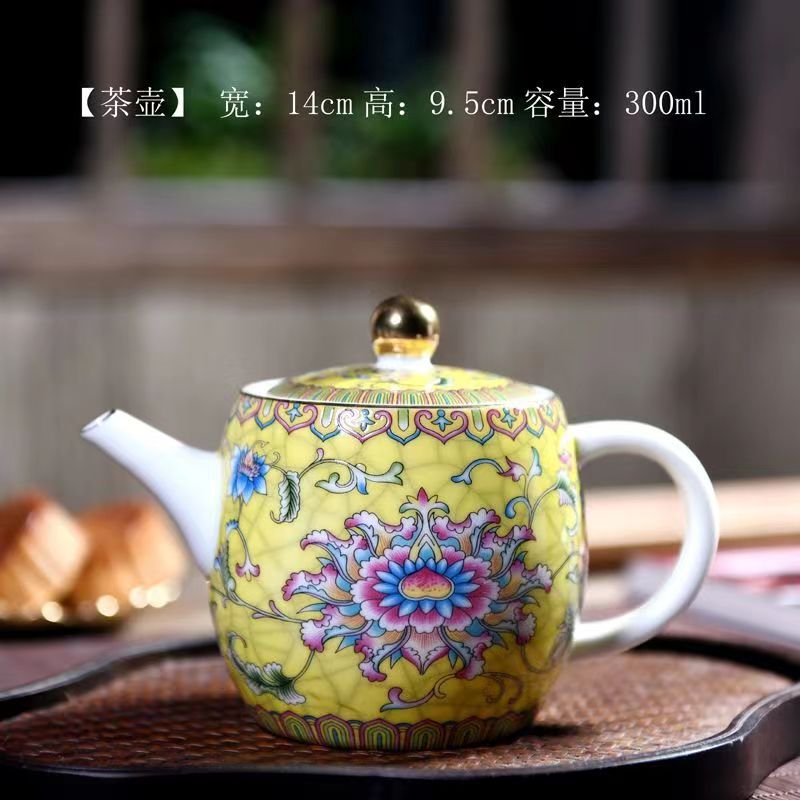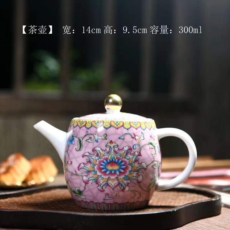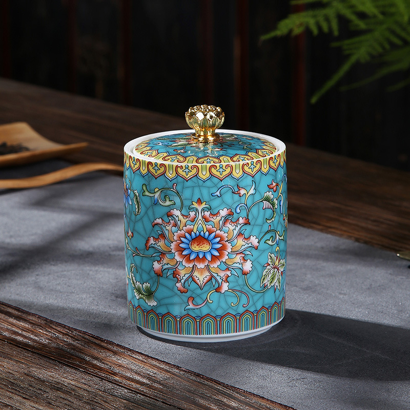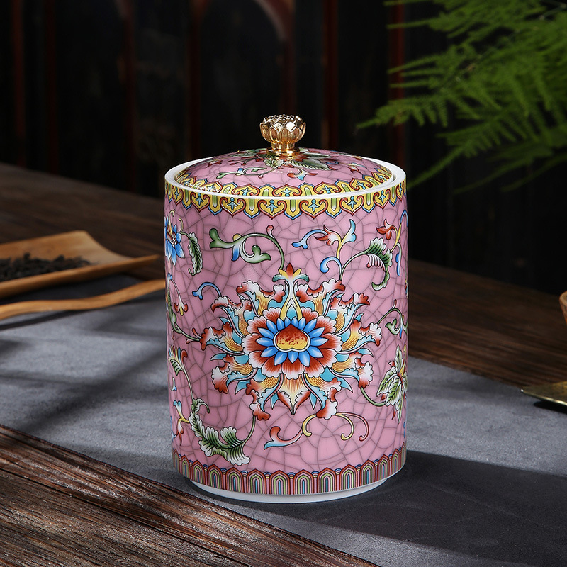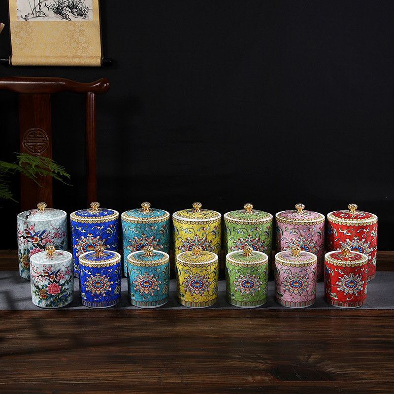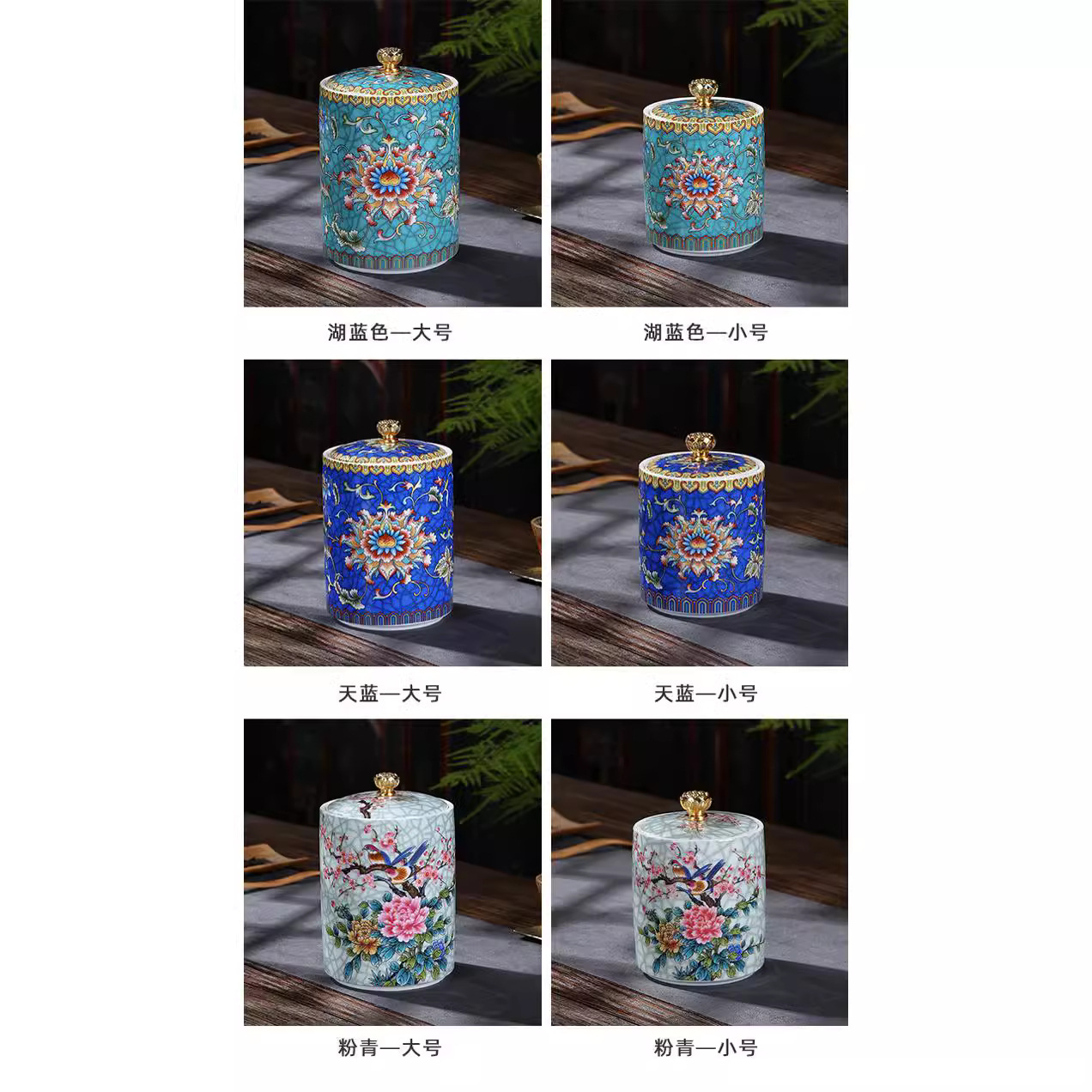 珐琅彩陶瓷茶叶罐密封罐家用大小号茶叶罐丶三才盖碗丶壶丶提梁壶