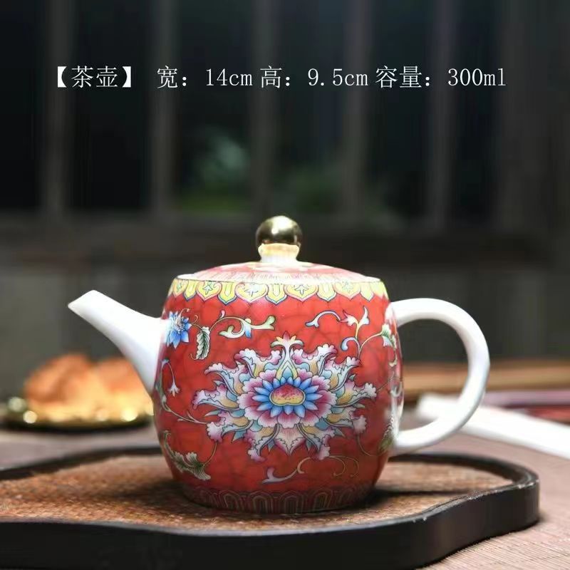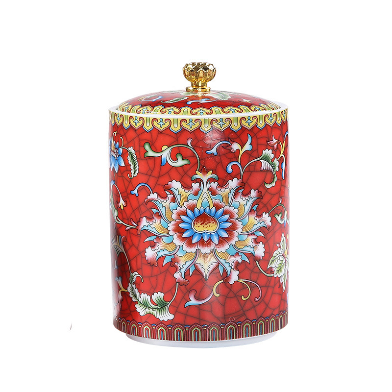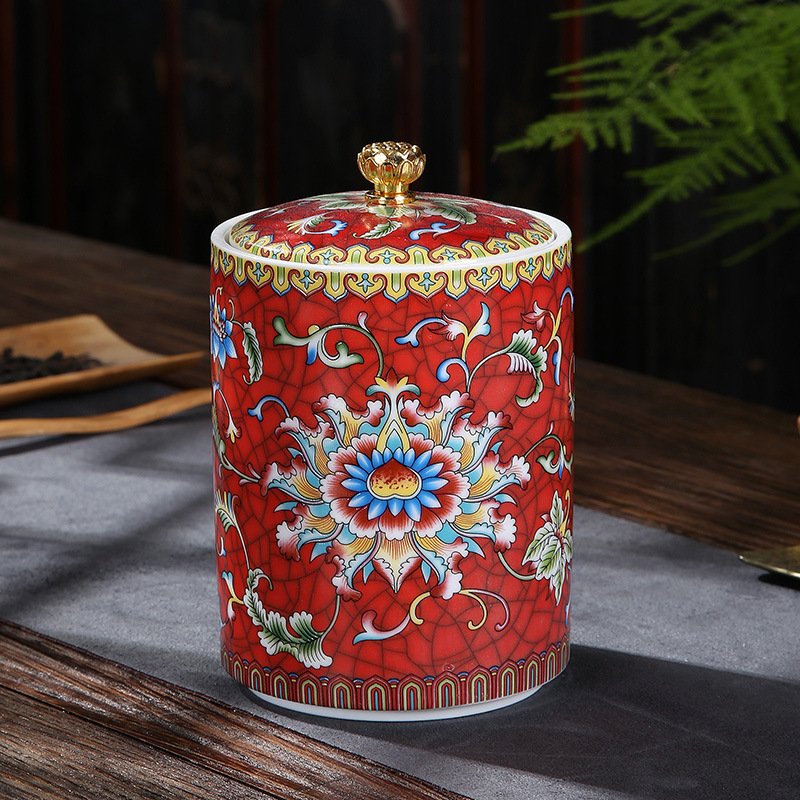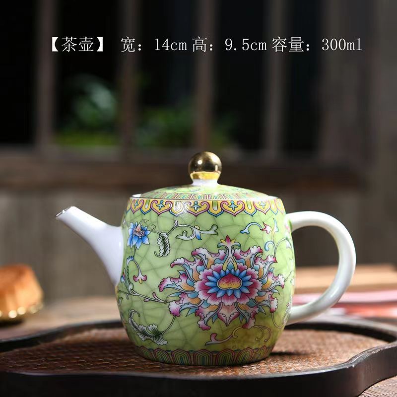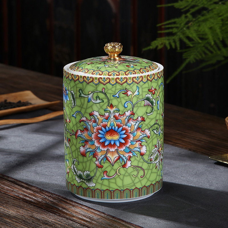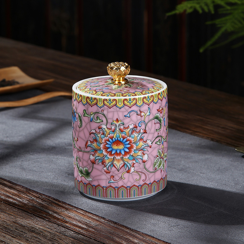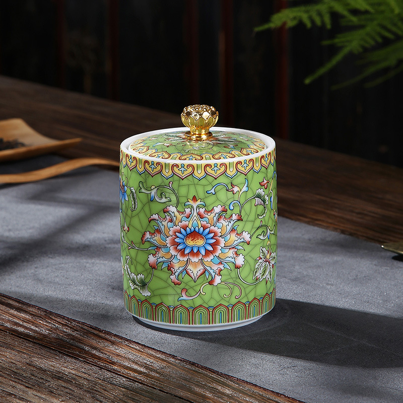 珐琅彩陶瓷茶叶罐密封罐家用大小号茶叶罐丶三才盖碗丶壶丶提梁壶