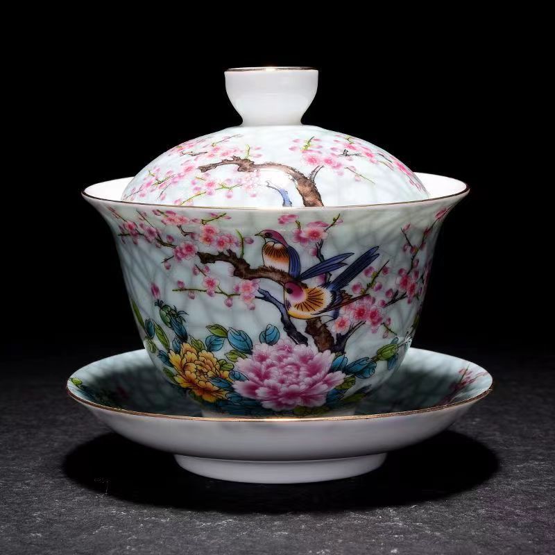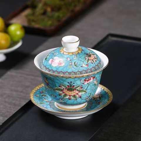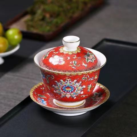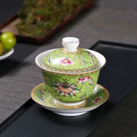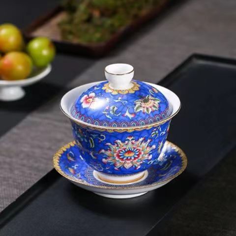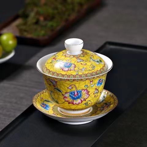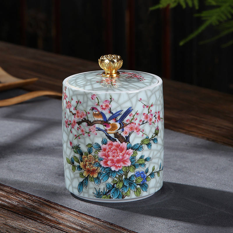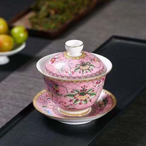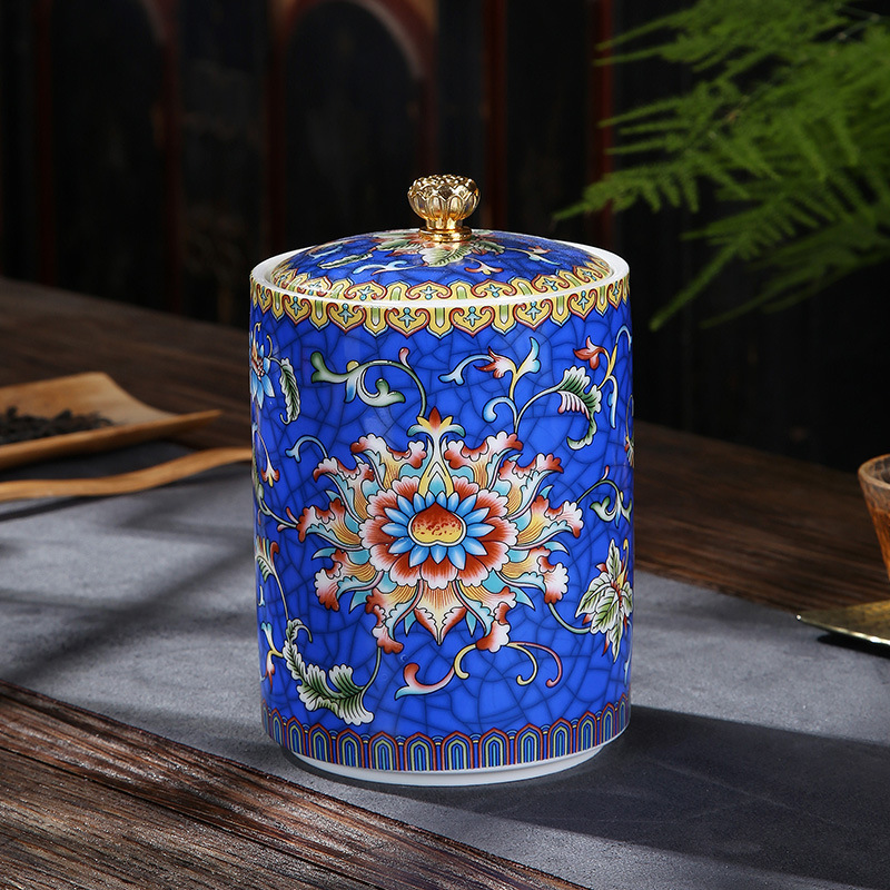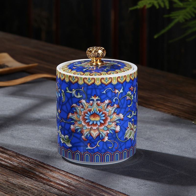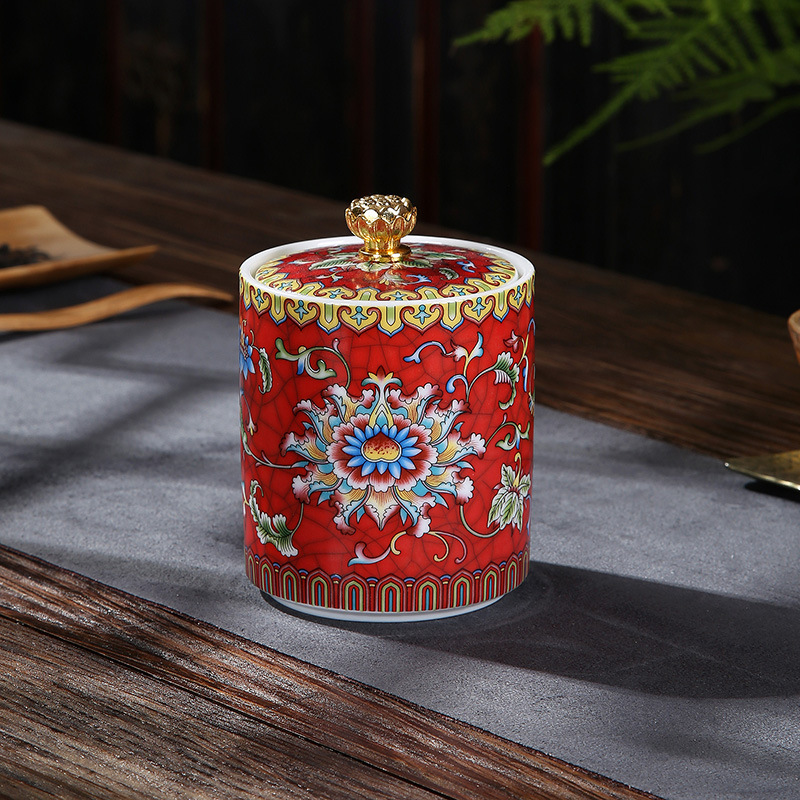 珐琅彩陶瓷茶叶罐密封罐家用大小号茶叶罐丶三才盖碗丶壶丶提梁壶