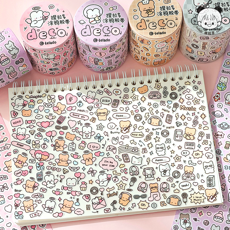 提拉多涂鸦手帐胶带彩色字母符号手账胶带批发可爱卡通创意装饰贴