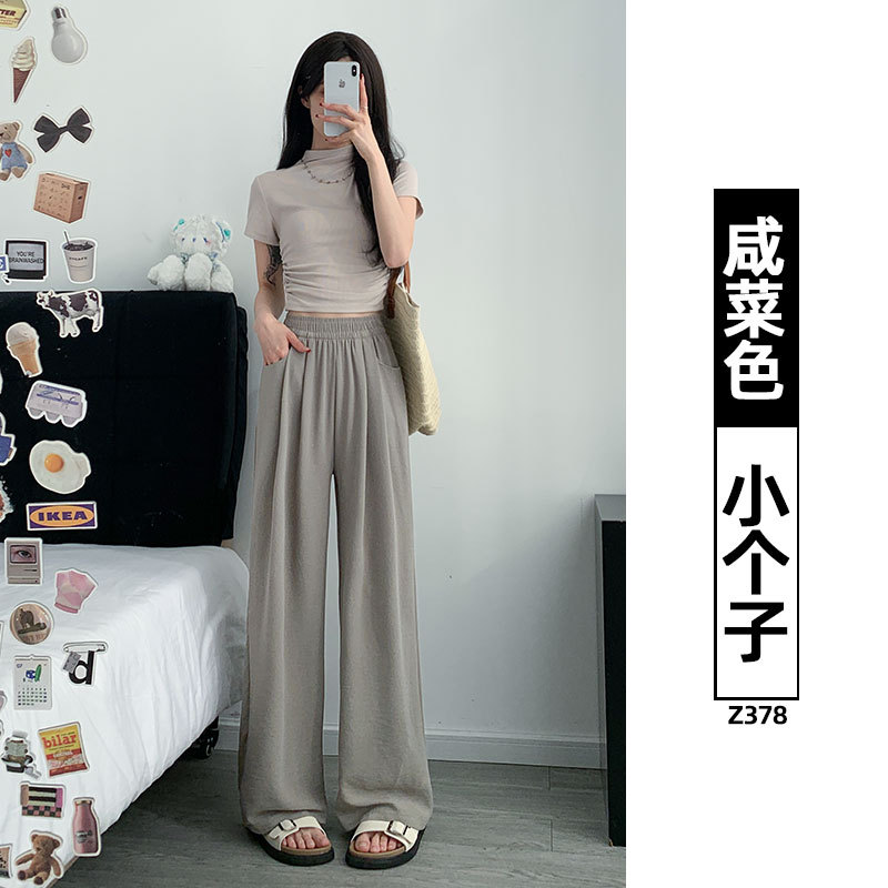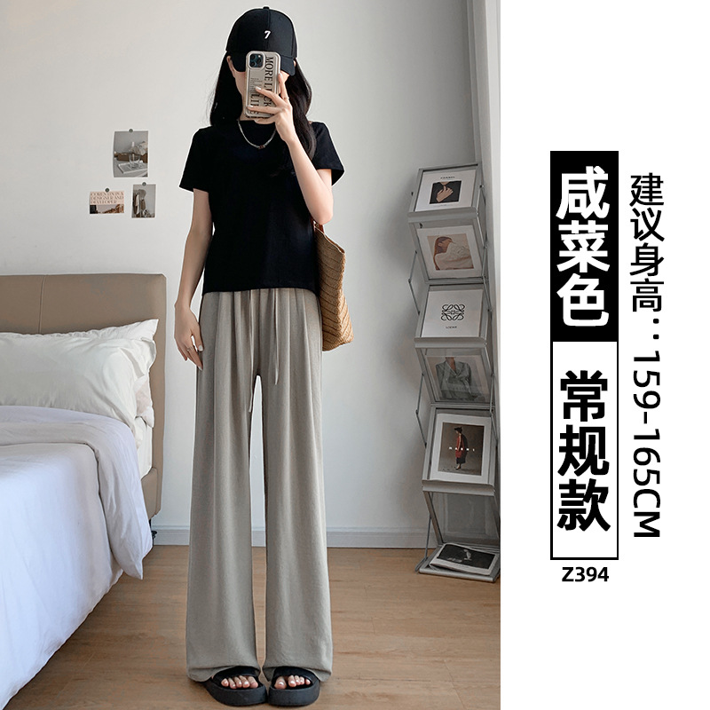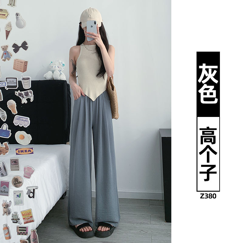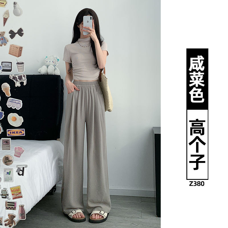 杏色山本裤冰丝阔腿裤女2024新款春夏季薄款直筒宽松小个子休闲裤