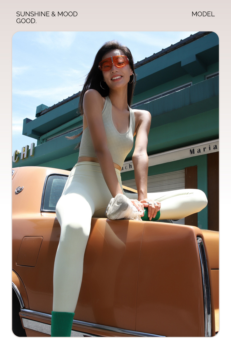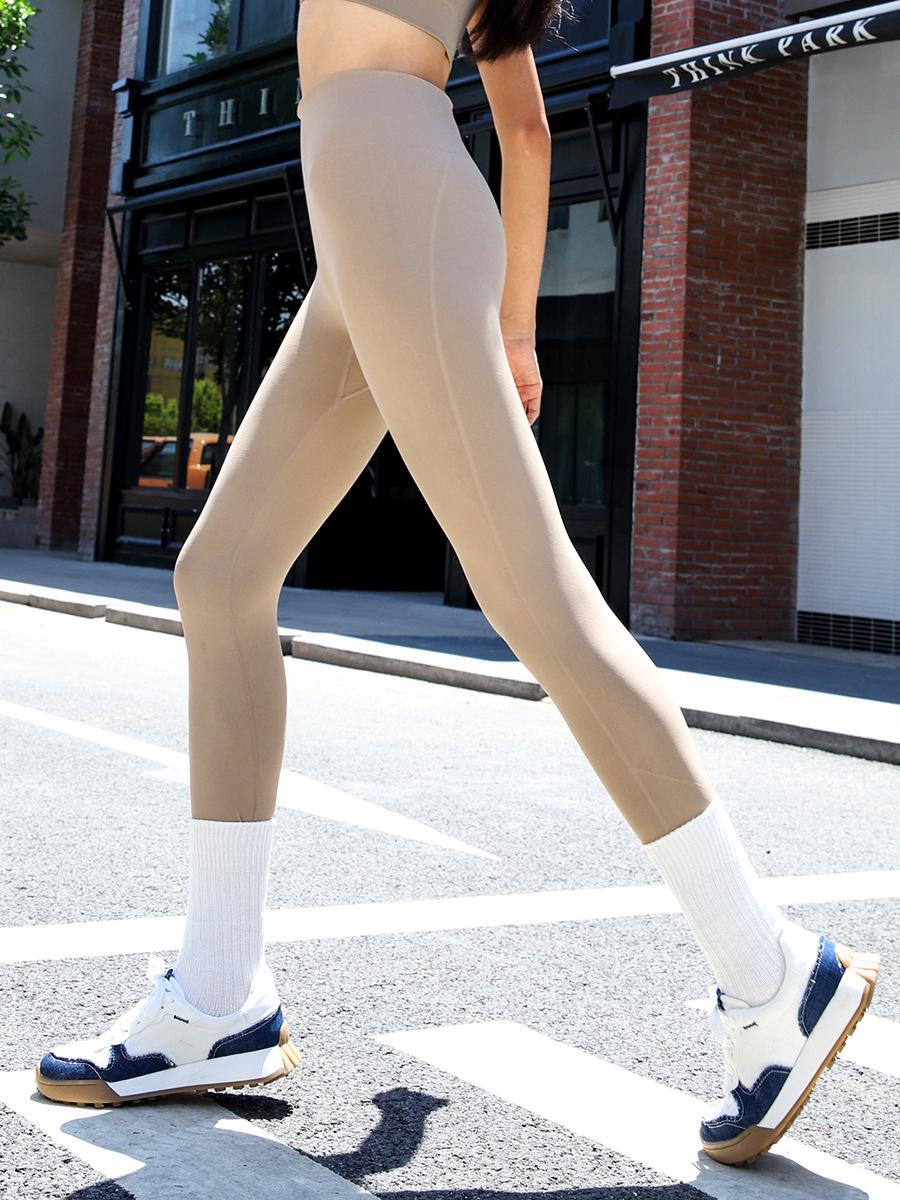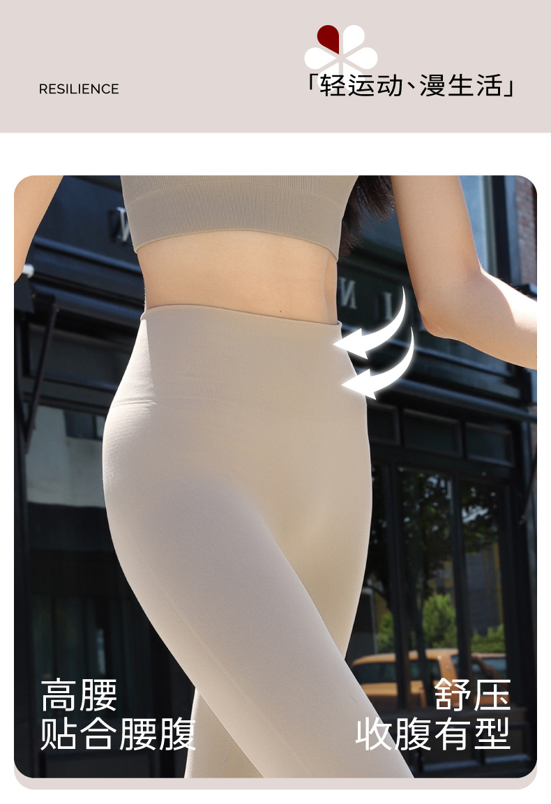 新品裸感高腰收腹瑜伽裤双面蜜桃提臀跑步运动紧身健身裤薄款跨境