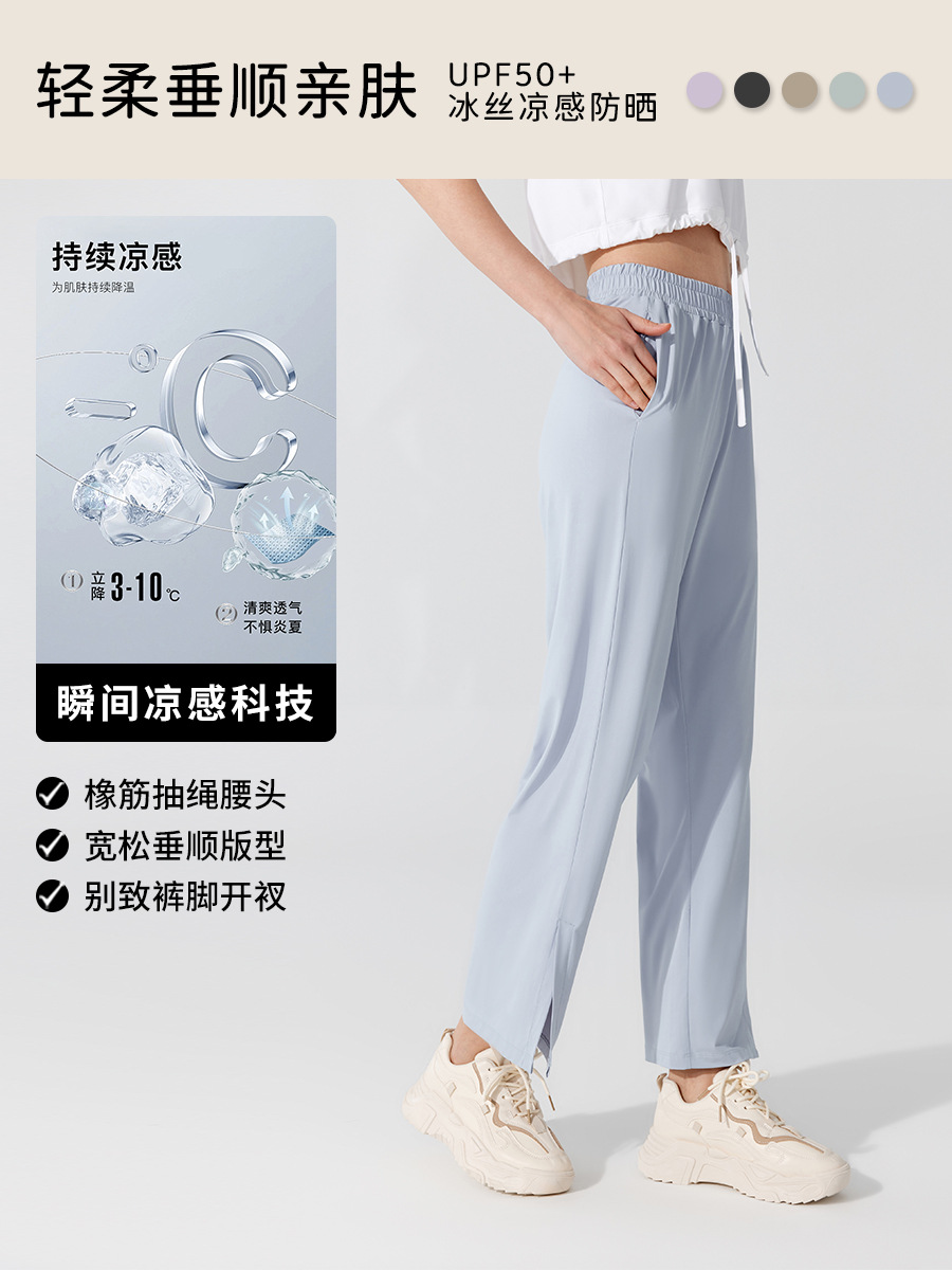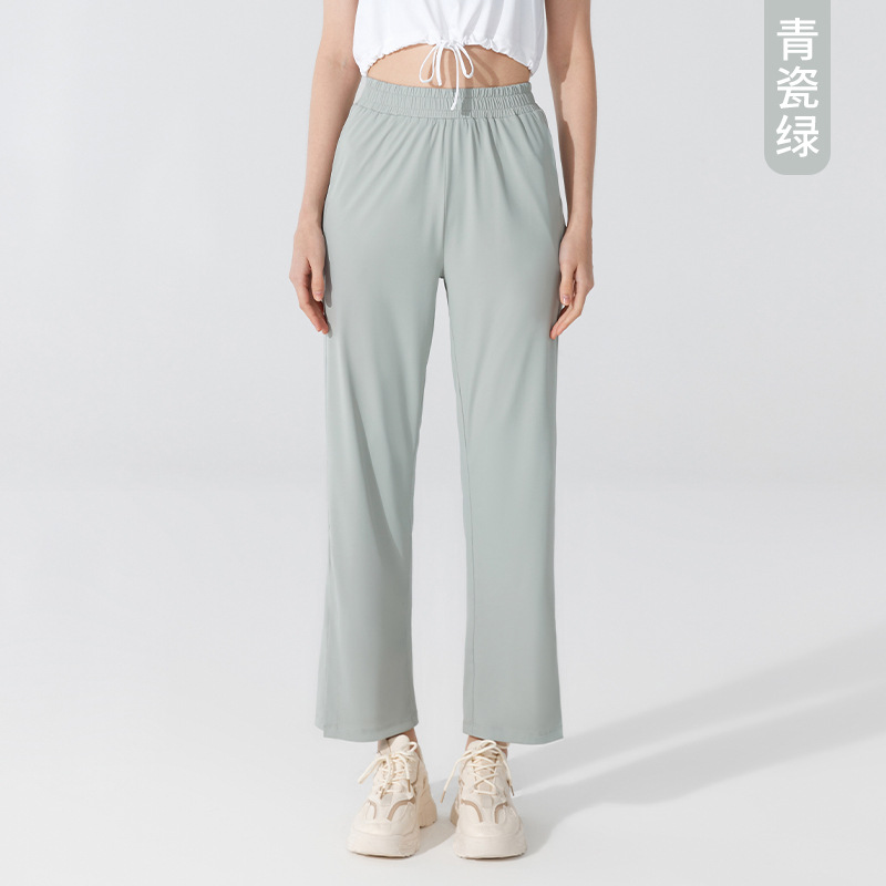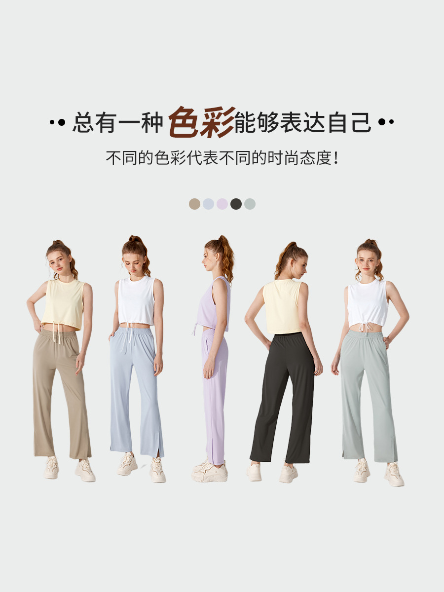 夏季原纱防晒凉感阔腿裤女宽松瑜伽裤运动休闲束腰高腰遮肉健身裤