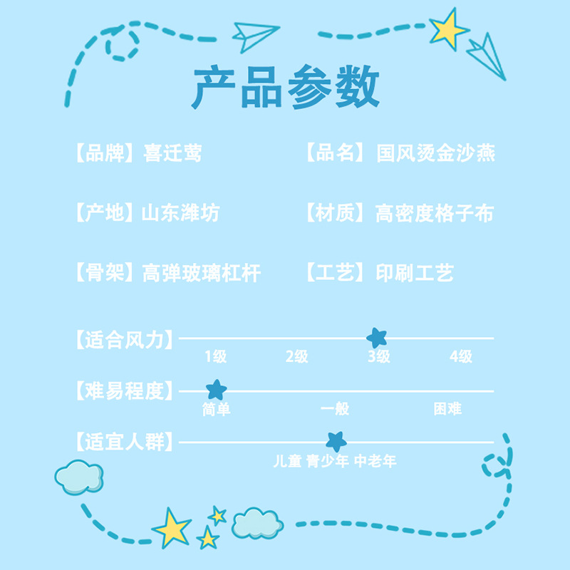 2024新款国风烫金沙燕风筝成人儿童初学者适宜户外微风易飞风筝